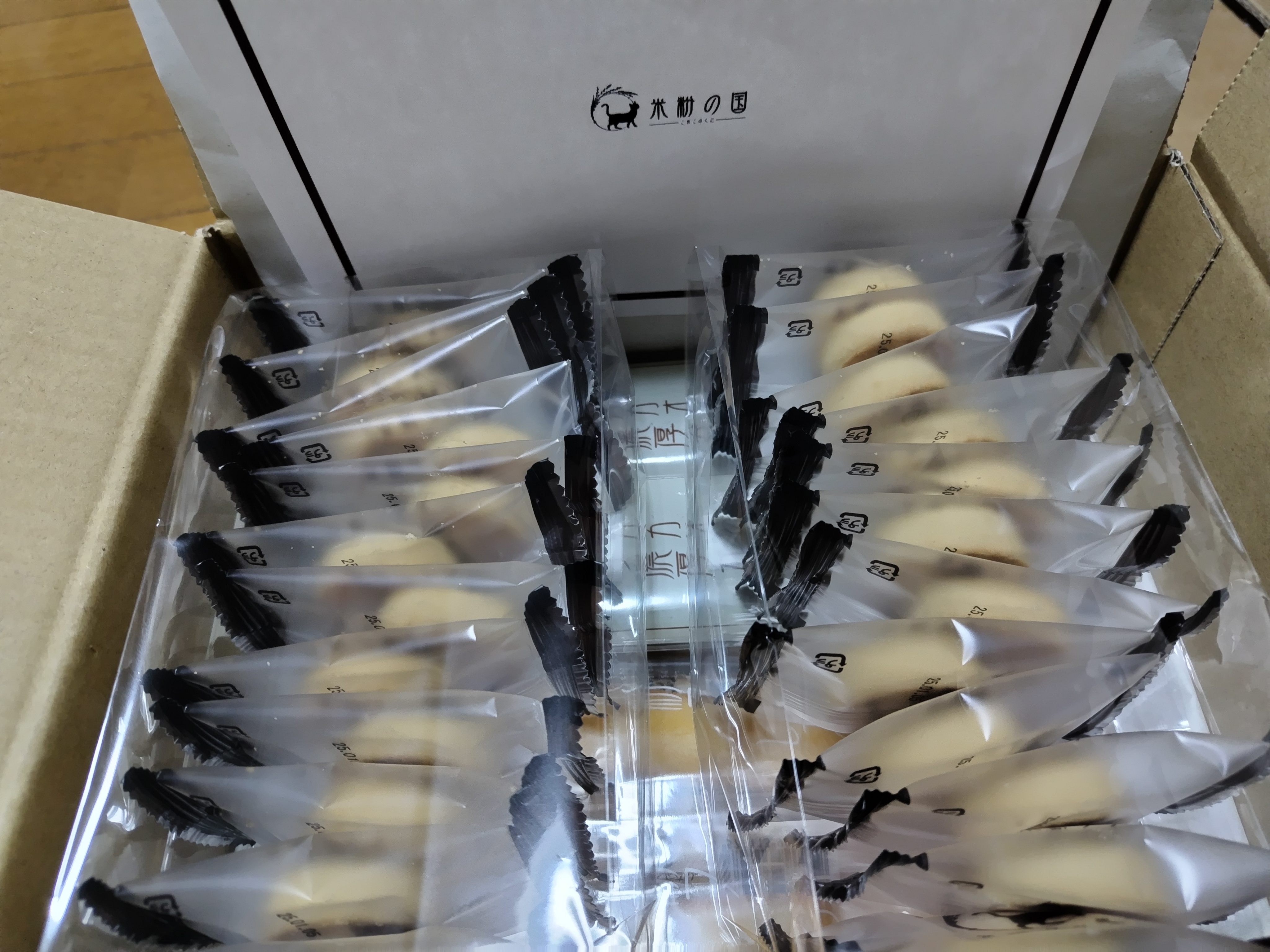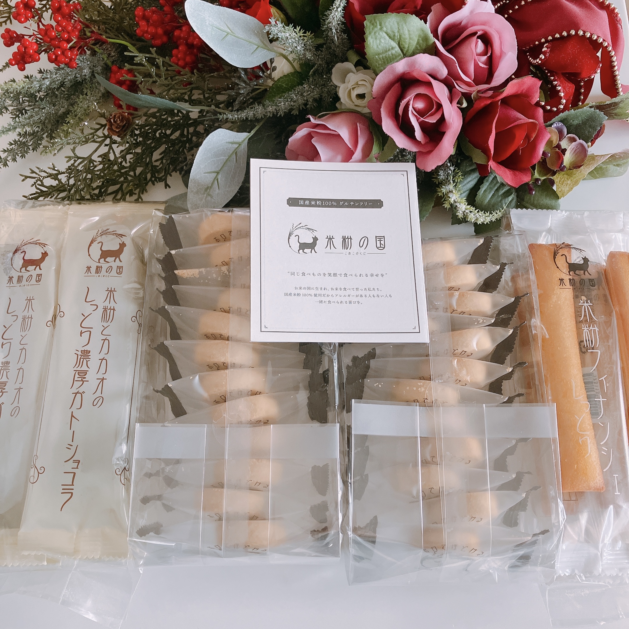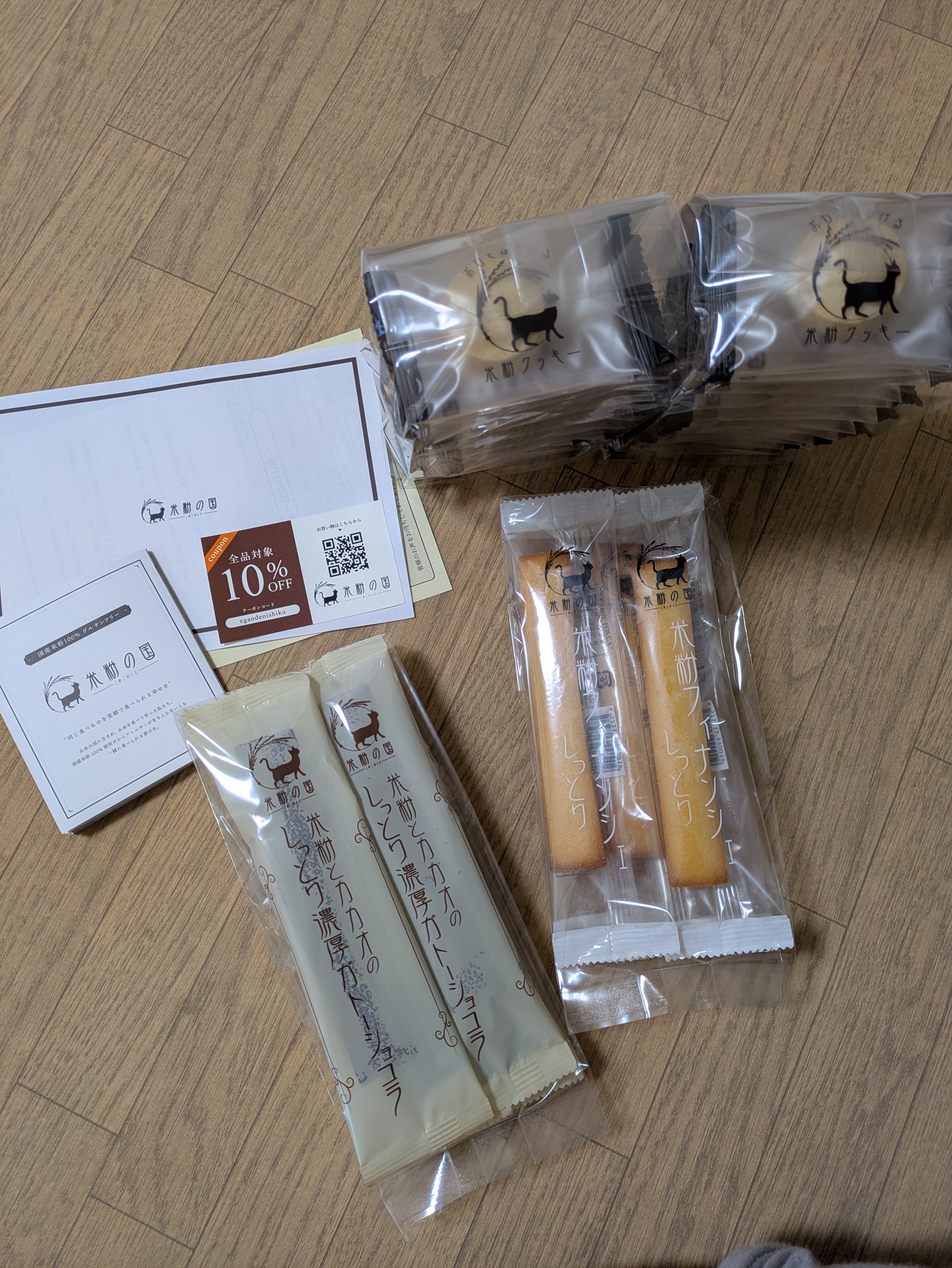 商品自体だけでなく、包装も丁寧な印象を受けました。届いた外箱がそのまま商品梱包になっており、過剰包装でない点もエコで素敵だと思います。また、説明書やパッケージのシンプルな見た目が米粉スイーツの純粋さを感じました。