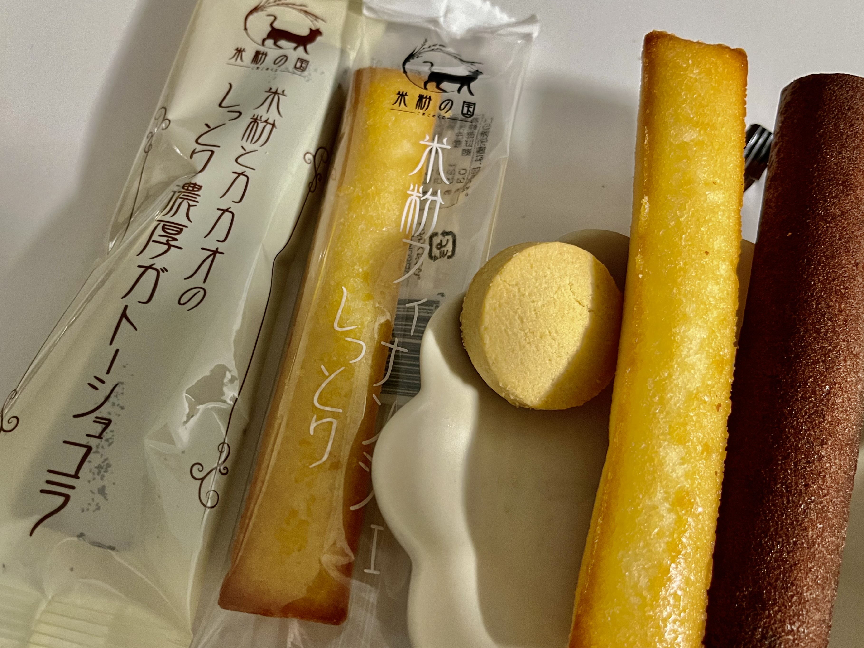 米粉フィナンシェ(しっとり):その名の通りまさにしっとりという食感で、比較的味も濃く感じました。アーモンドの風味も感じられてとても美味しかったです。スティックタイプで食べやすいのも魅力的です。