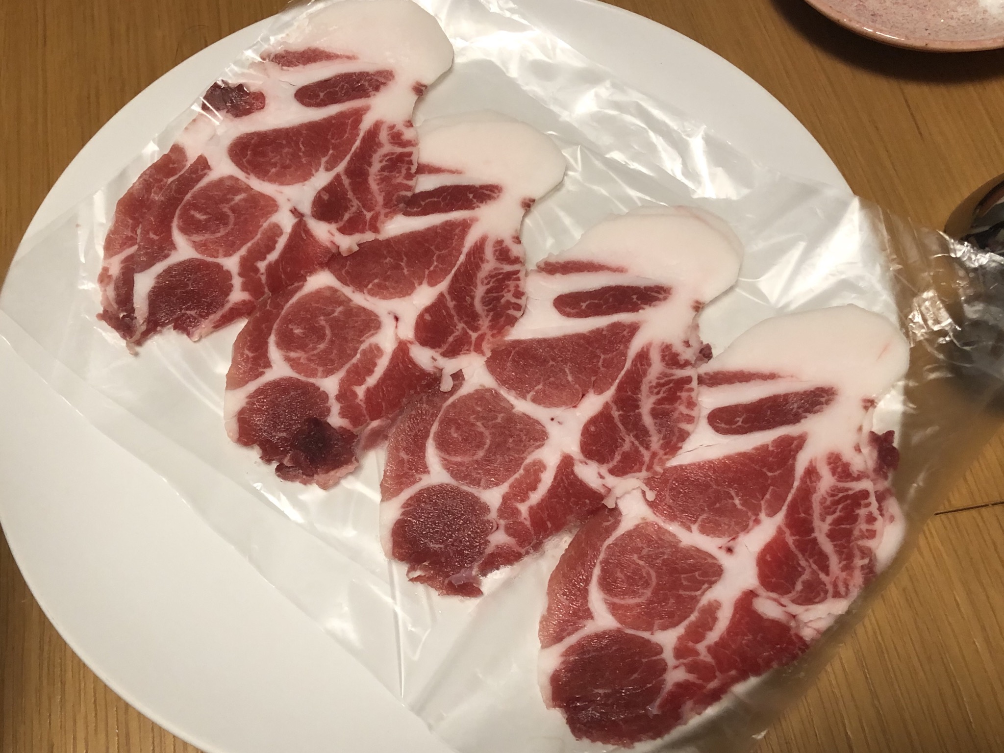 「美味しい豚肉はこんな風に甘くなるのか」と感動しました。冷やすことによってある程度の硬さは出ますが、薄切りであることに加え、赤身と脂身のバランスがとても良いため、歯切れの悪さは感じません。