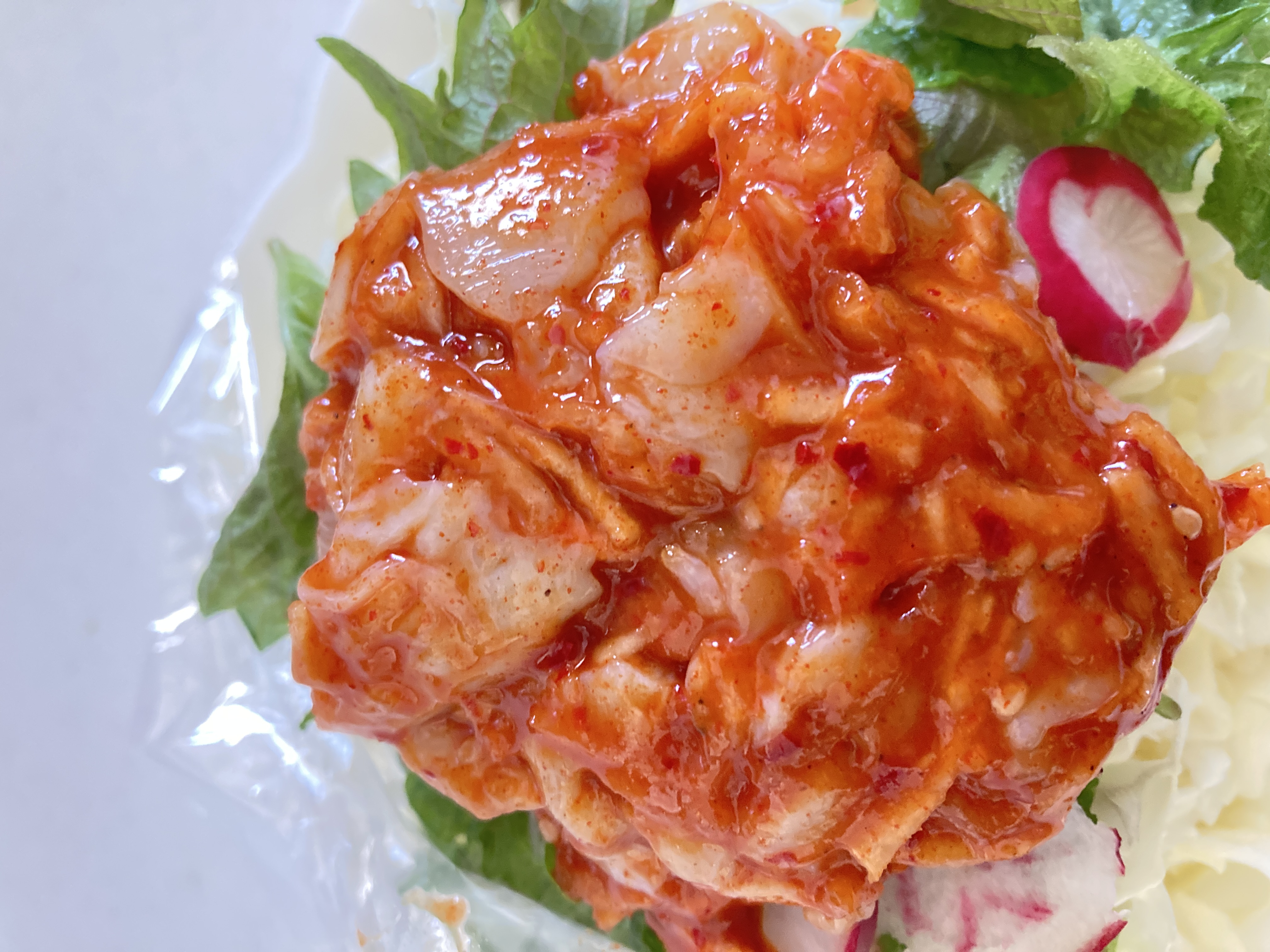 コチュジャンベースの甘辛さが、一番なじみのあるイメージするチャンジャ味でした。口に含んだ瞬間は甘みを強く感じますが、噛んでいるうちに辛みが出てきてタラの旨味を存分に味わうことができました。