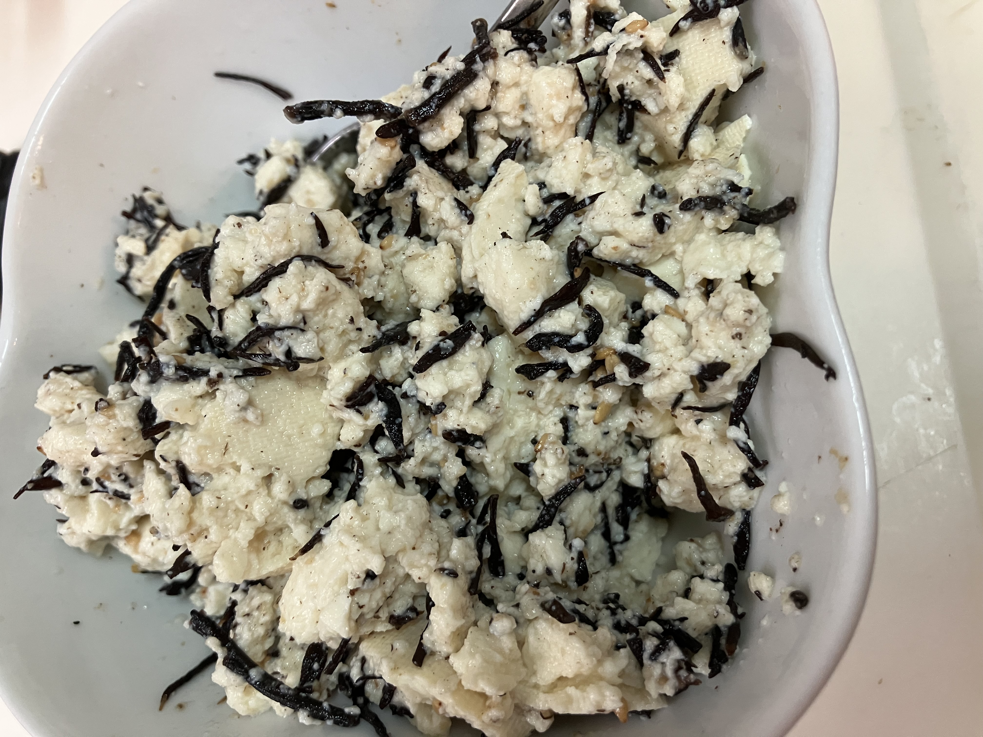 まずはシンプルにひじきの素と豆腐だけで今回は作りましたが、茹でたほうれん草や人参、蒟蒻等を加えると栄養バランスもとれ、より美味しくなると思います。日持ちもして、味の調整もしやすいので、ストックしておくととても便利な商品だと思います。