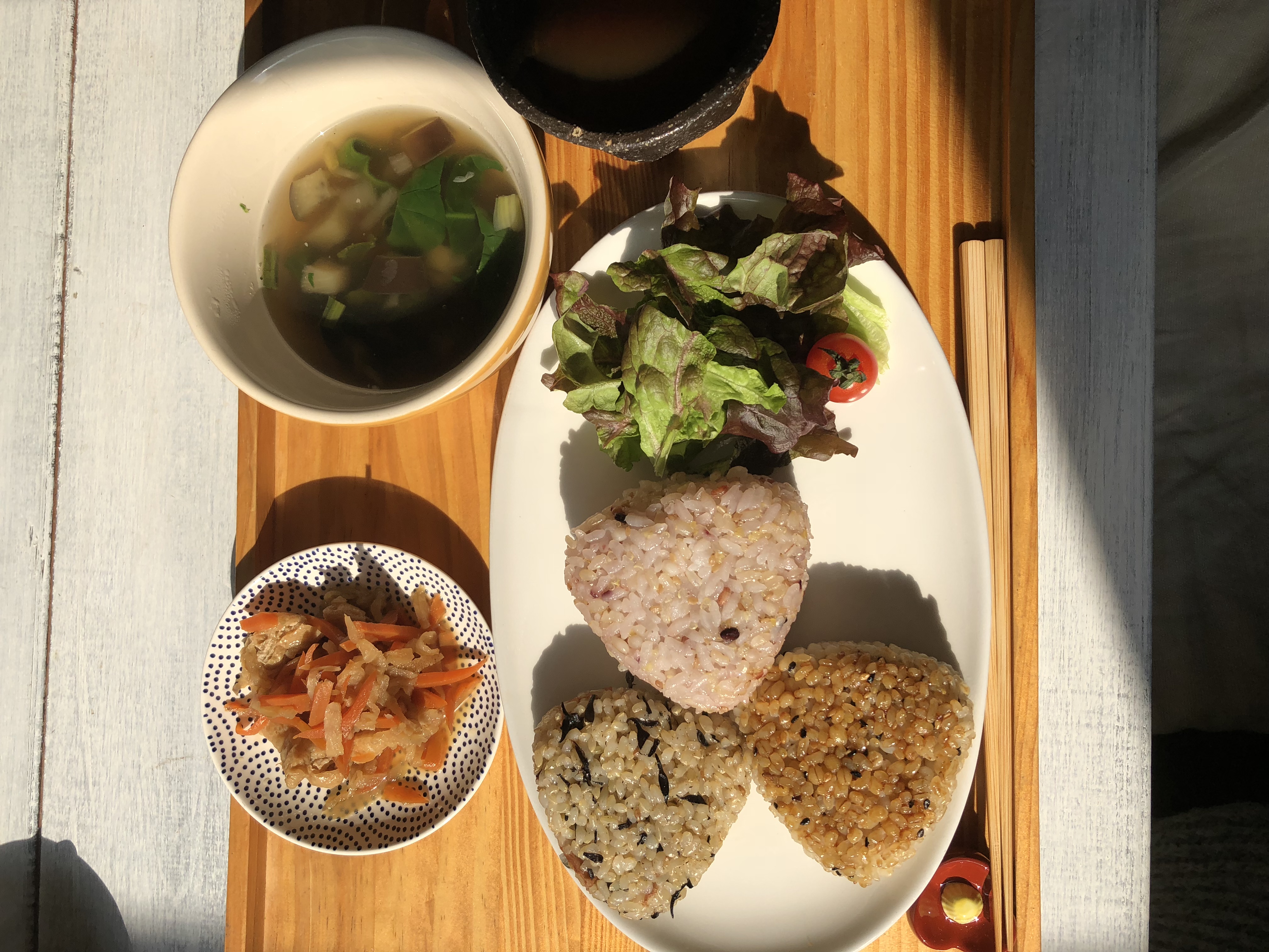 白米のおにぎりは冷たくなるとごはん粒がポロポロになりますが、このおにぎりはモチモチです。