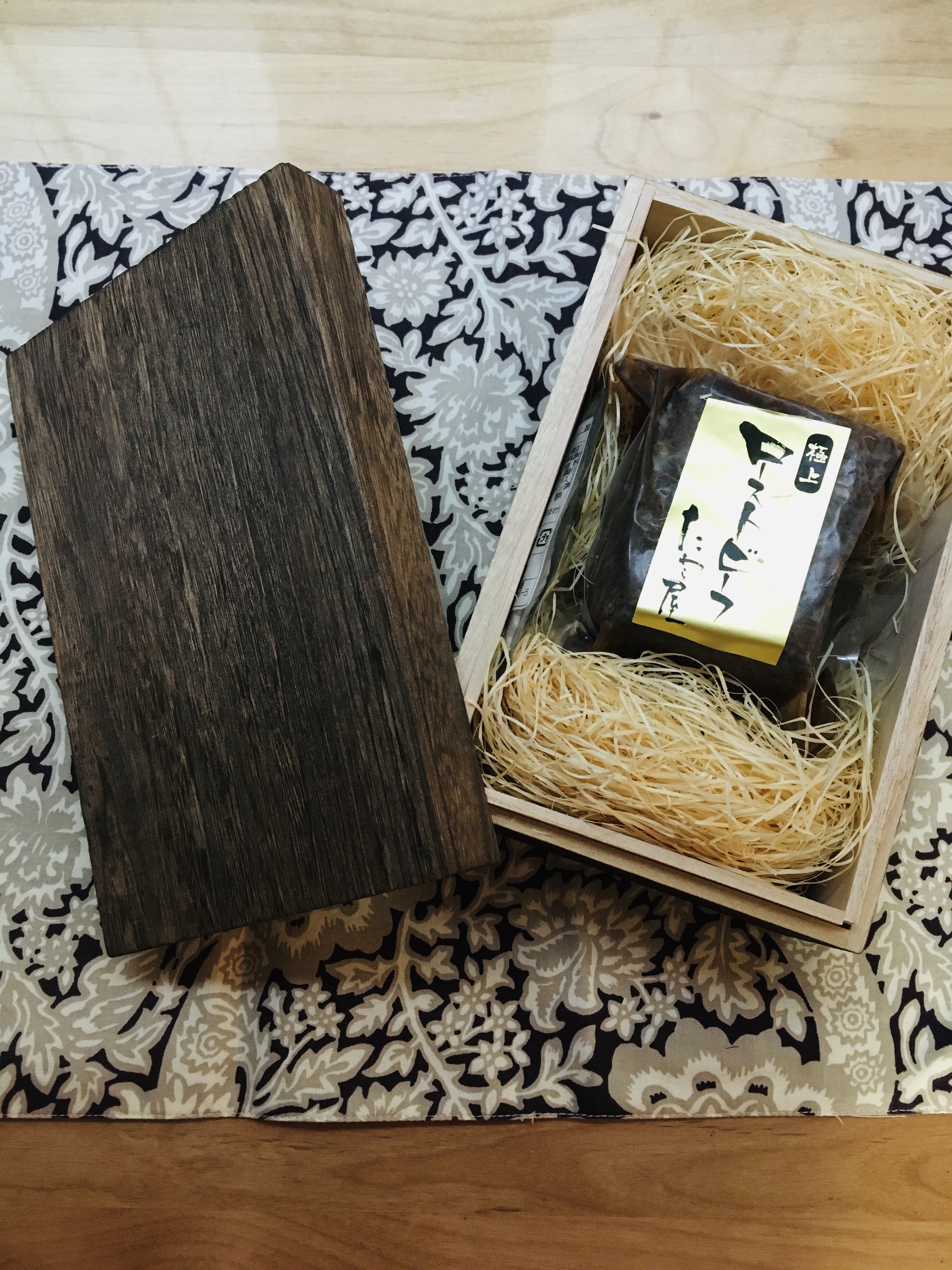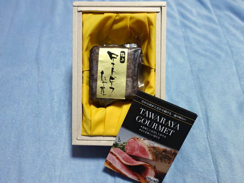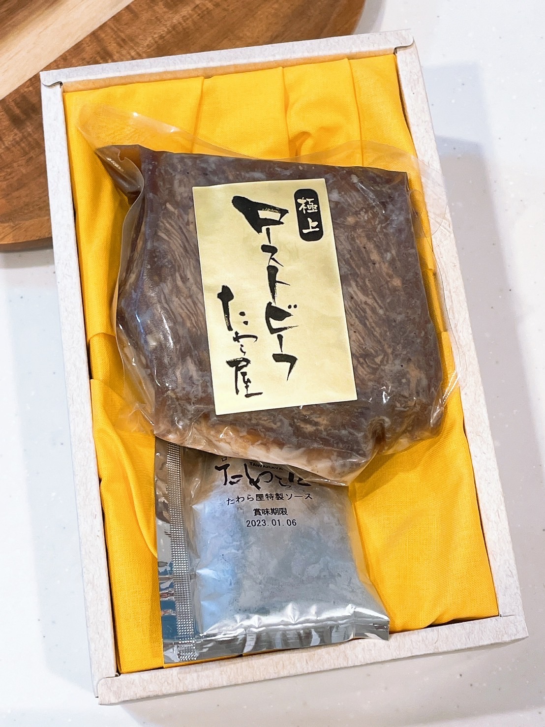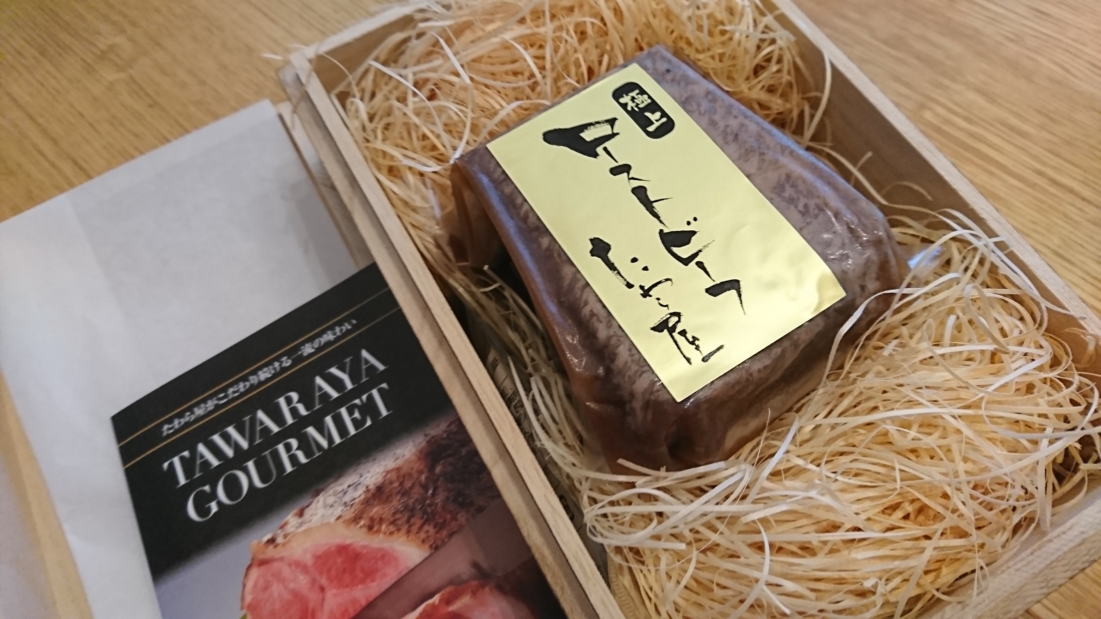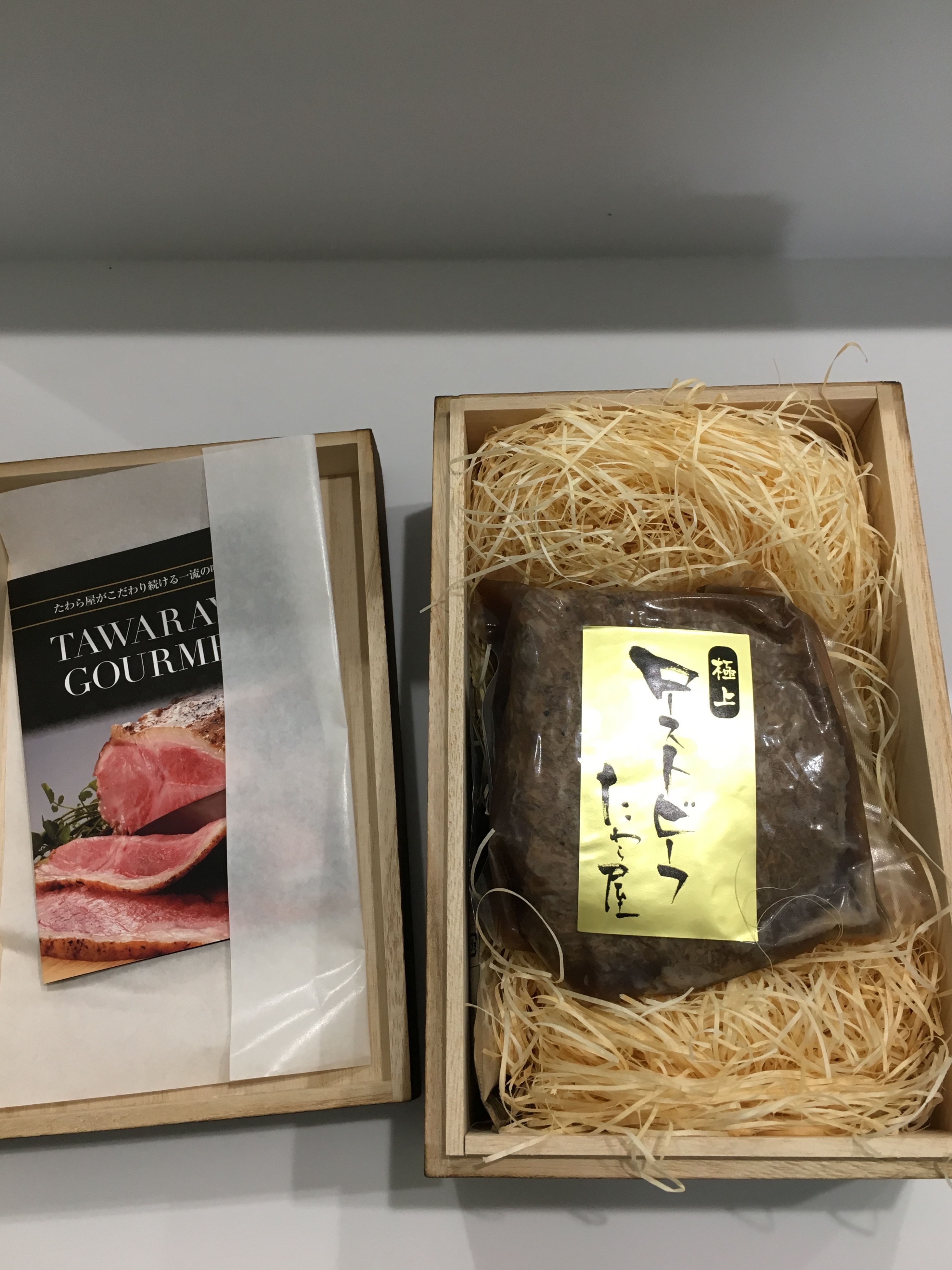 シンプルな包装紙、箱を開けると、金色!!そしてお肉!!!高級感とお肉の存在感にワクワクします。