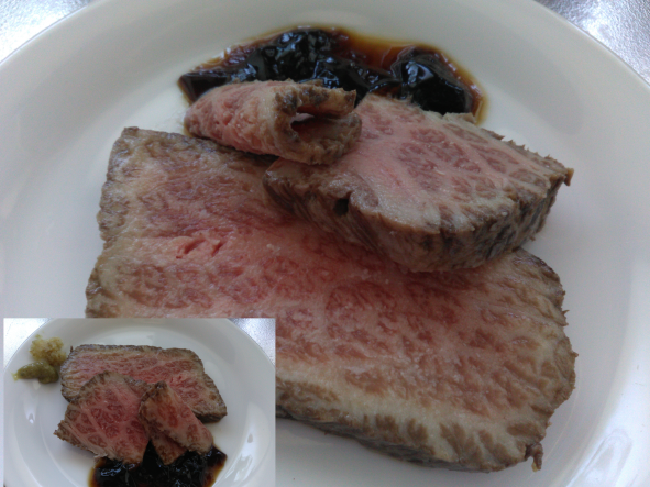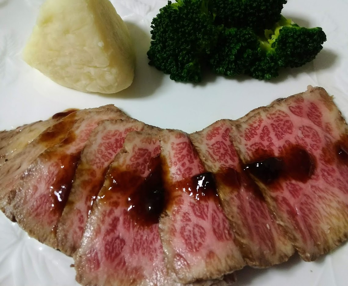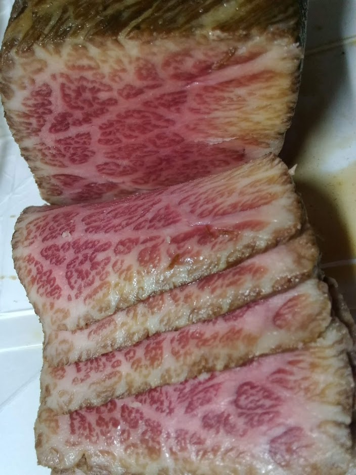 断面は、ほどよくさしのはいった上等なお肉ということが、視覚的にも伝わってきます。