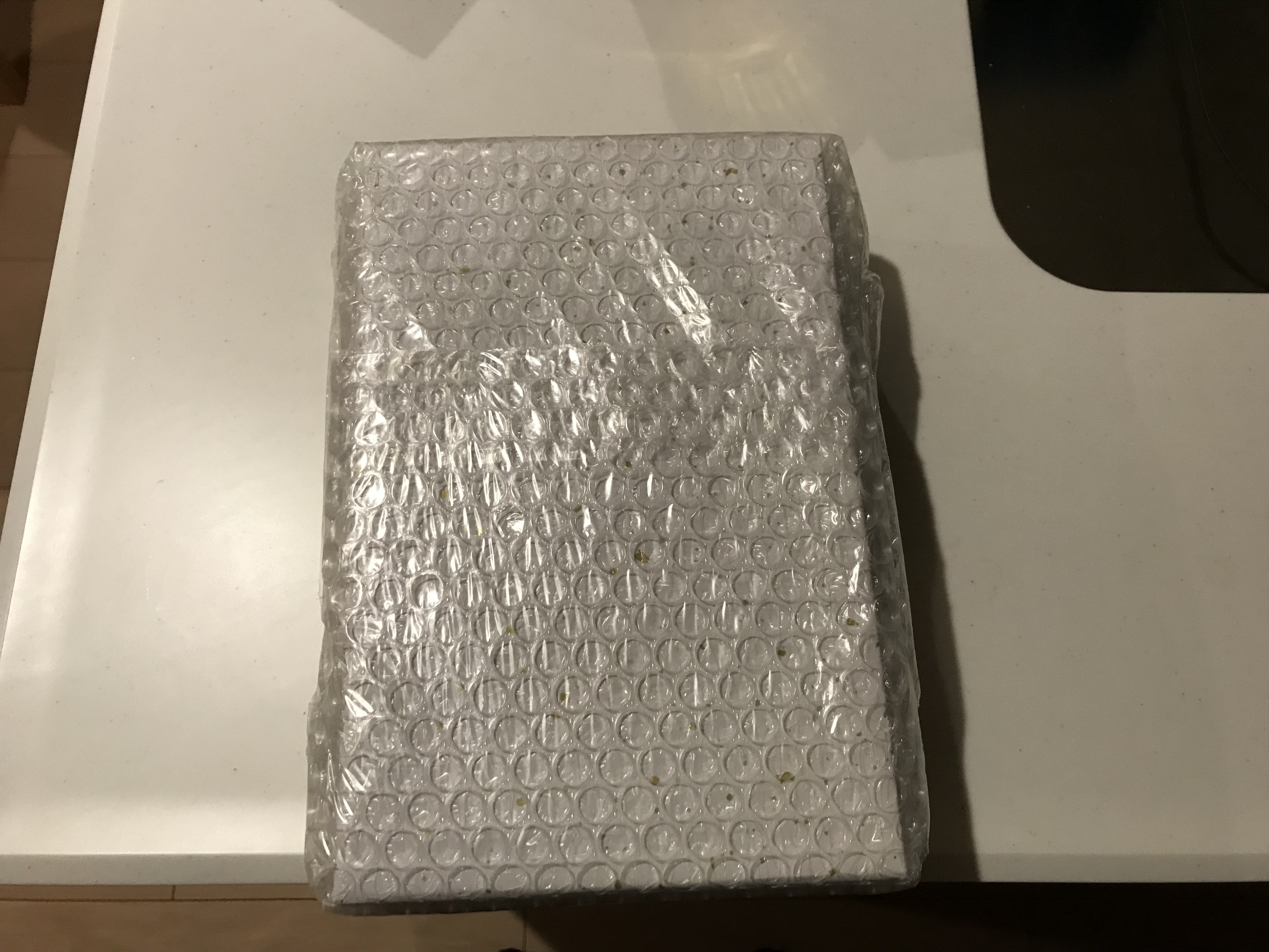丁寧にプチプチでくるまれた、こぶりな箱。