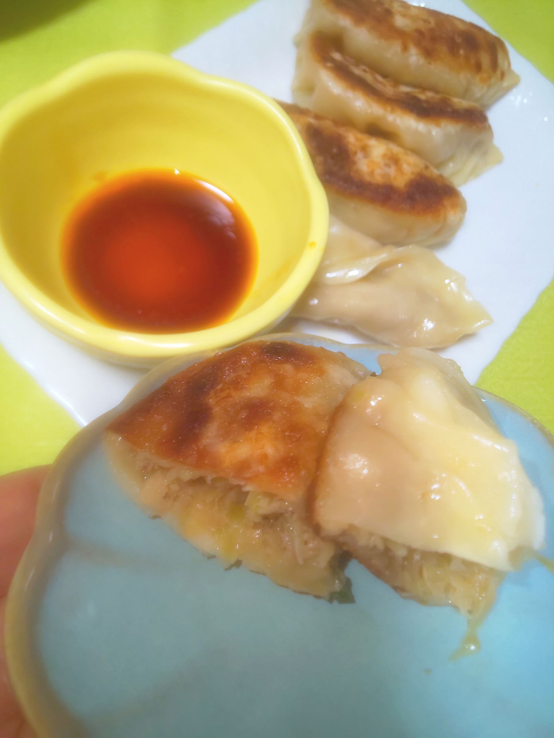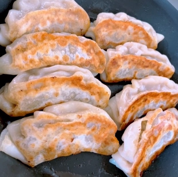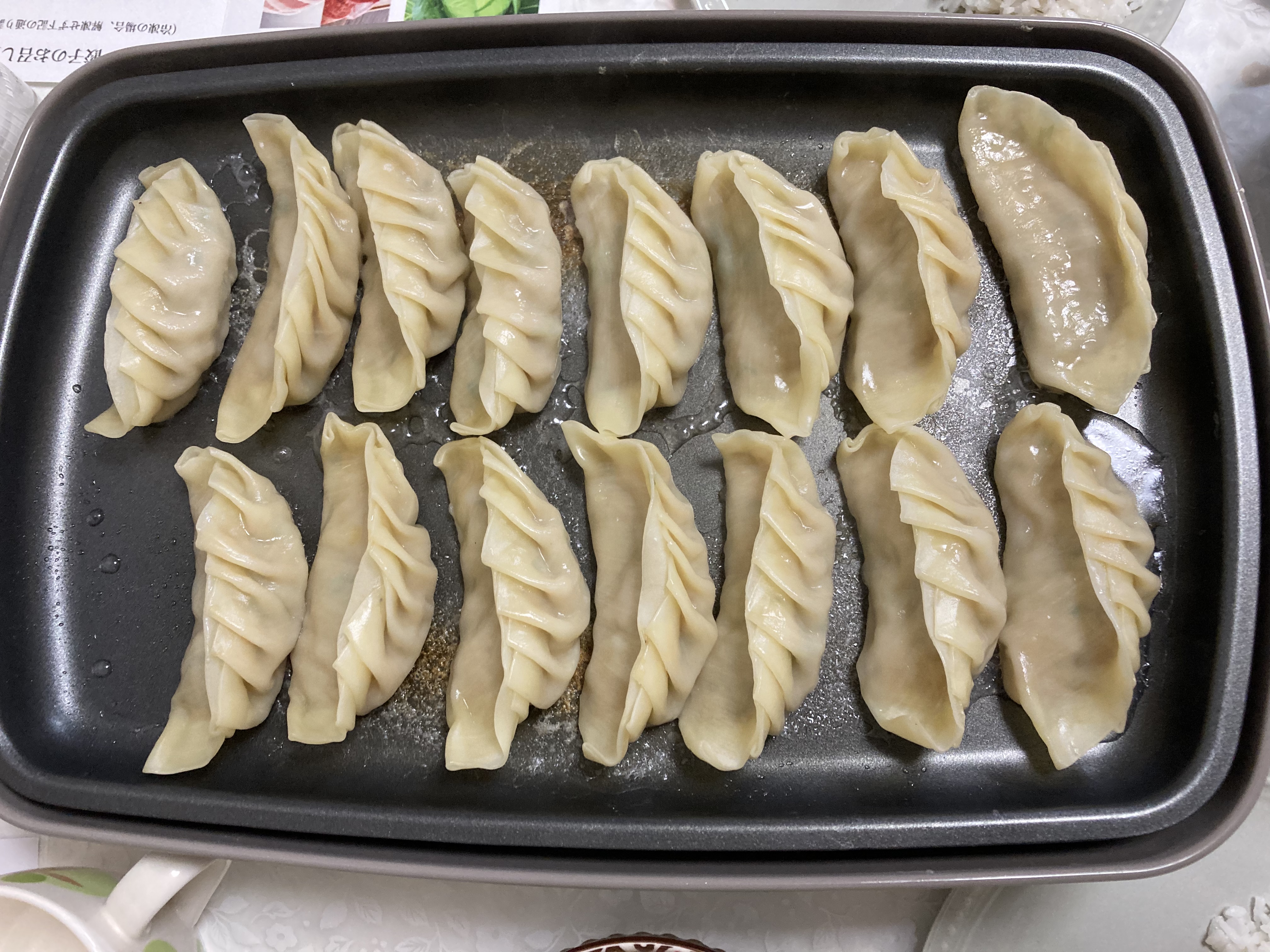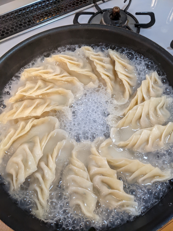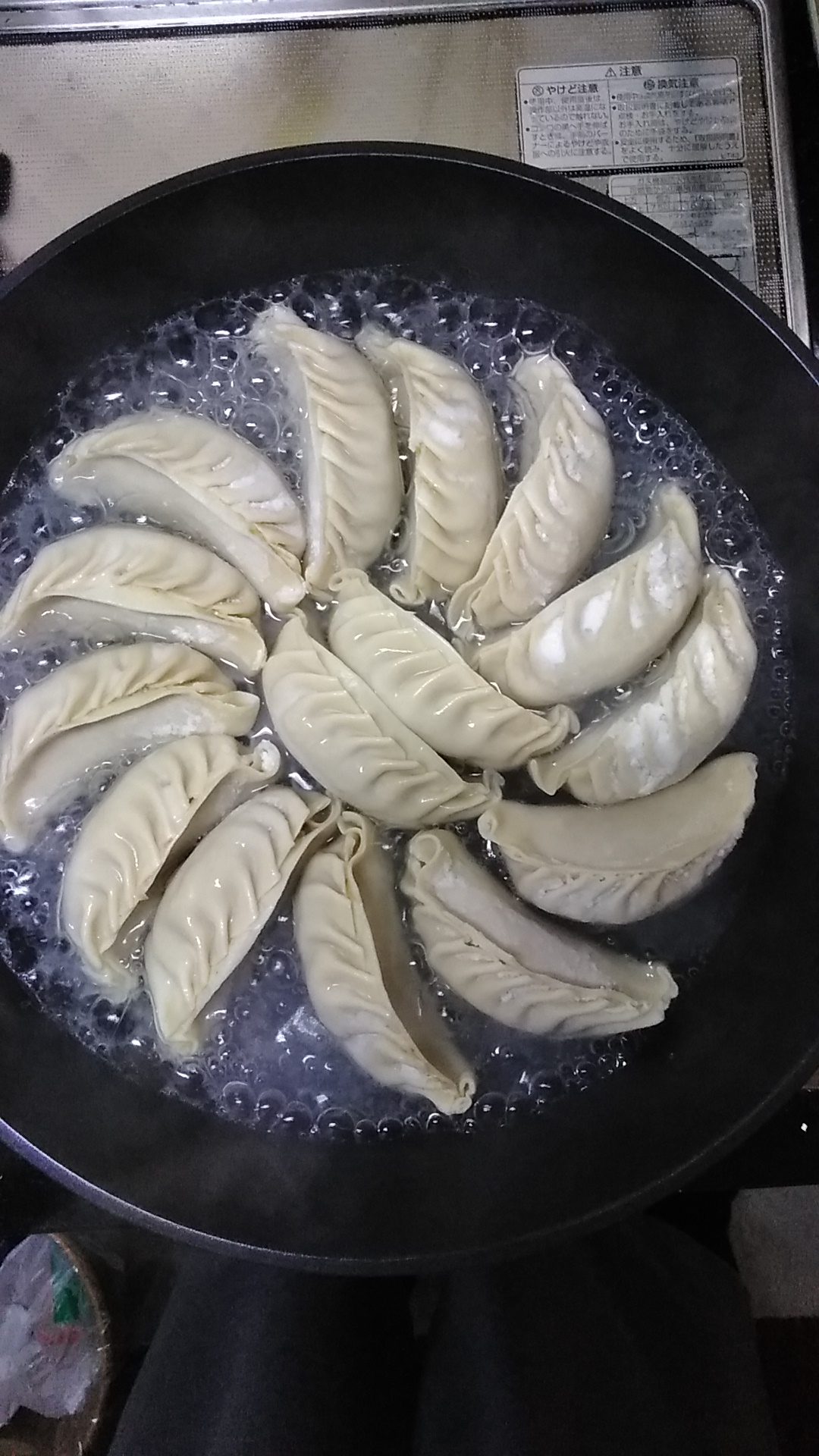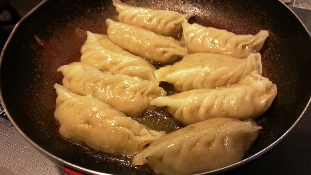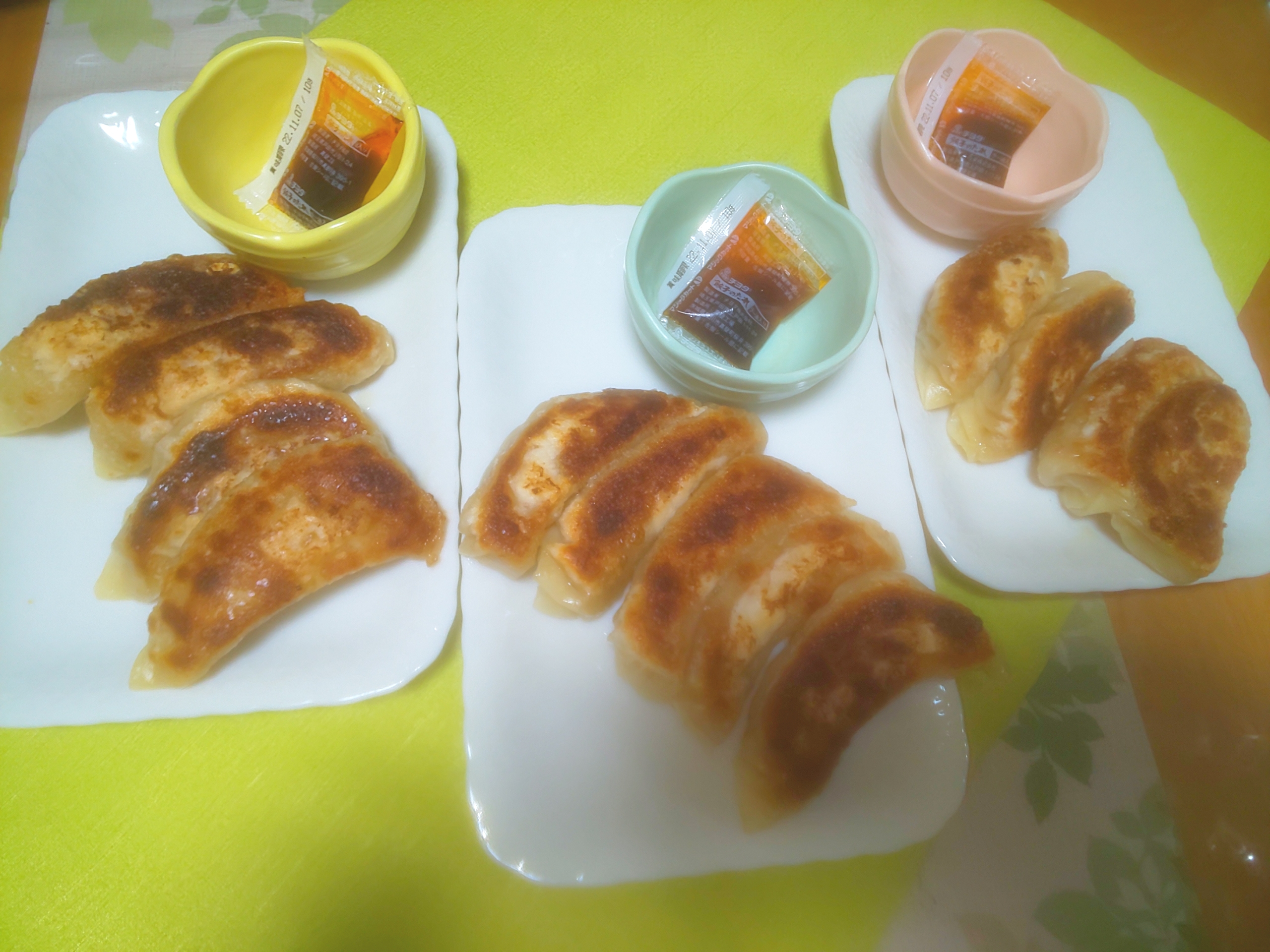 まずは鍋に油をすこし、冷凍されたままのアントン餃子を並べて、餃子の半分が浸るくらいの水を入れて加熱→湯を捨てて一気に焼き上げます。タレ付属だから、焼いたらすぐ食べられる!