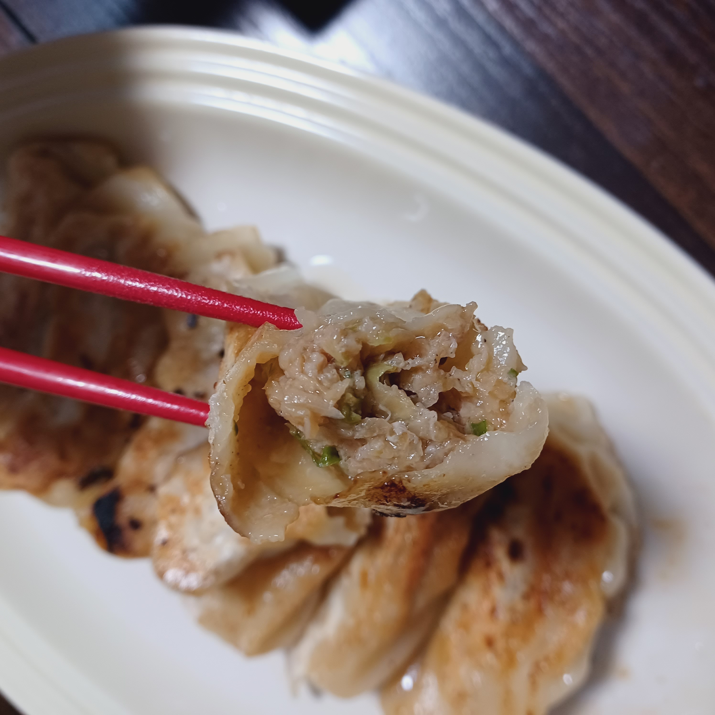 そしてお味…美味しい餃子には酢と胡椒またはラー油だけで食べるのですが、この餃子はしっかりと下味がついているので、むしろ何もつけずにいただきました。めちゃくちゃ美味しい!肉だけじゃなく野菜がすごく美味しいです。甘いというか、野菜の旨みが濃い。それもそのはず公式HPによると