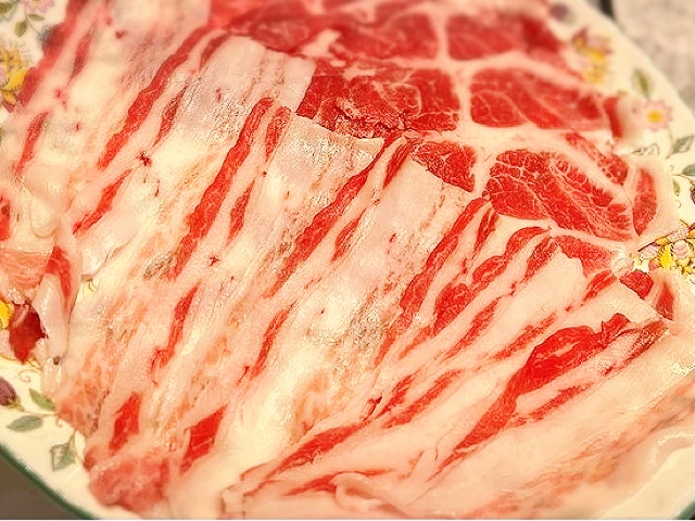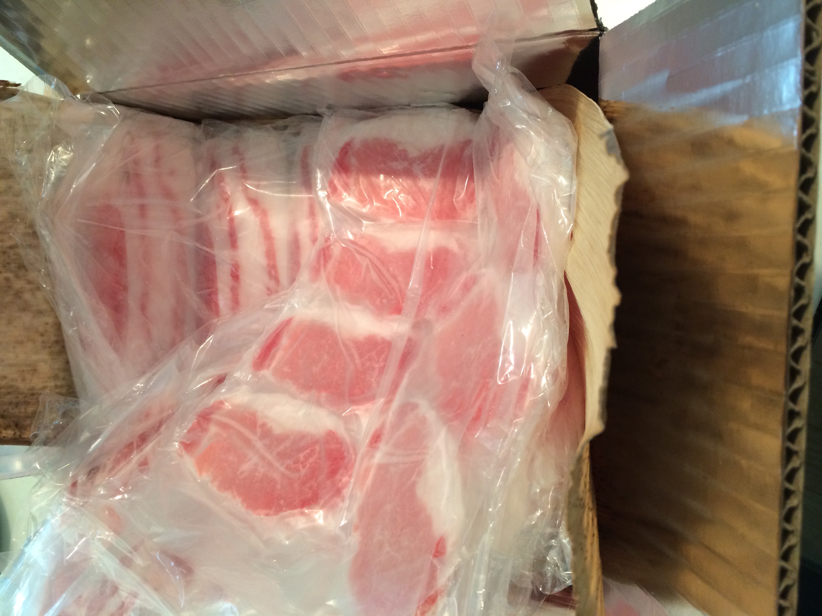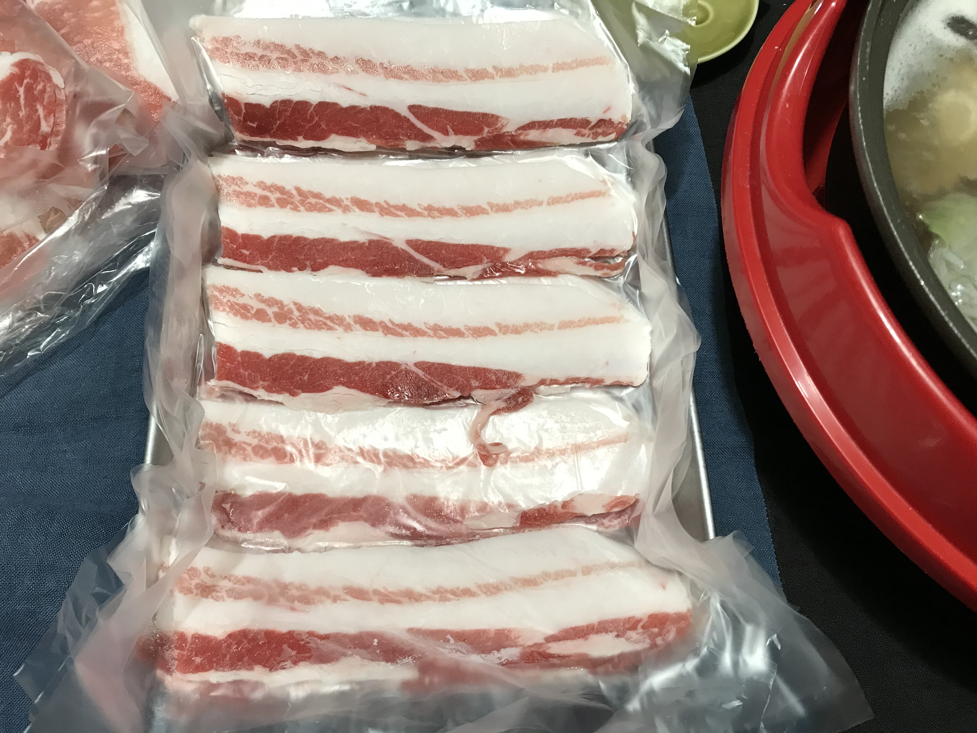 お肉のお色が国産の豚肉とは違う印象です。赤身のお色は鮮やかで色が濃く、脂身は真っ白で美しいです。