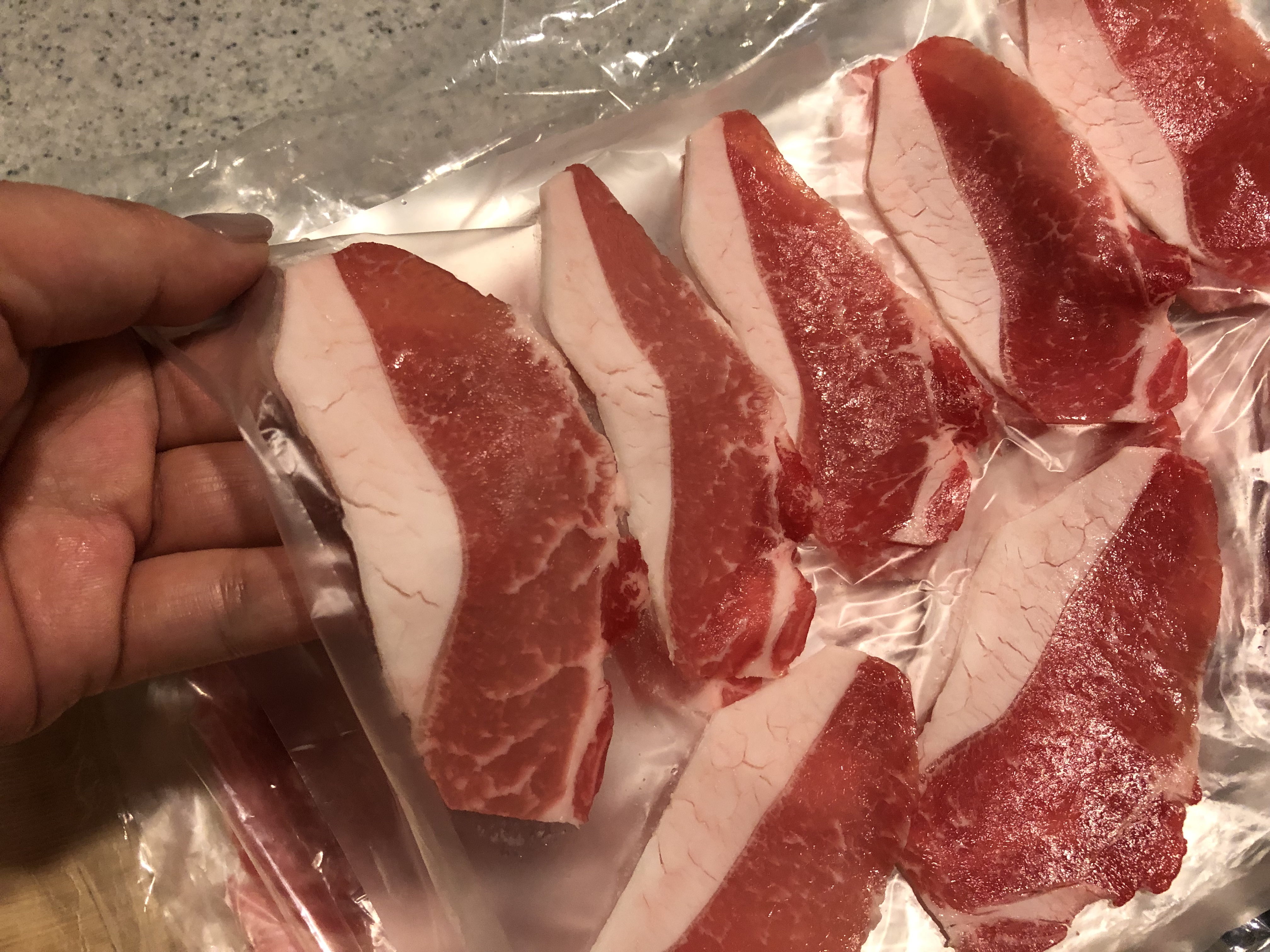 脂身はすごく芳醇で甘く、びっくりするほど美味しかったです。しつこさもありませんでした。火が入ると脂身がプルプルとした弾力があり初めての食感でした。家族みんなあまり脂身が得意ではないのですが、みんなロースよりバラの方が好きと言っていました。
