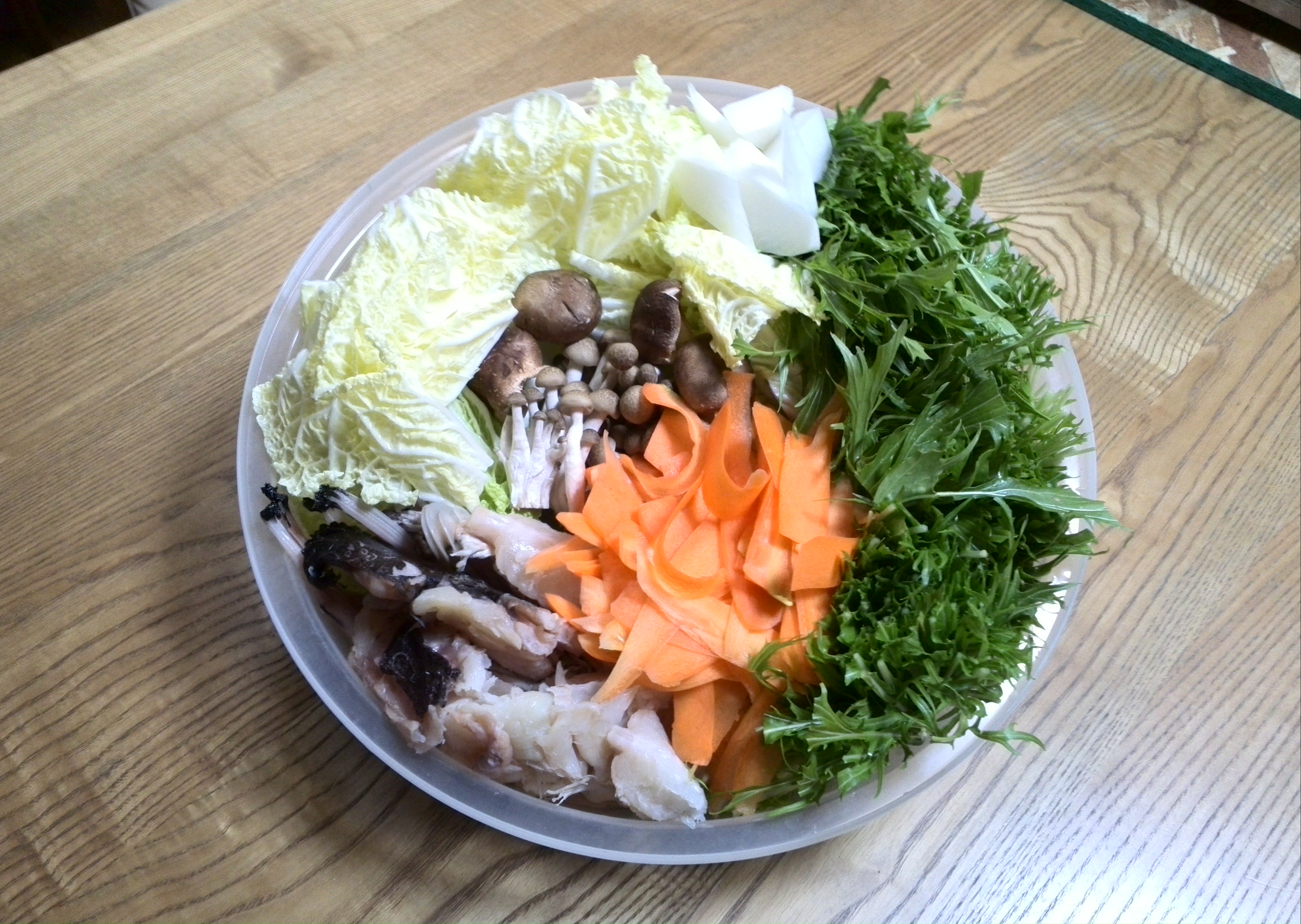 ネギ、白菜、春菊などを入れて、さっそく食べてみました。アンコウの食感は、引きしまってあっさりしているので、葉物野菜ととてもあいました。