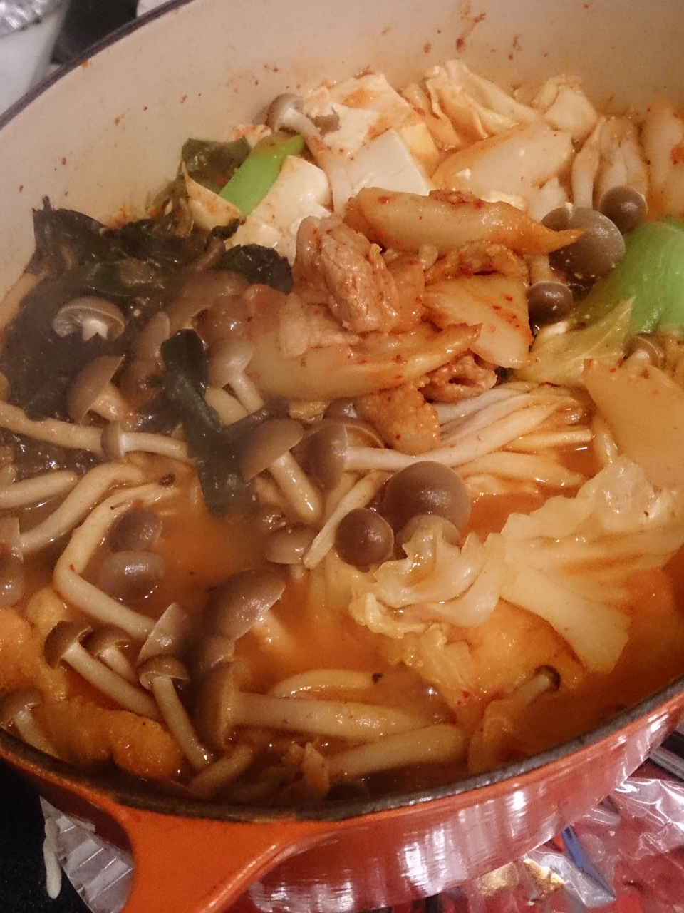 炊き立てのご飯にもよし、私のおすすめは発酵がすすんだ白菜キムチでチゲ鍋が良いと思います。