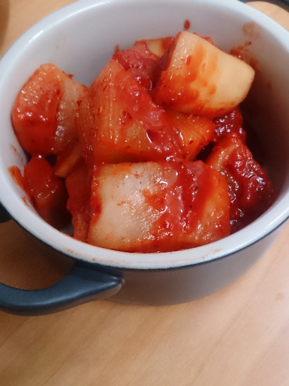 拍子切りで、食べ応えがあります。甘めのヤンニョムで大根の美味しさが引き立っています。