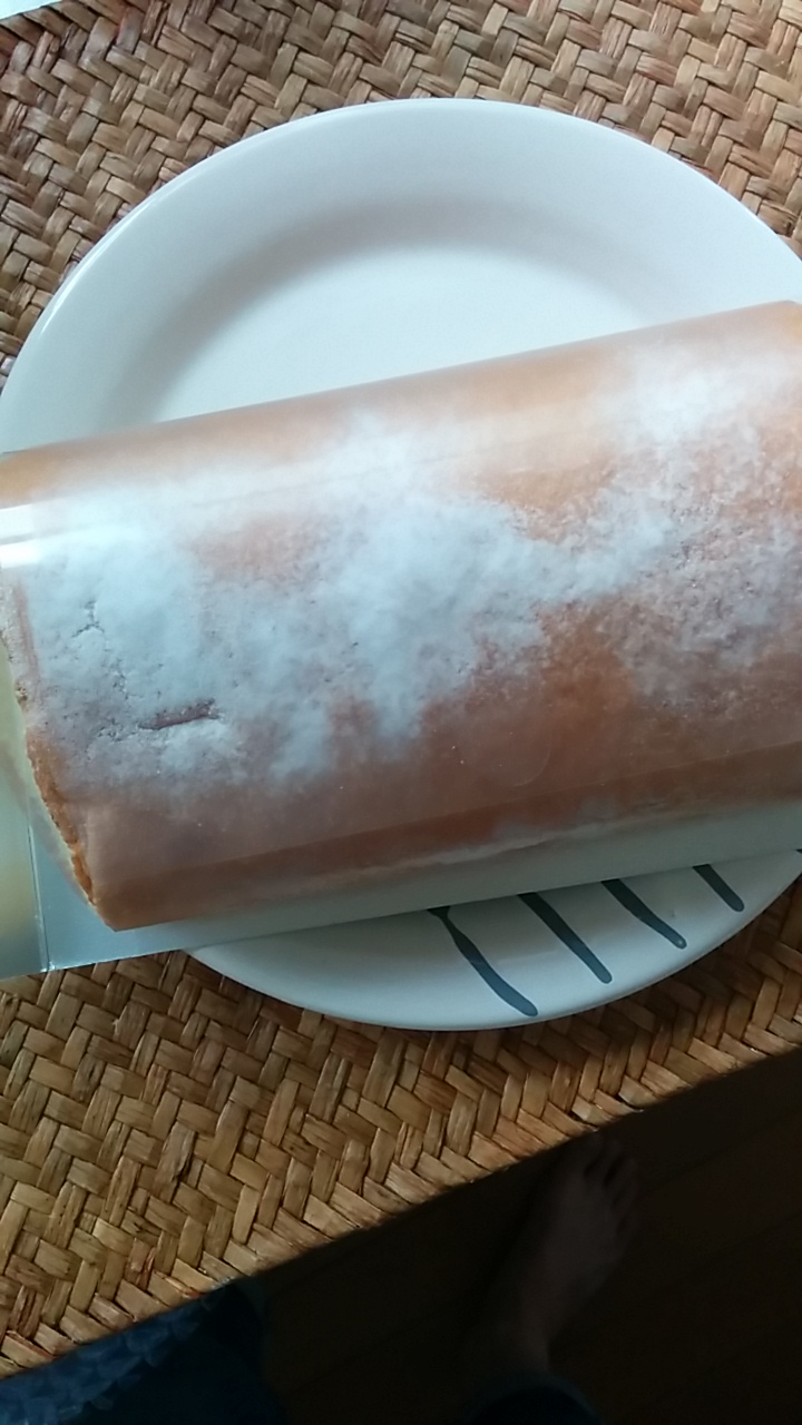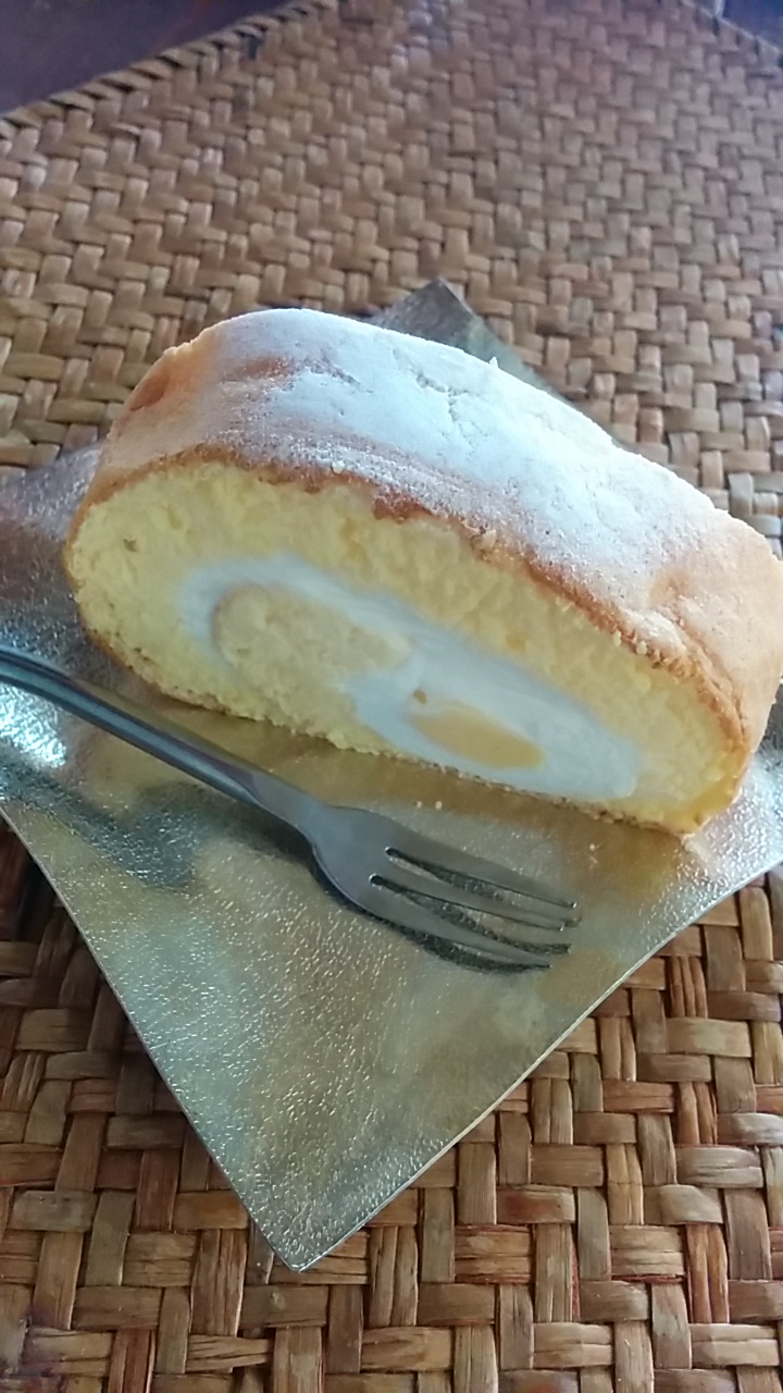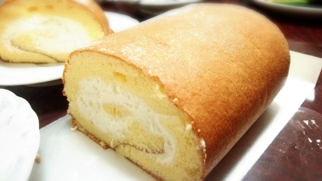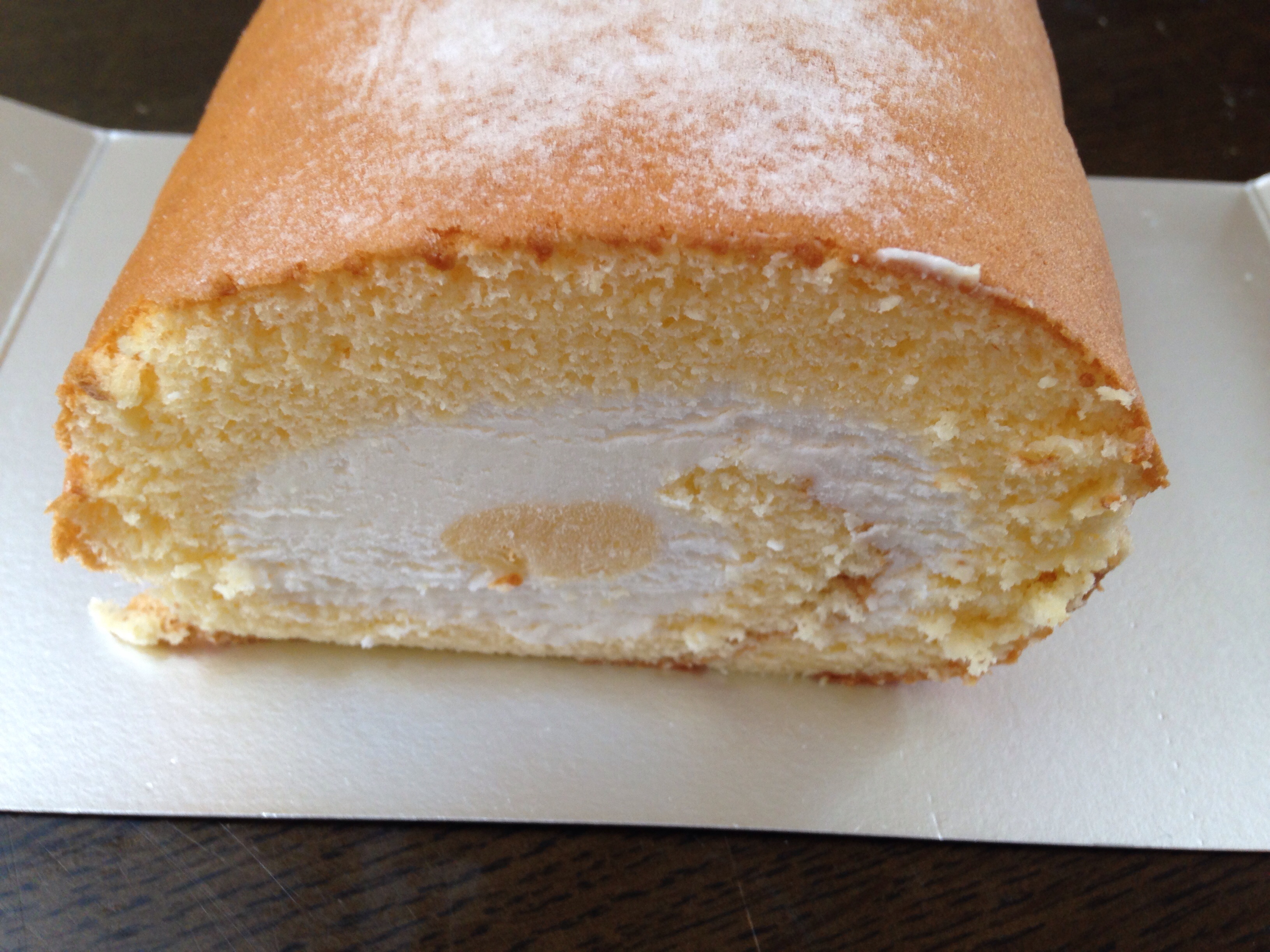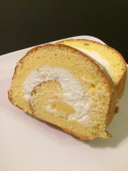 開けてみると、ふわふわもっちりのスポンジに、生クリームとカスタードクリームがたっぷり詰まっていて、見ただけで、うれしくなるようなロールケーキが入っていました。
