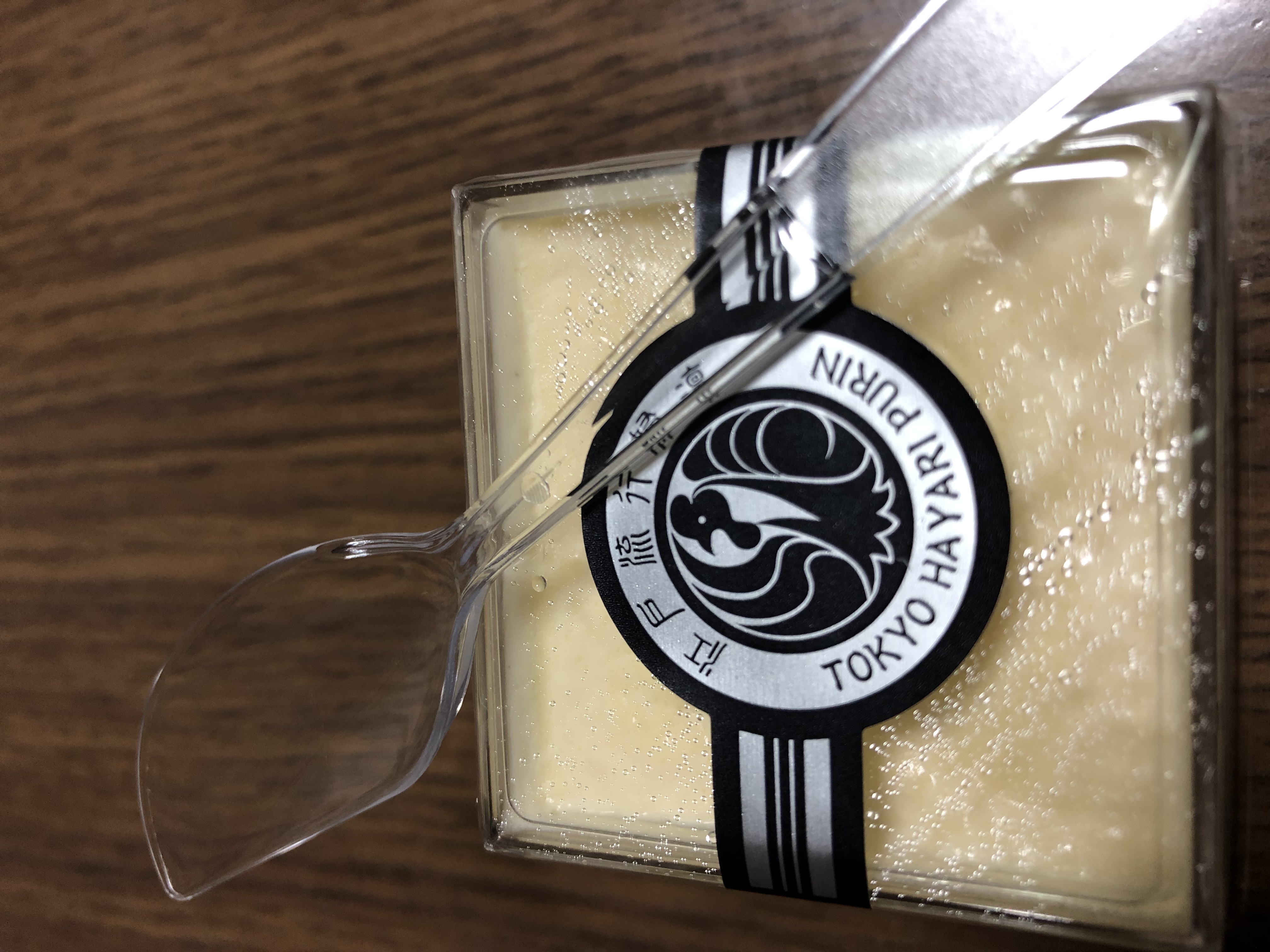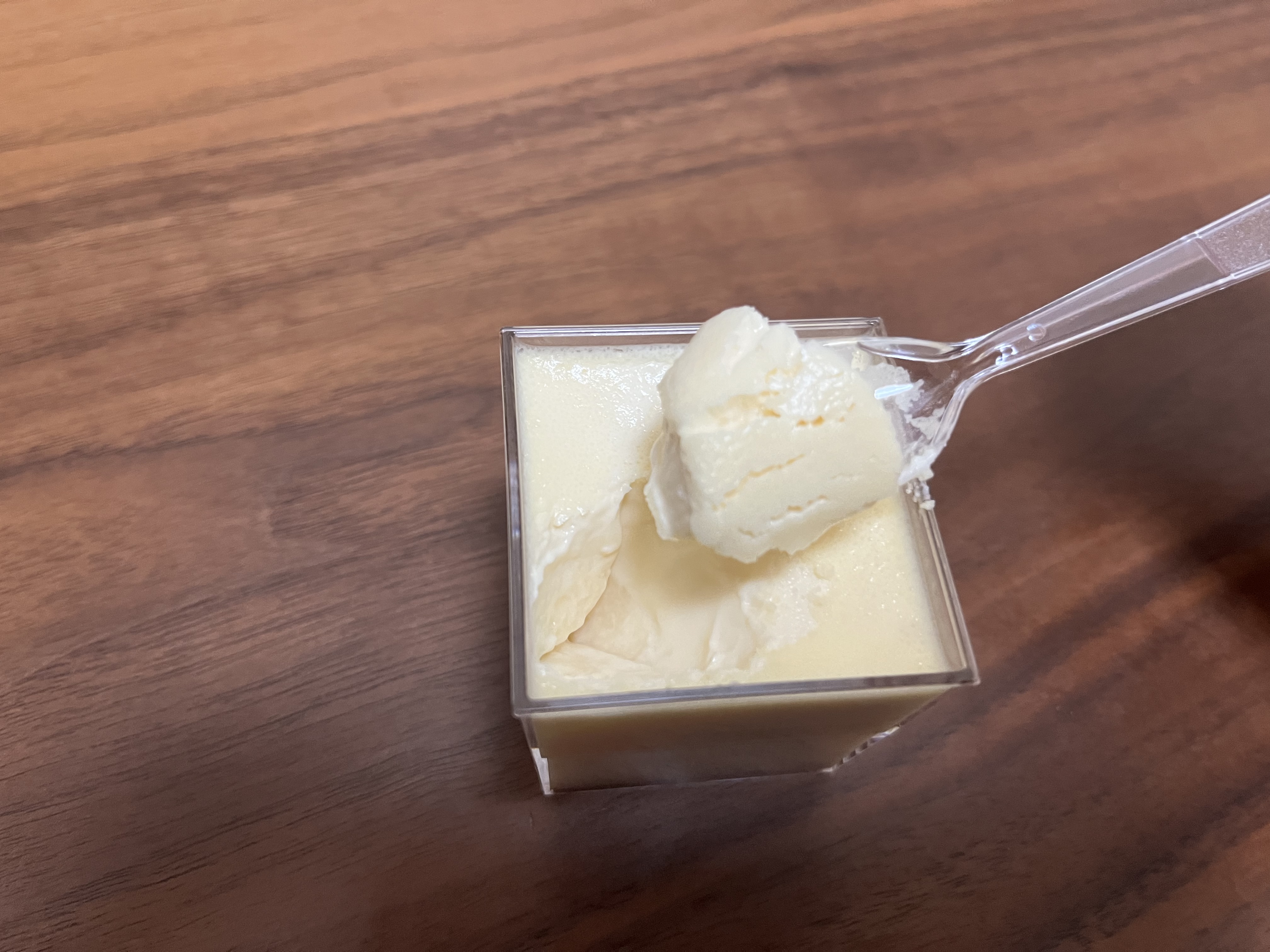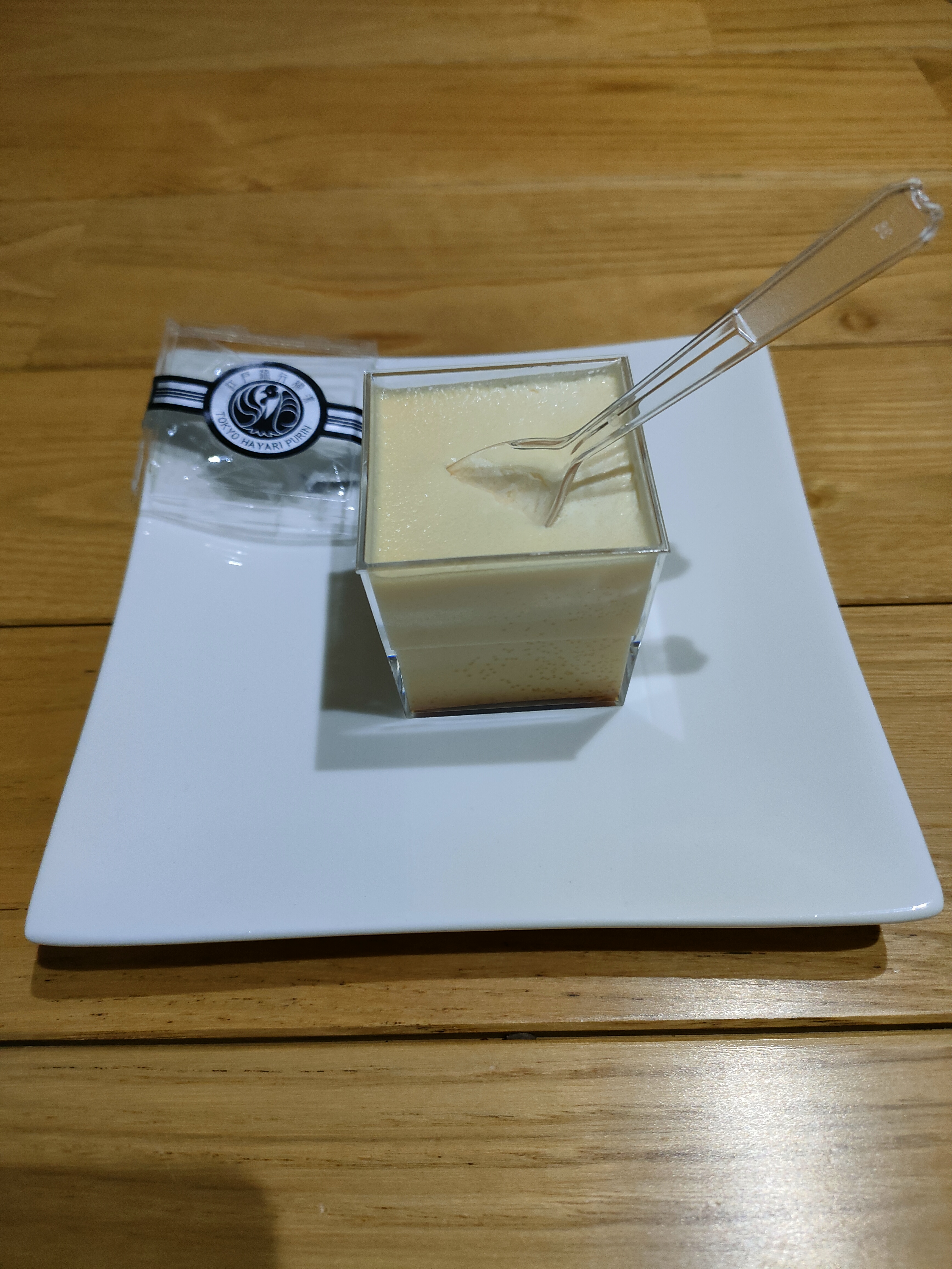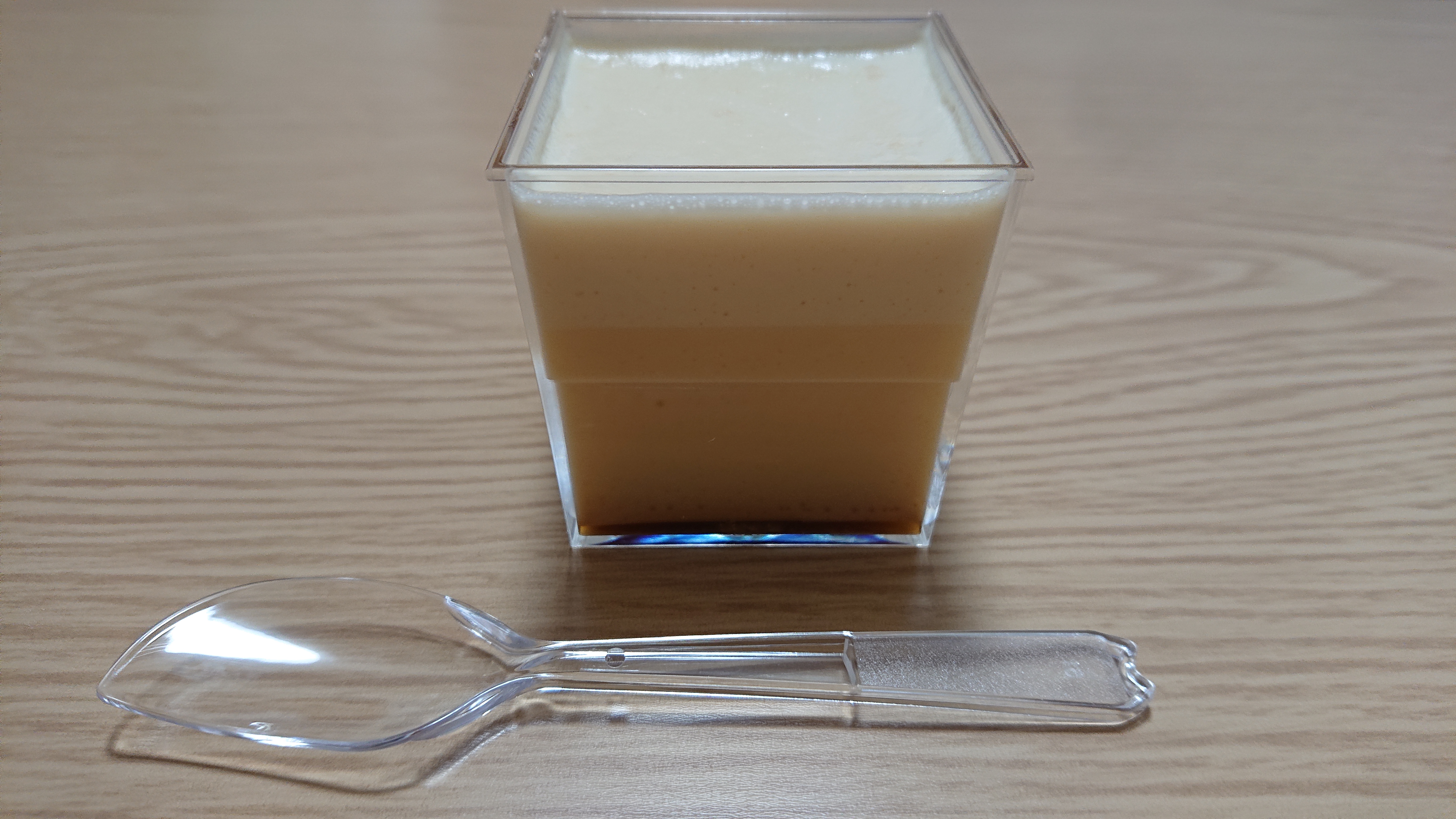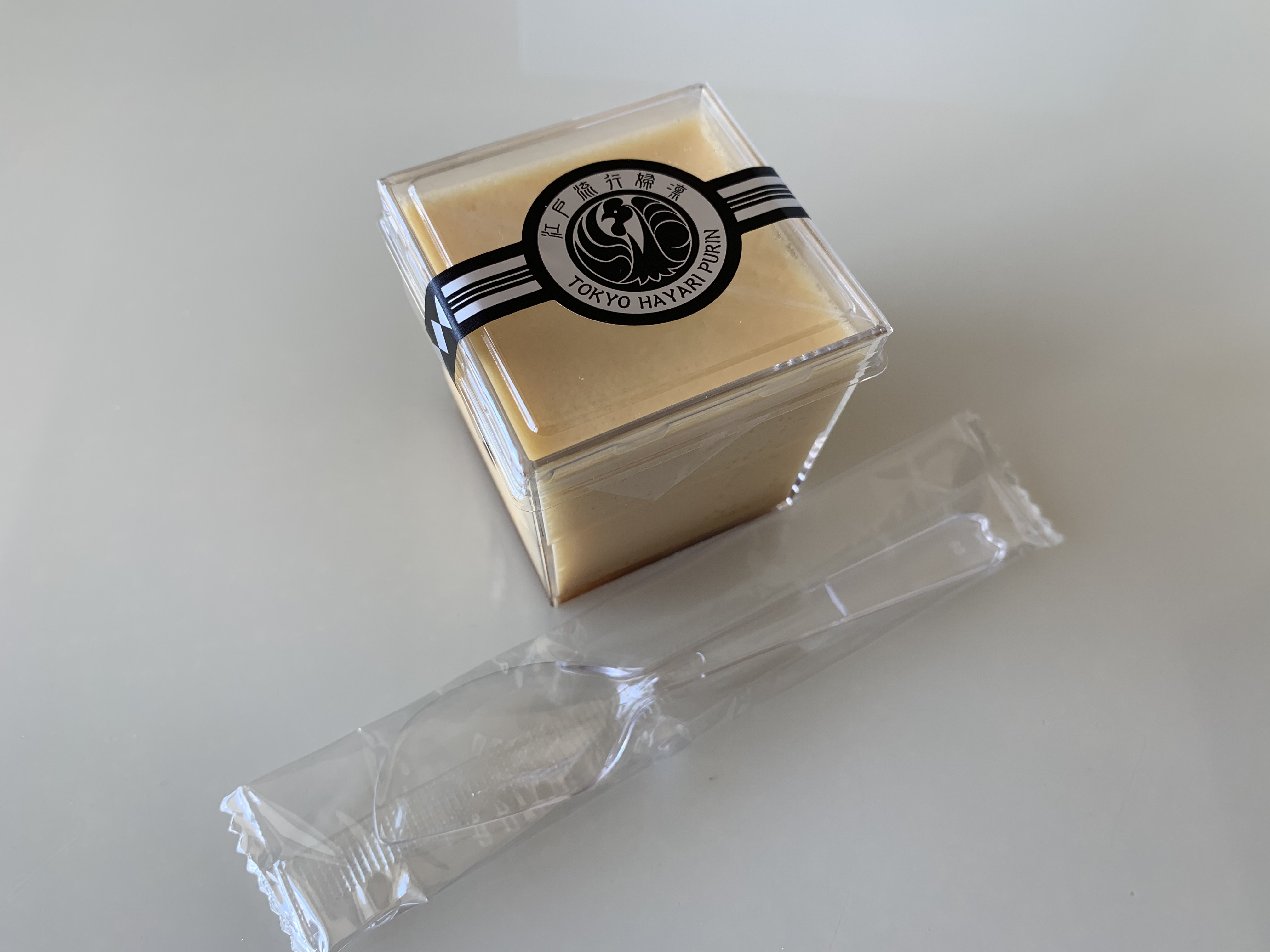 この江戸流行婦凛ならではの四角いプラ容器がとても素敵です。付属のスプーンはリーフ型スプーンと言って、このプリンの四角い容器の特殊な形の角までしっかりすくって食べられる仕様になっています。
