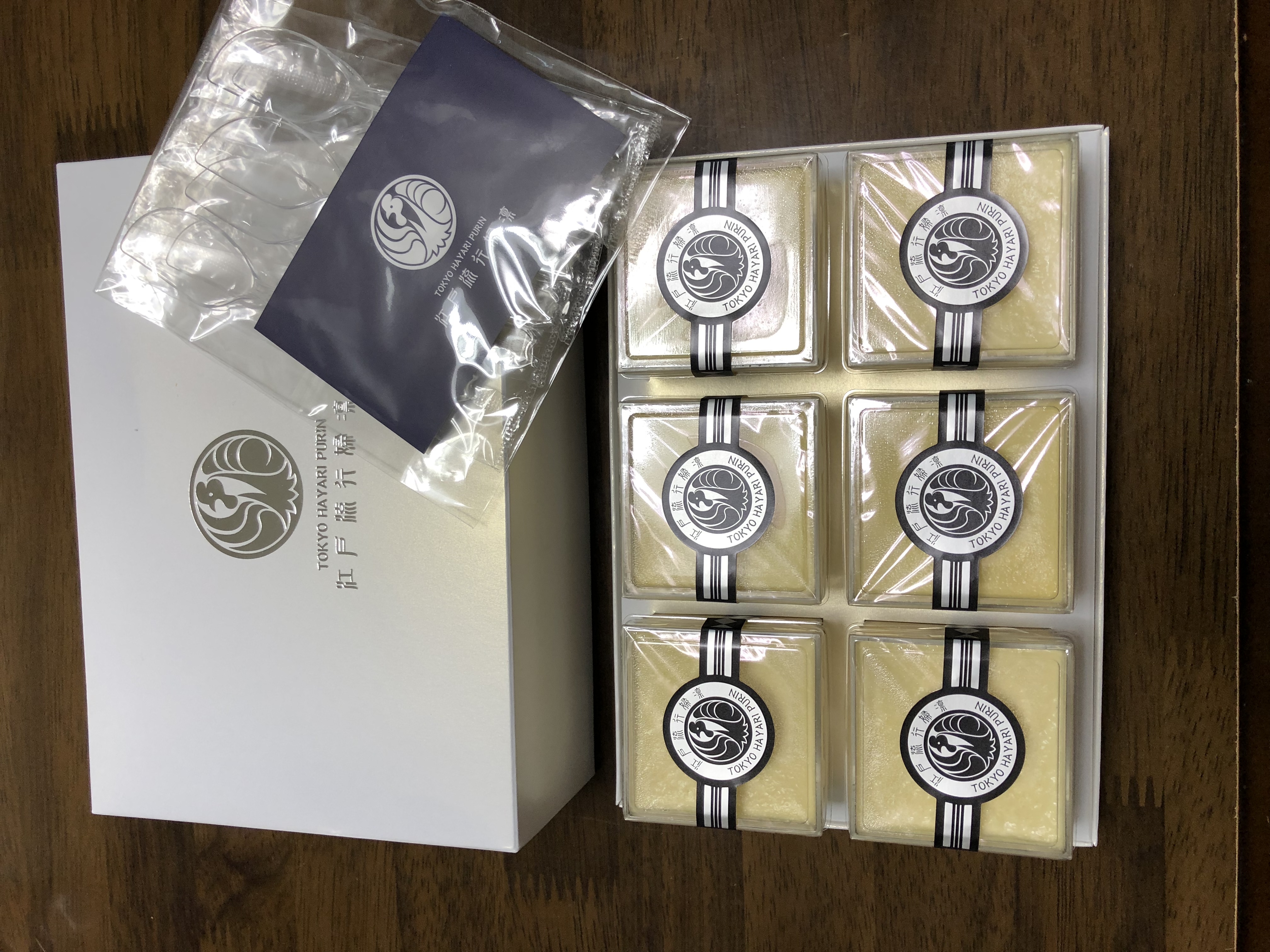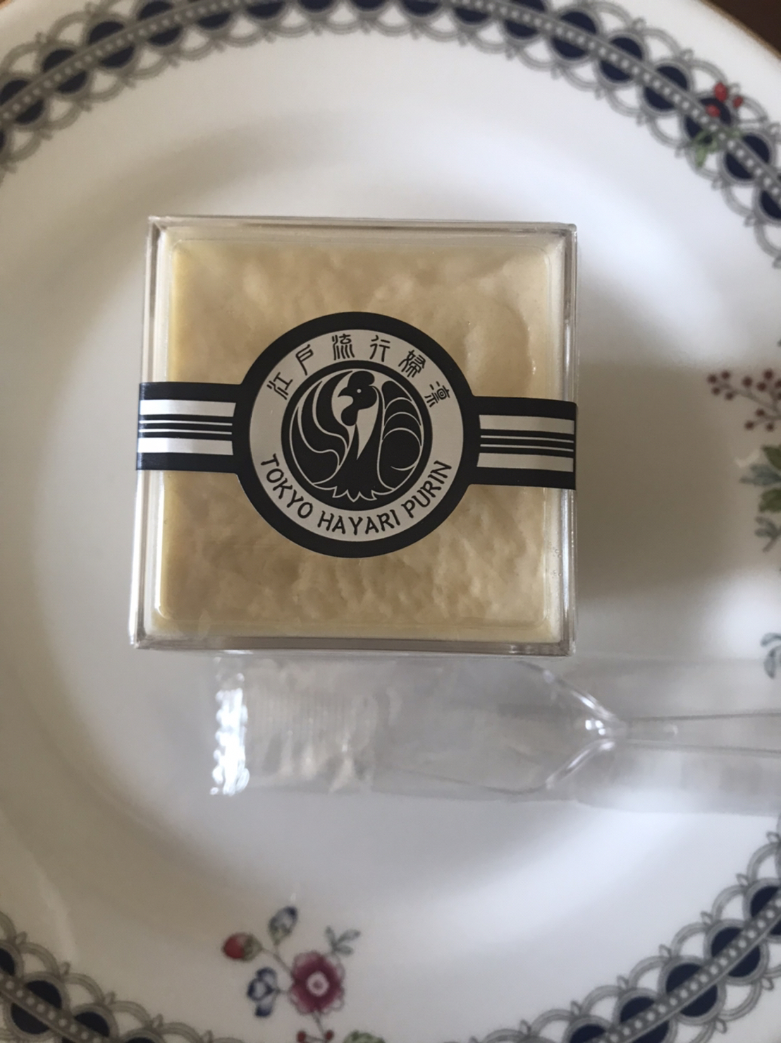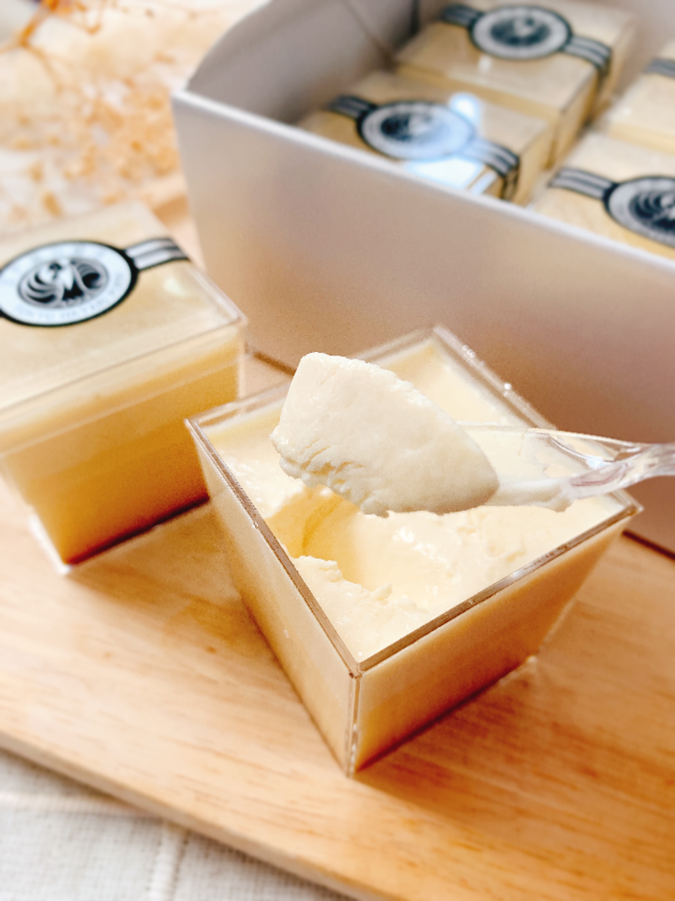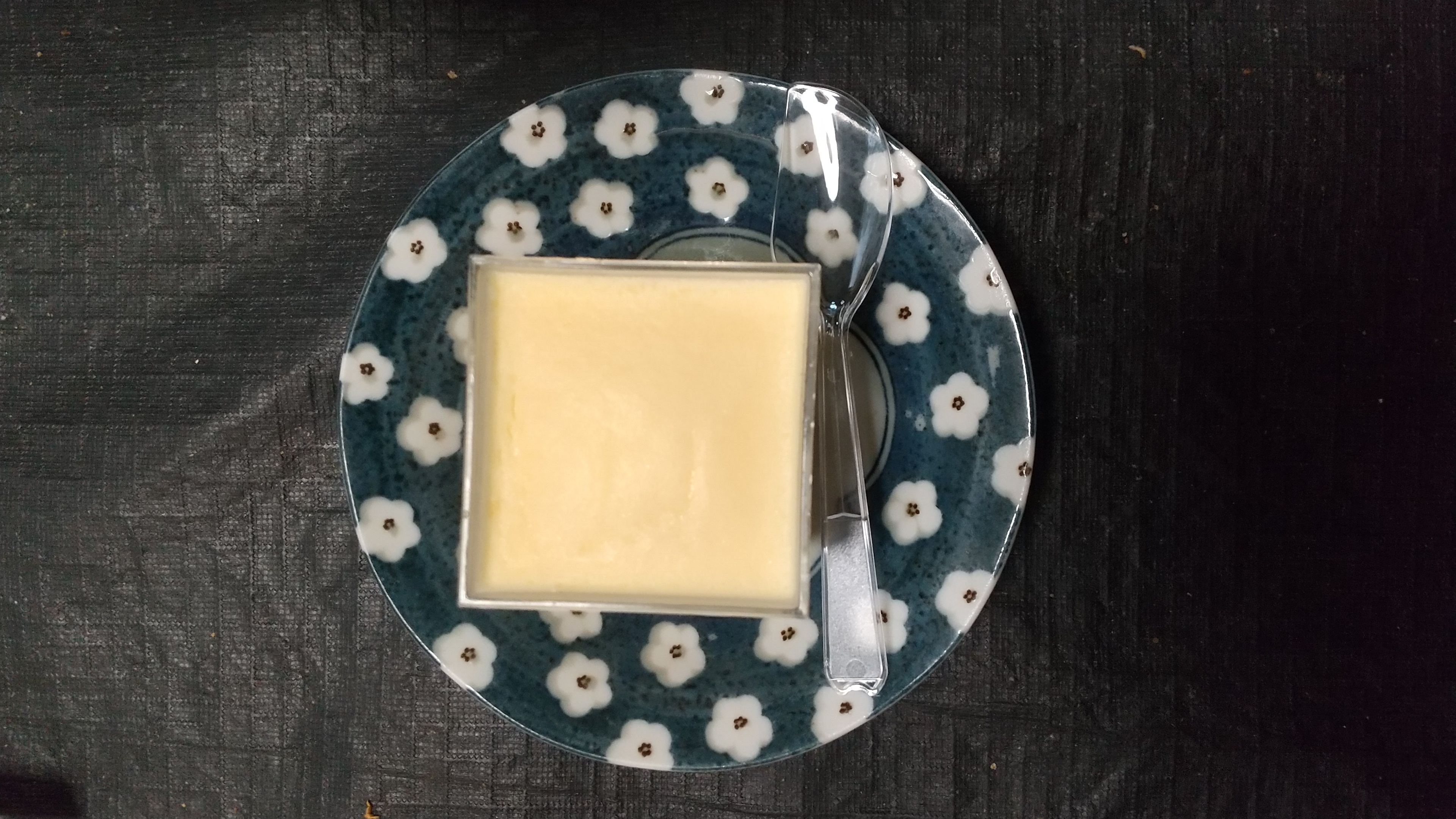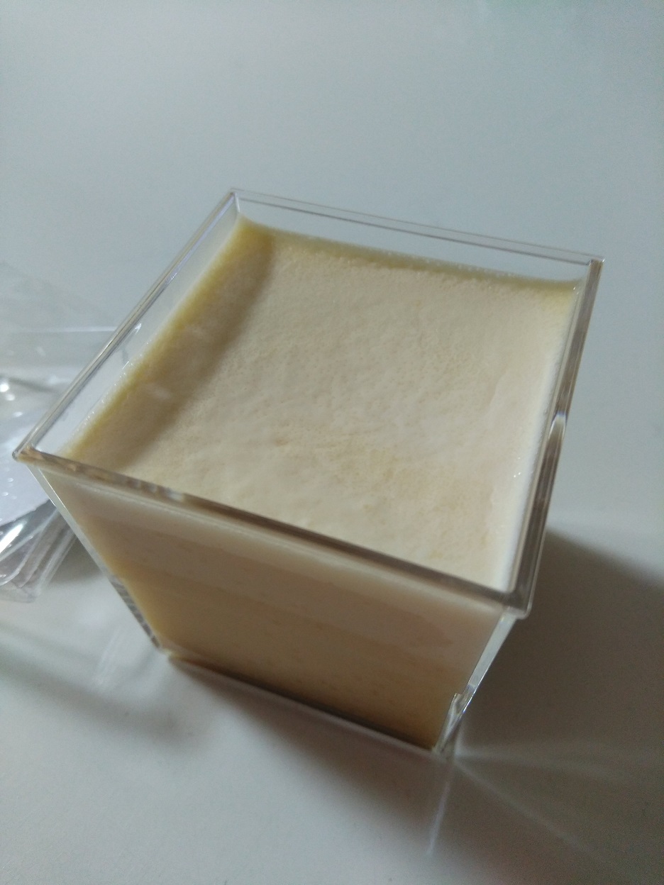 この江戸流行婦凛ならではの四角いプラ容器がとても素敵です。付属のスプーンはリーフ型スプーンと言って、このプリンの四角い容器の特殊な形の角までしっかりすくって食べられる仕様になっています。
