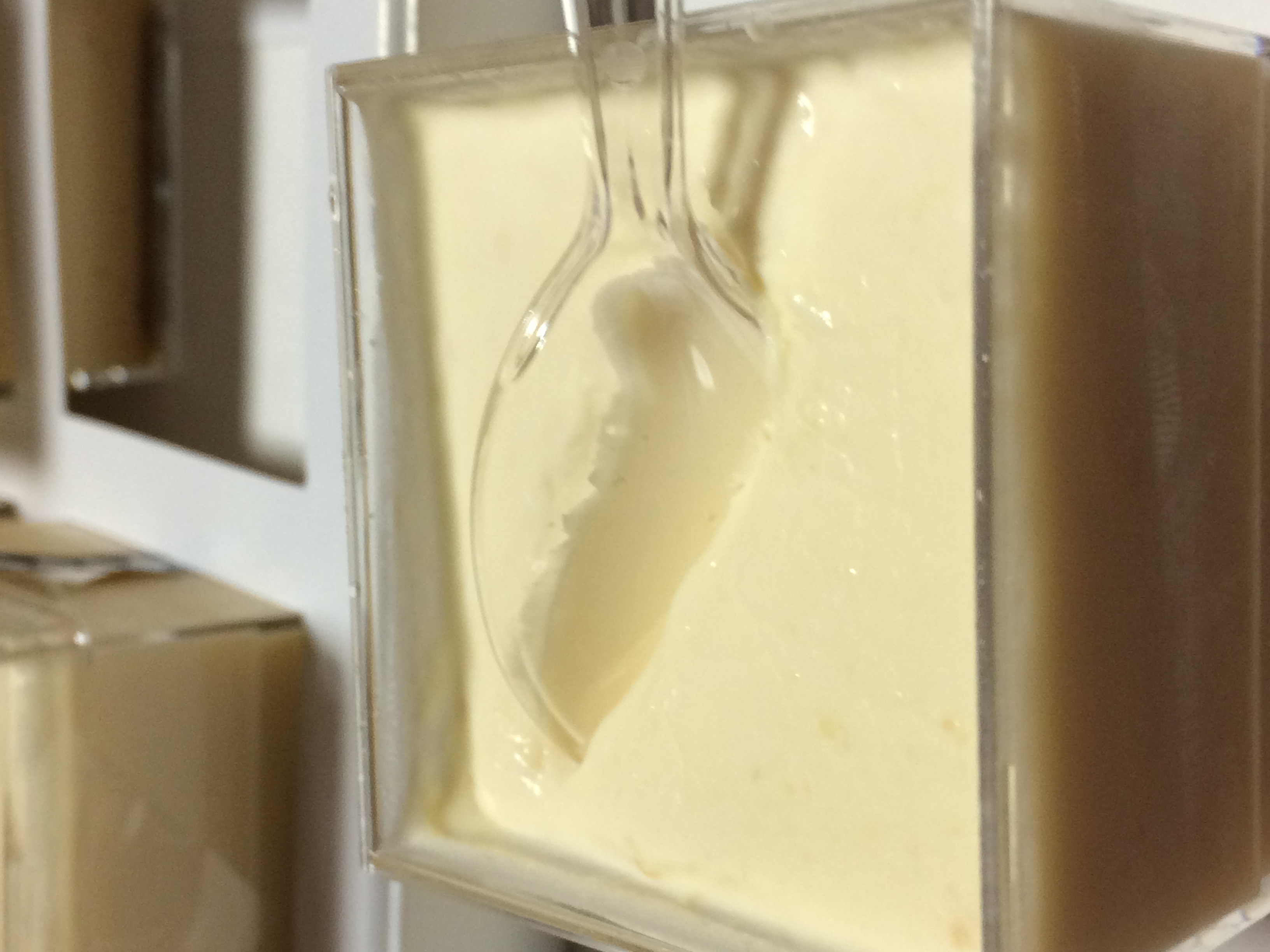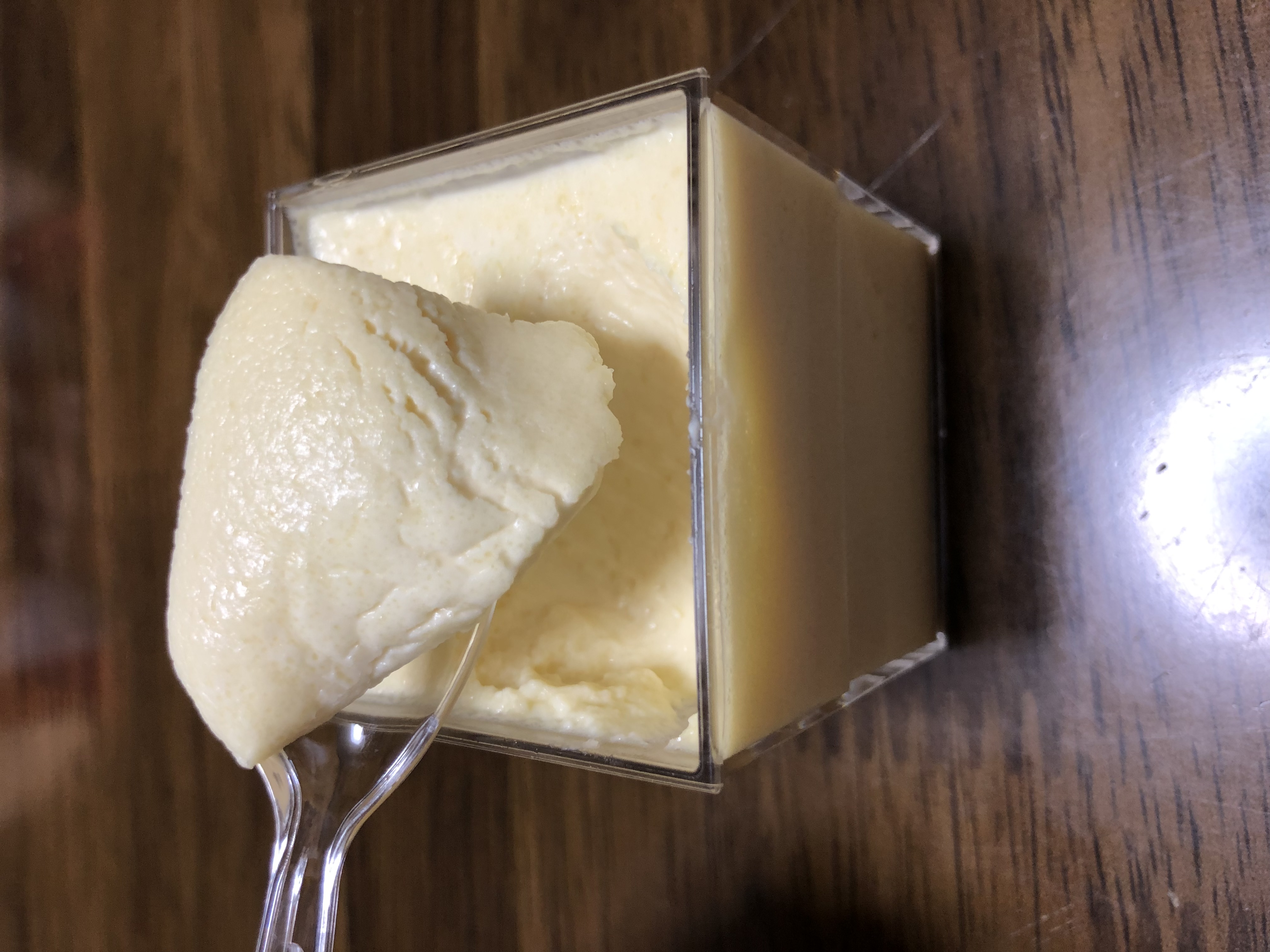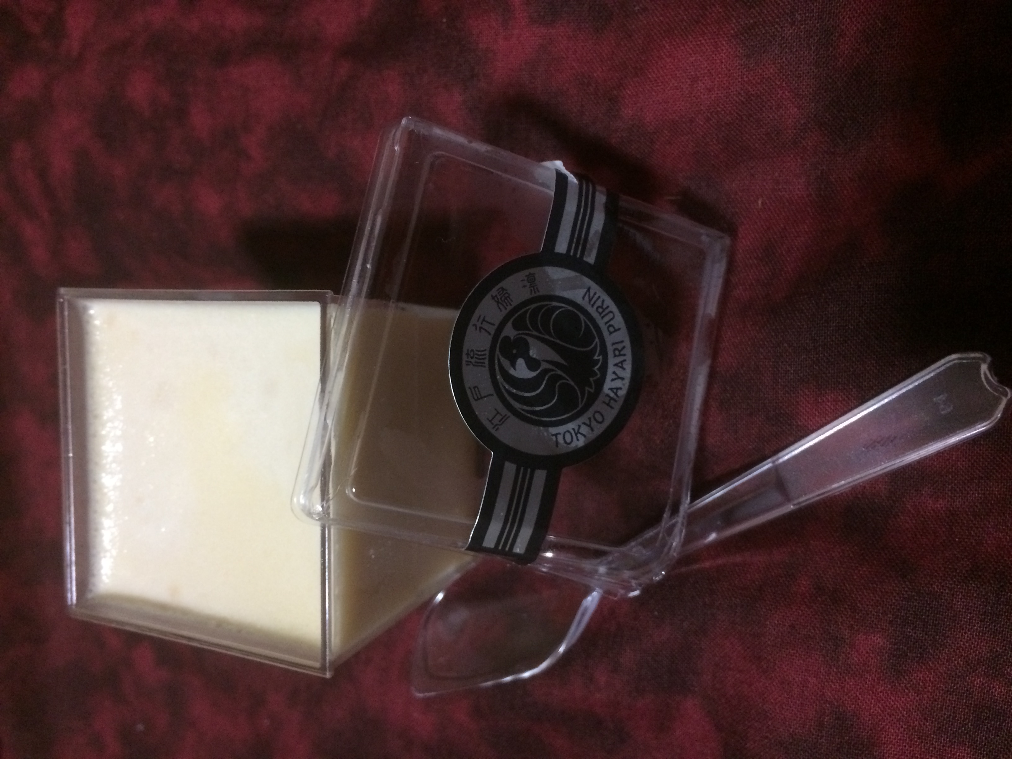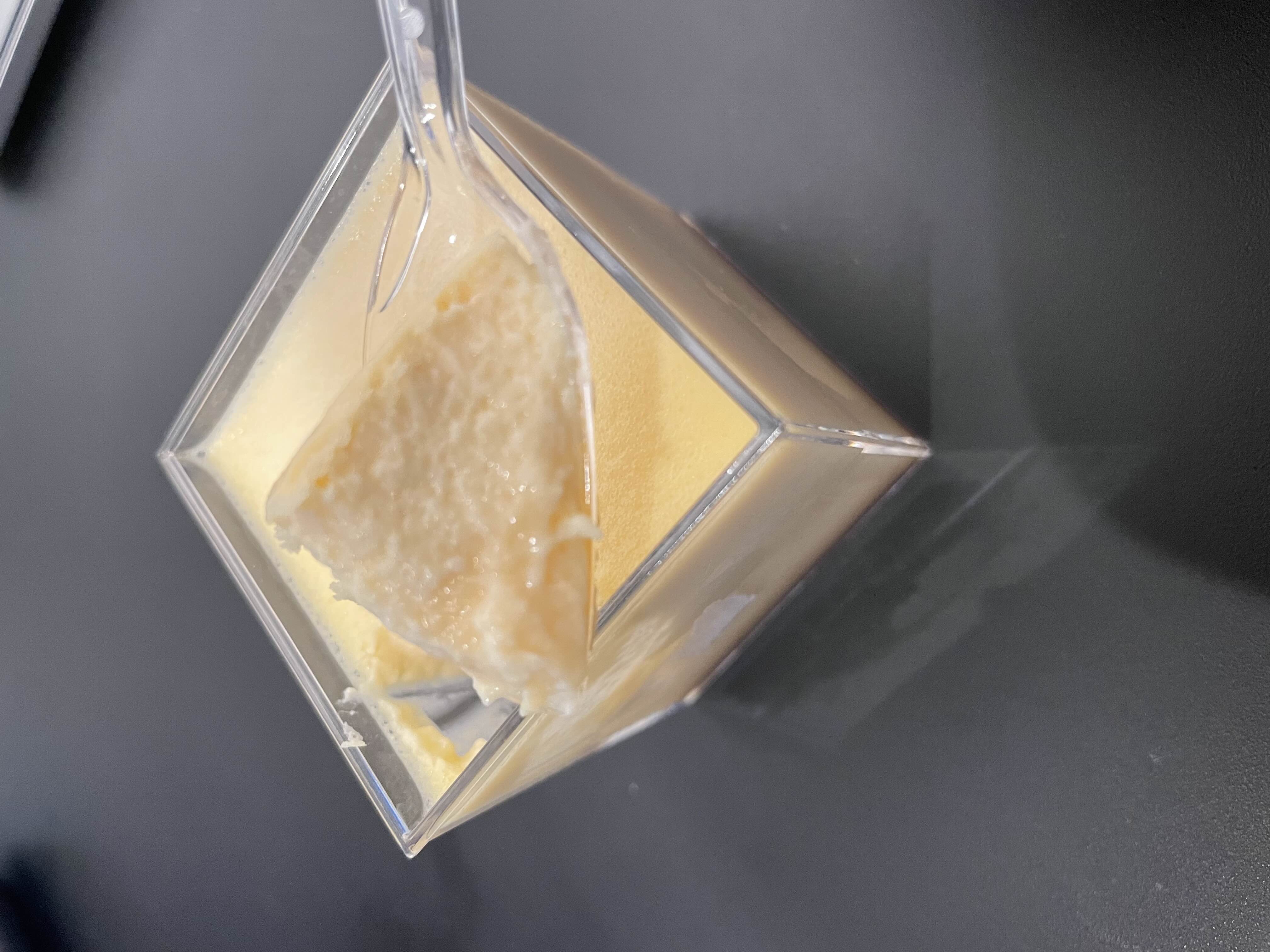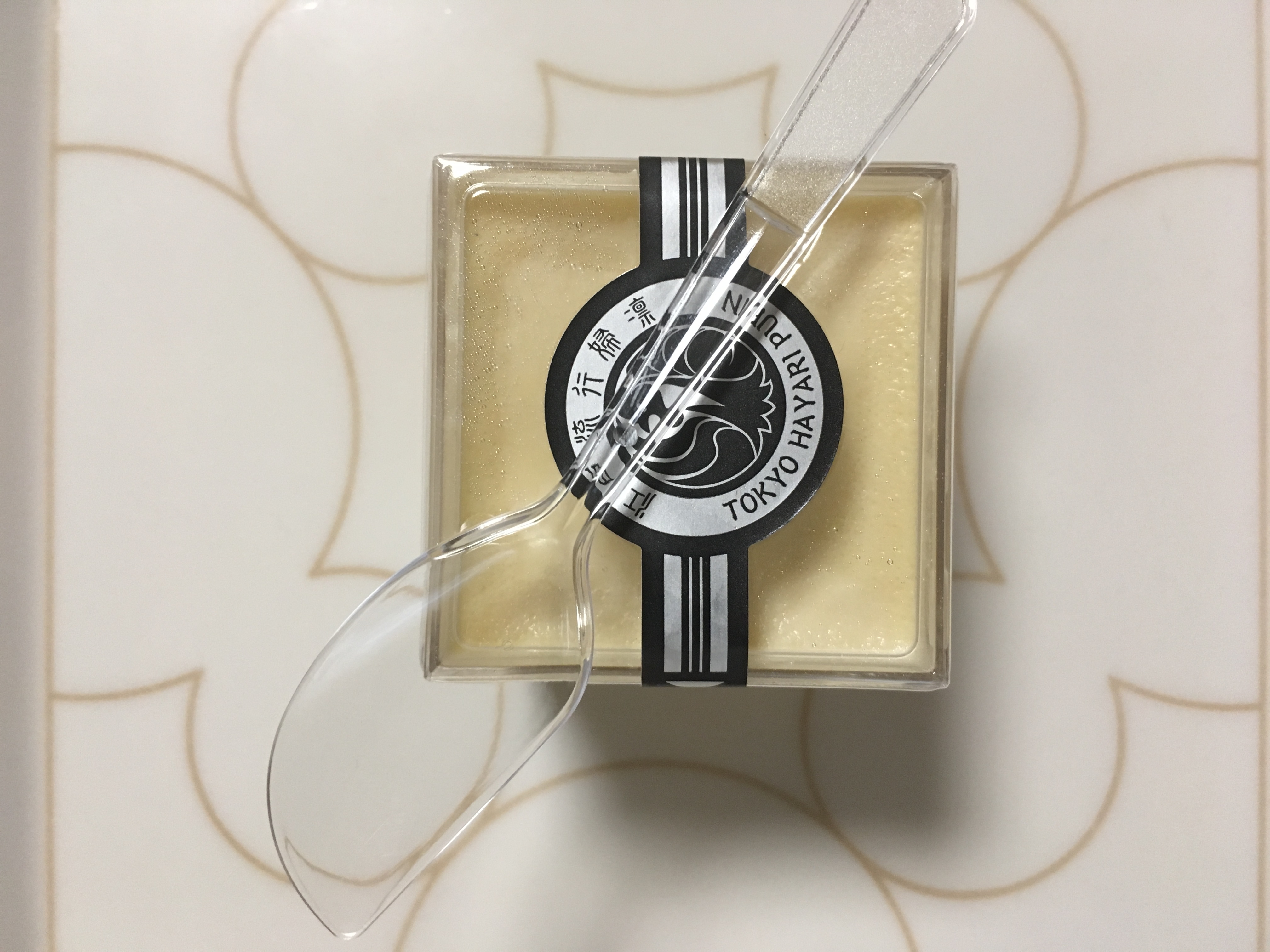 この江戸流行婦凛ならではの四角いプラ容器がとても素敵です。付属のスプーンはリーフ型スプーンと言って、このプリンの四角い容器の特殊な形の角までしっかりすくって食べられる仕様になっています。