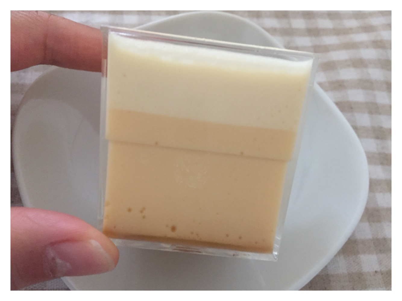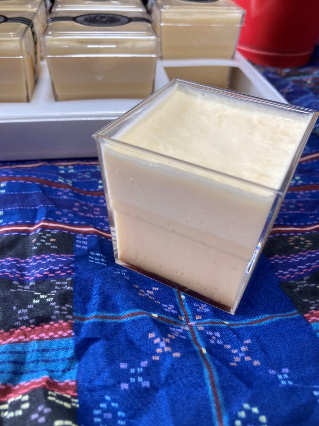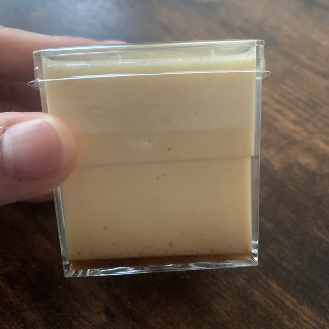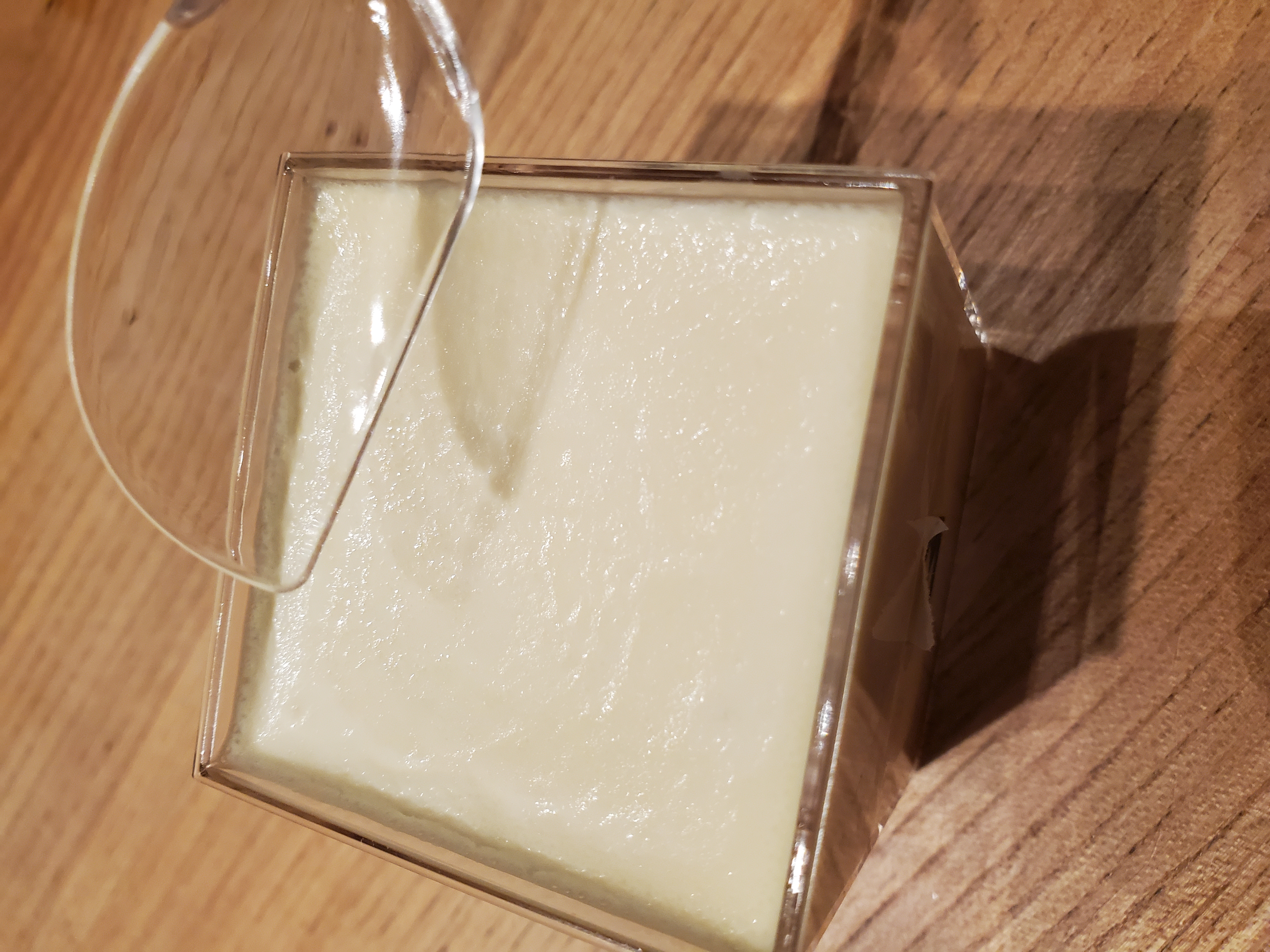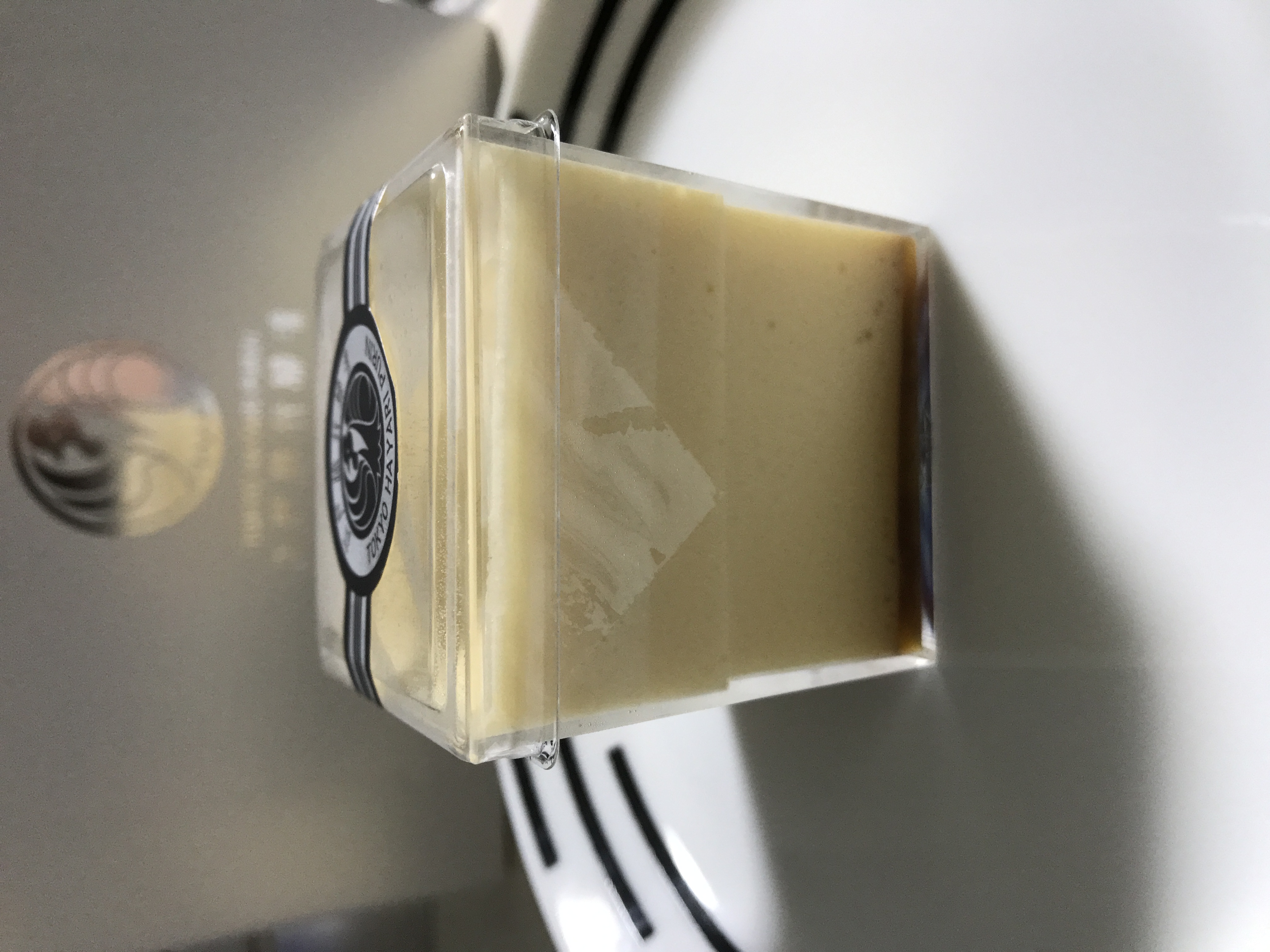 この江戸流行婦凛ならではの四角いプラ容器がとても素敵です。付属のスプーンはリーフ型スプーンと言って、このプリンの四角い容器の特殊な形の角までしっかりすくって食べられる仕様になっています。