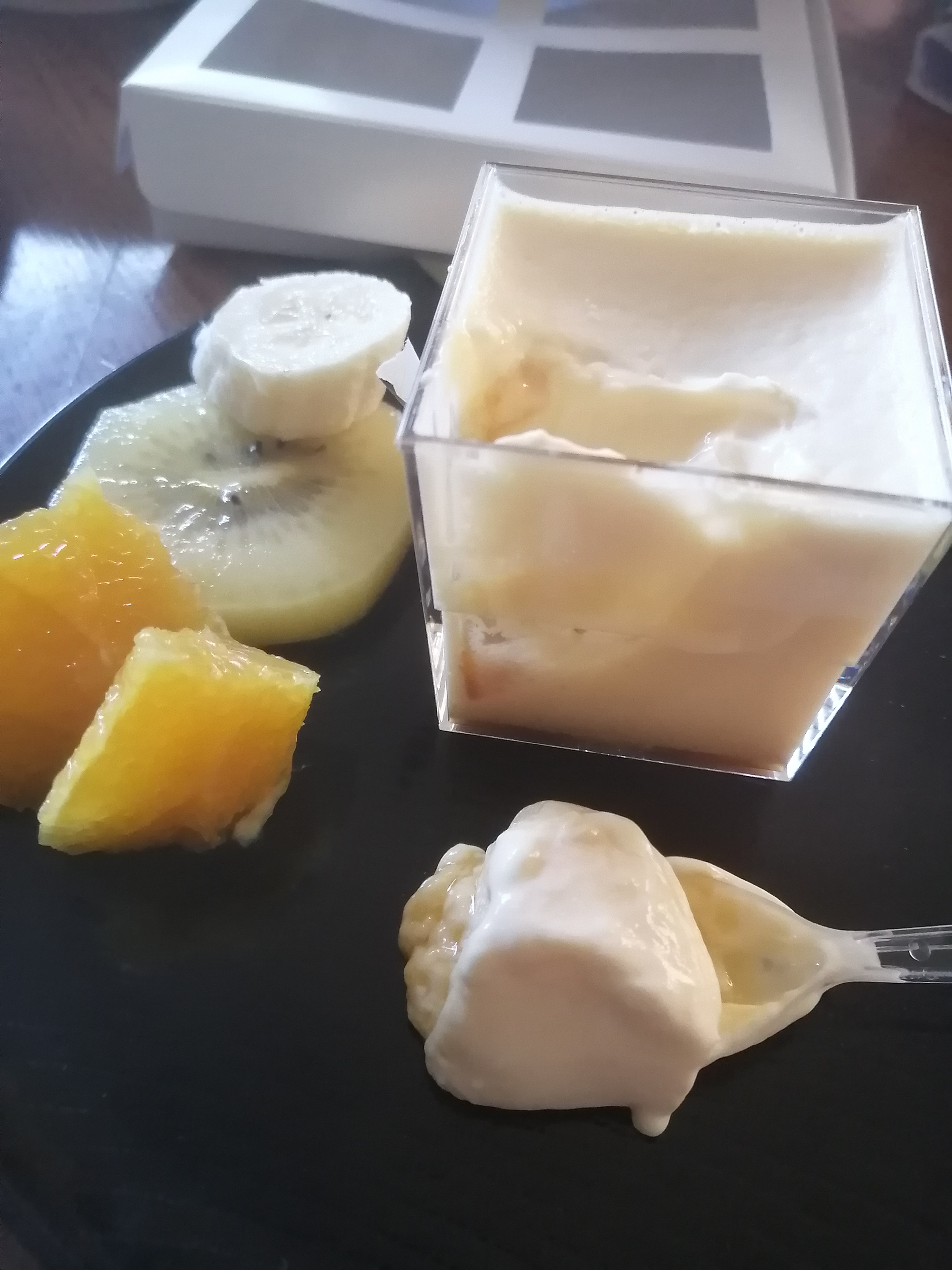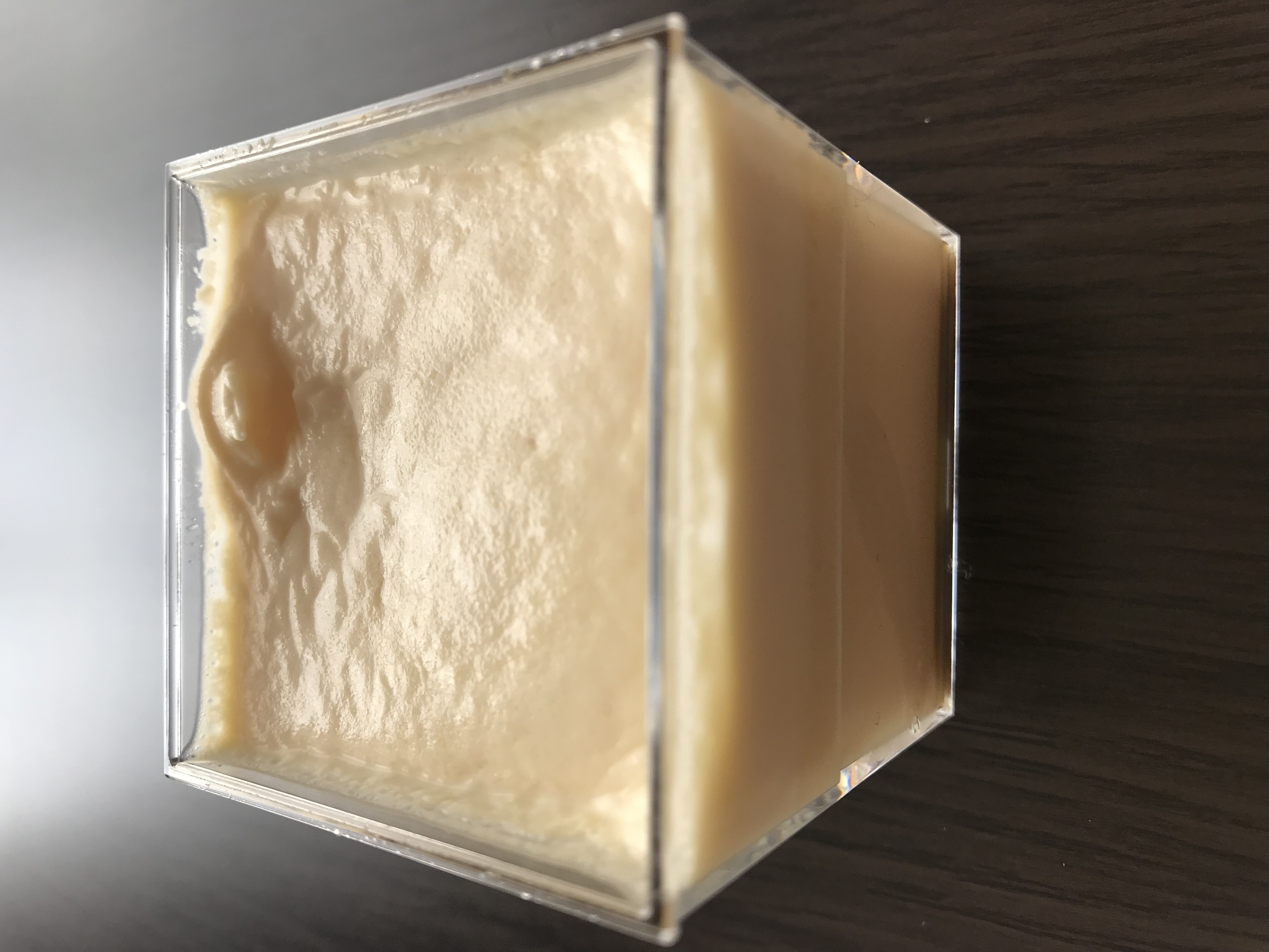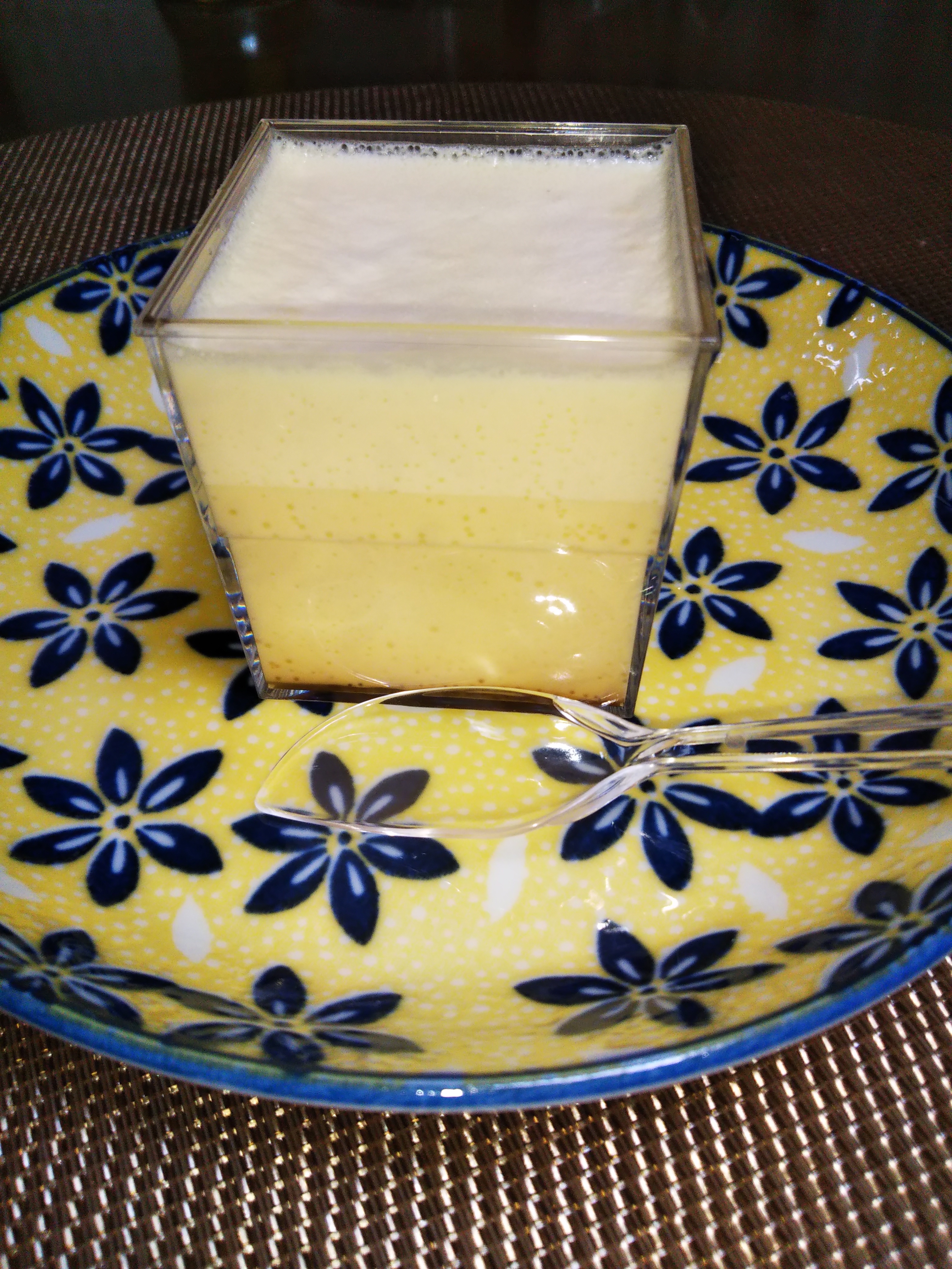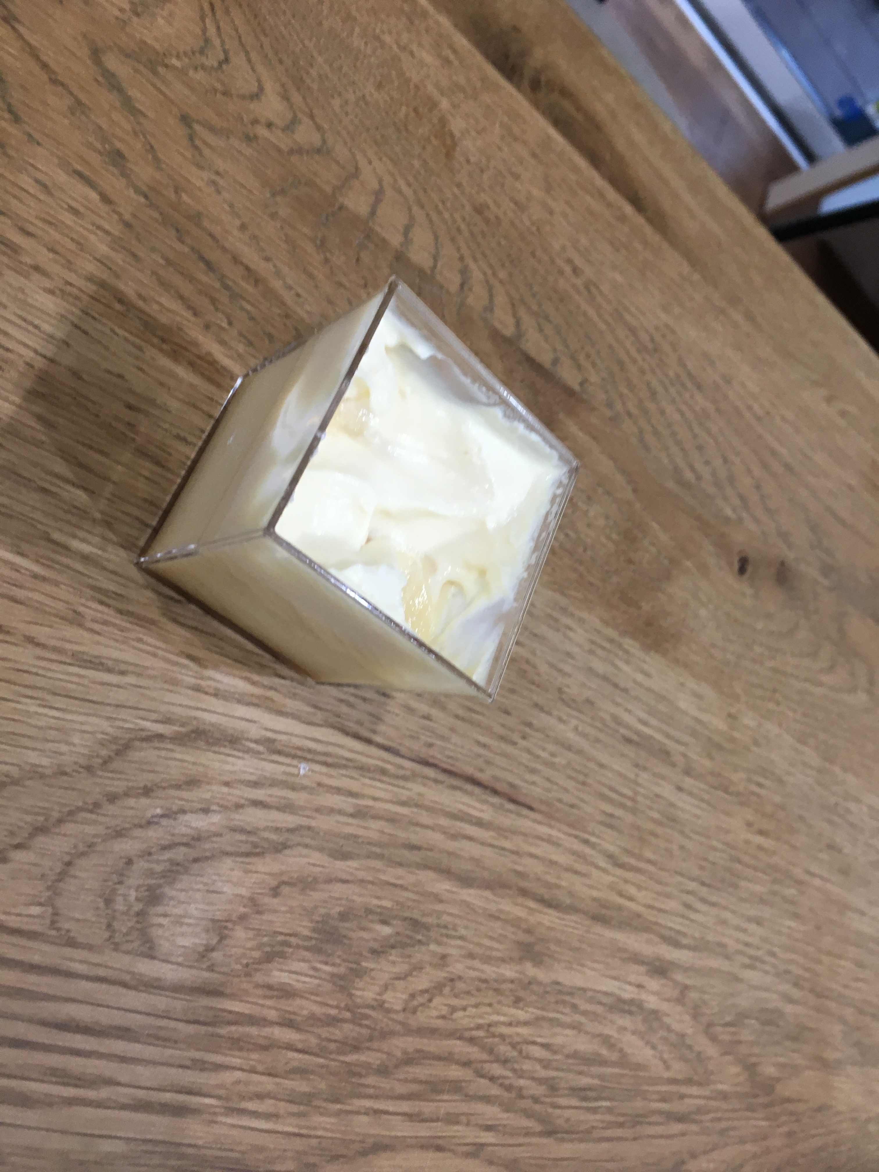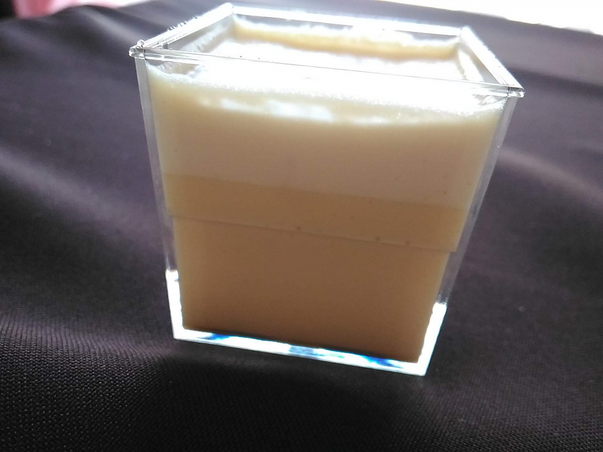 この江戸流行婦凛ならではの四角いプラ容器がとても素敵です。付属のスプーンはリーフ型スプーンと言って、このプリンの四角い容器の特殊な形の角までしっかりすくって食べられる仕様になっています。