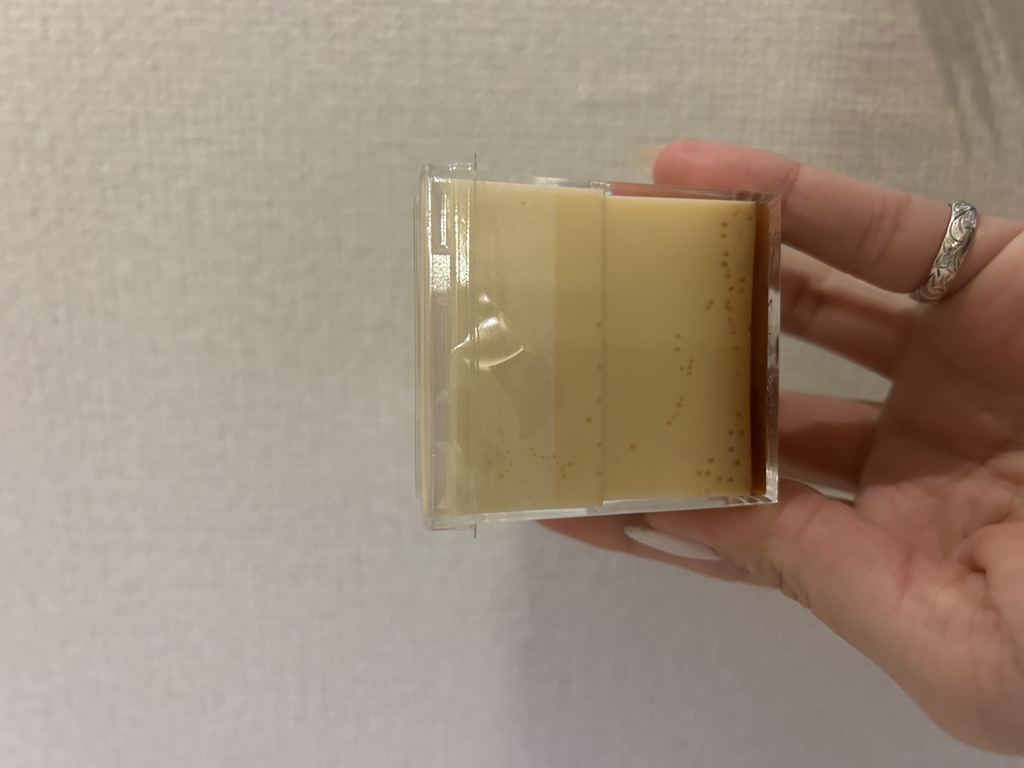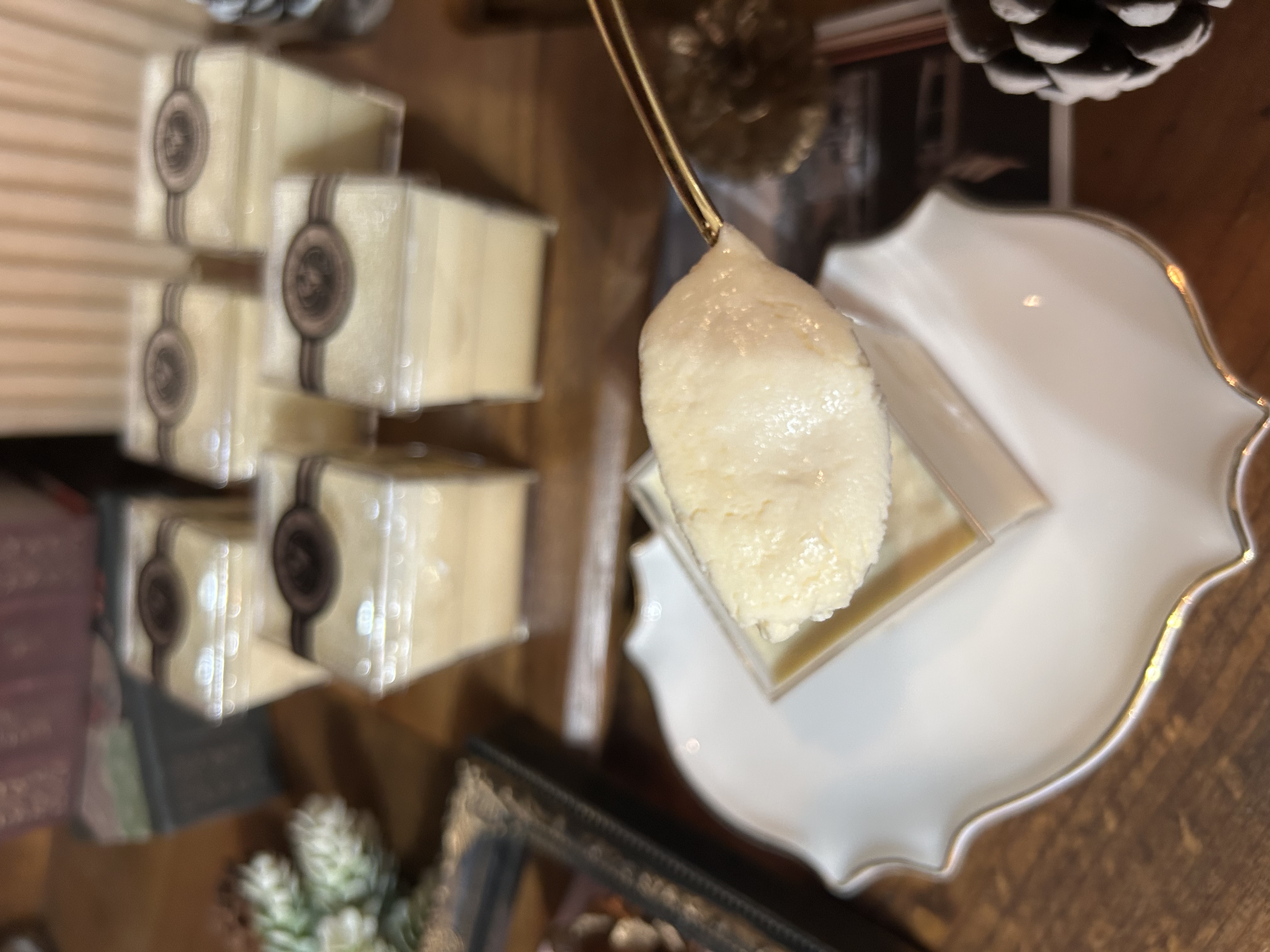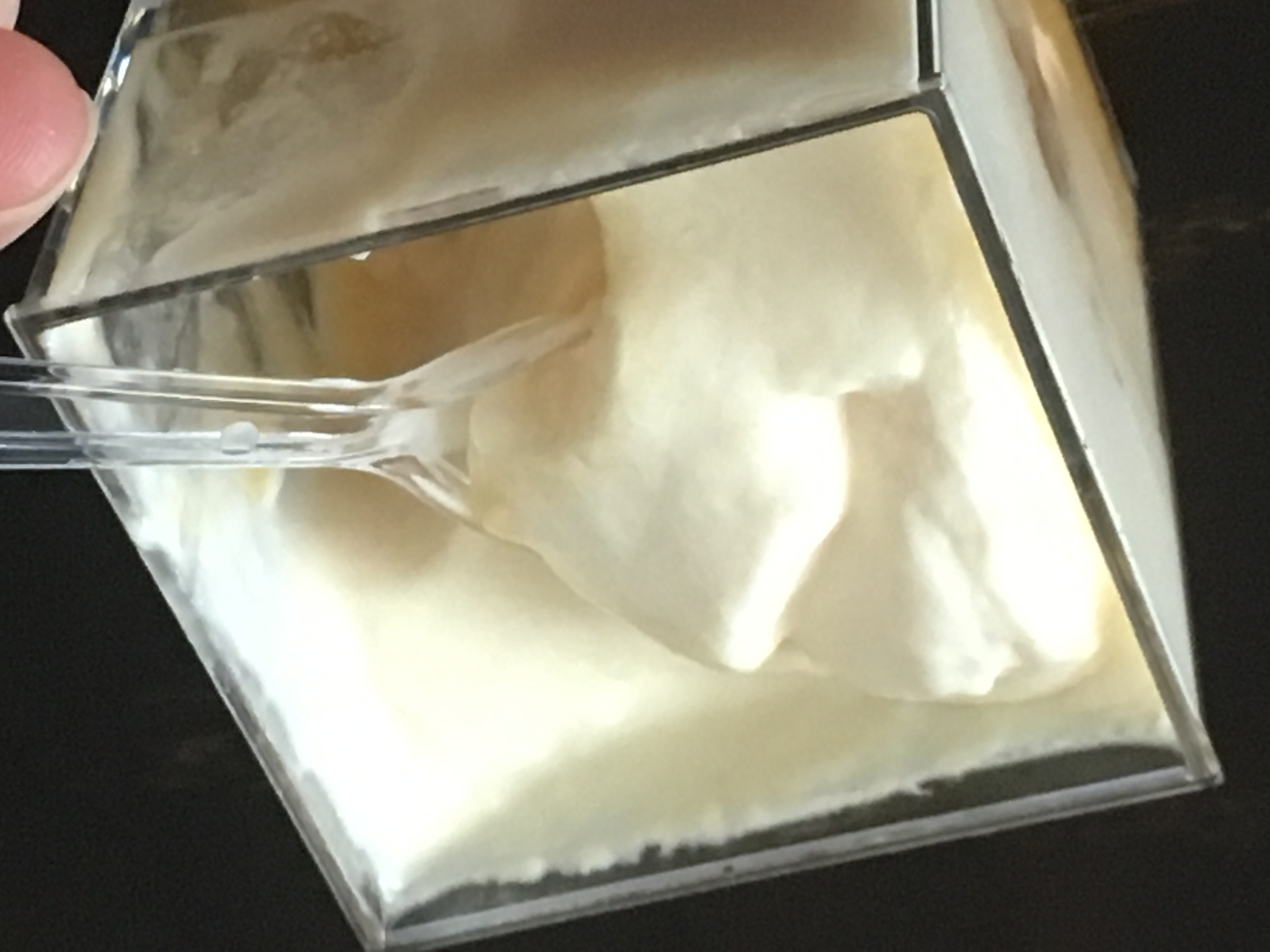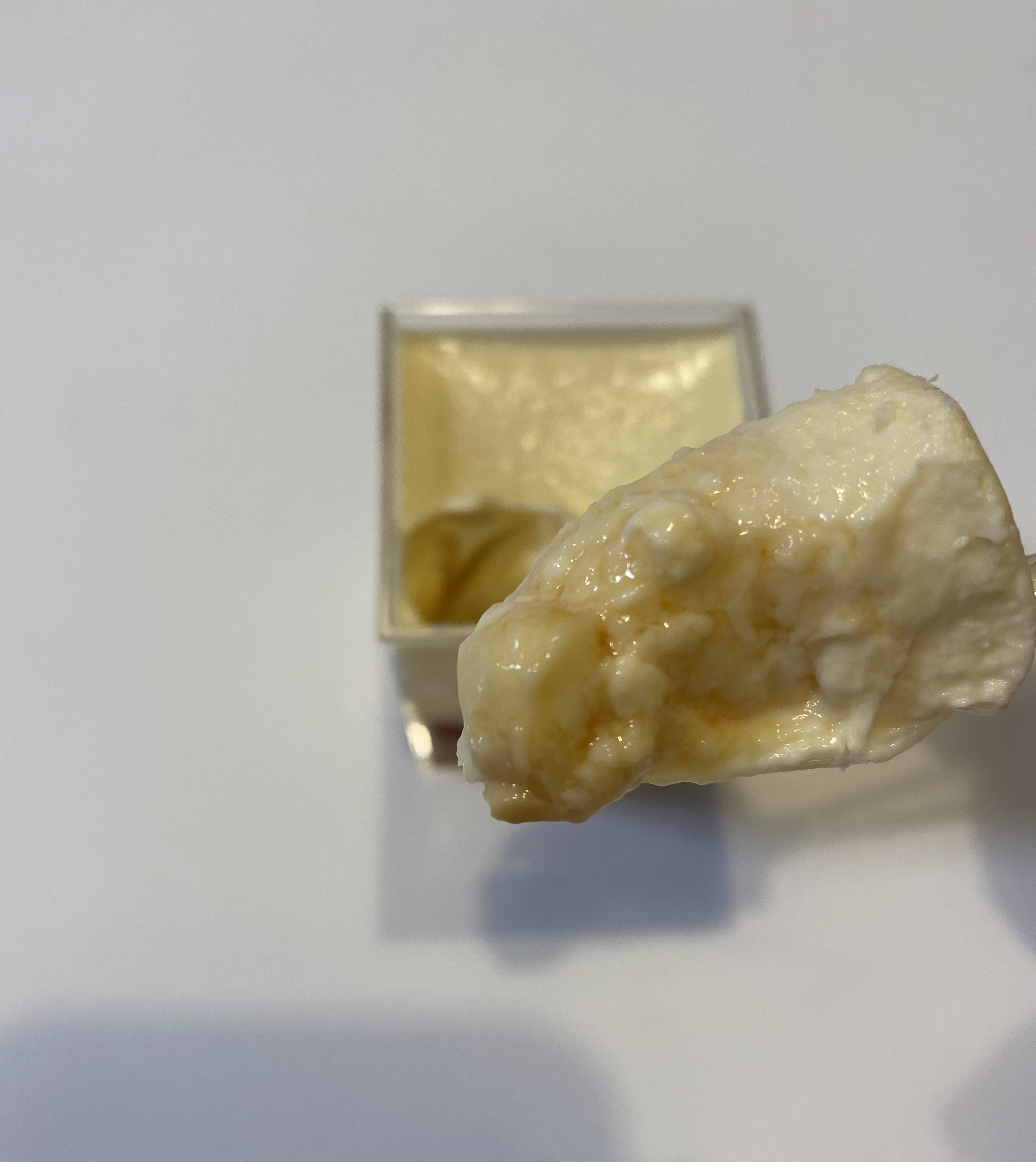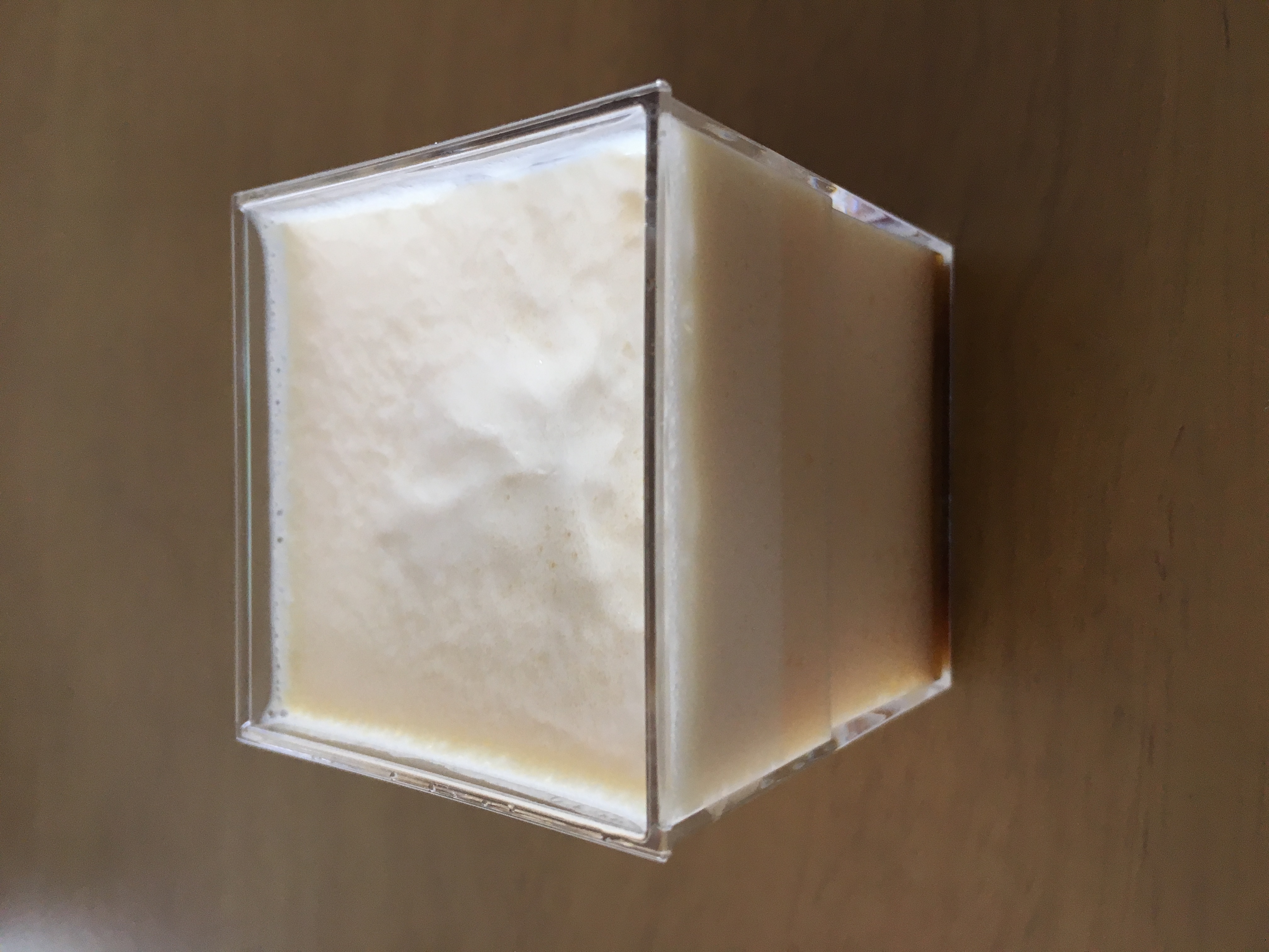 この江戸流行婦凛ならではの四角いプラ容器がとても素敵です。付属のスプーンはリーフ型スプーンと言って、このプリンの四角い容器の特殊な形の角までしっかりすくって食べられる仕様になっています。