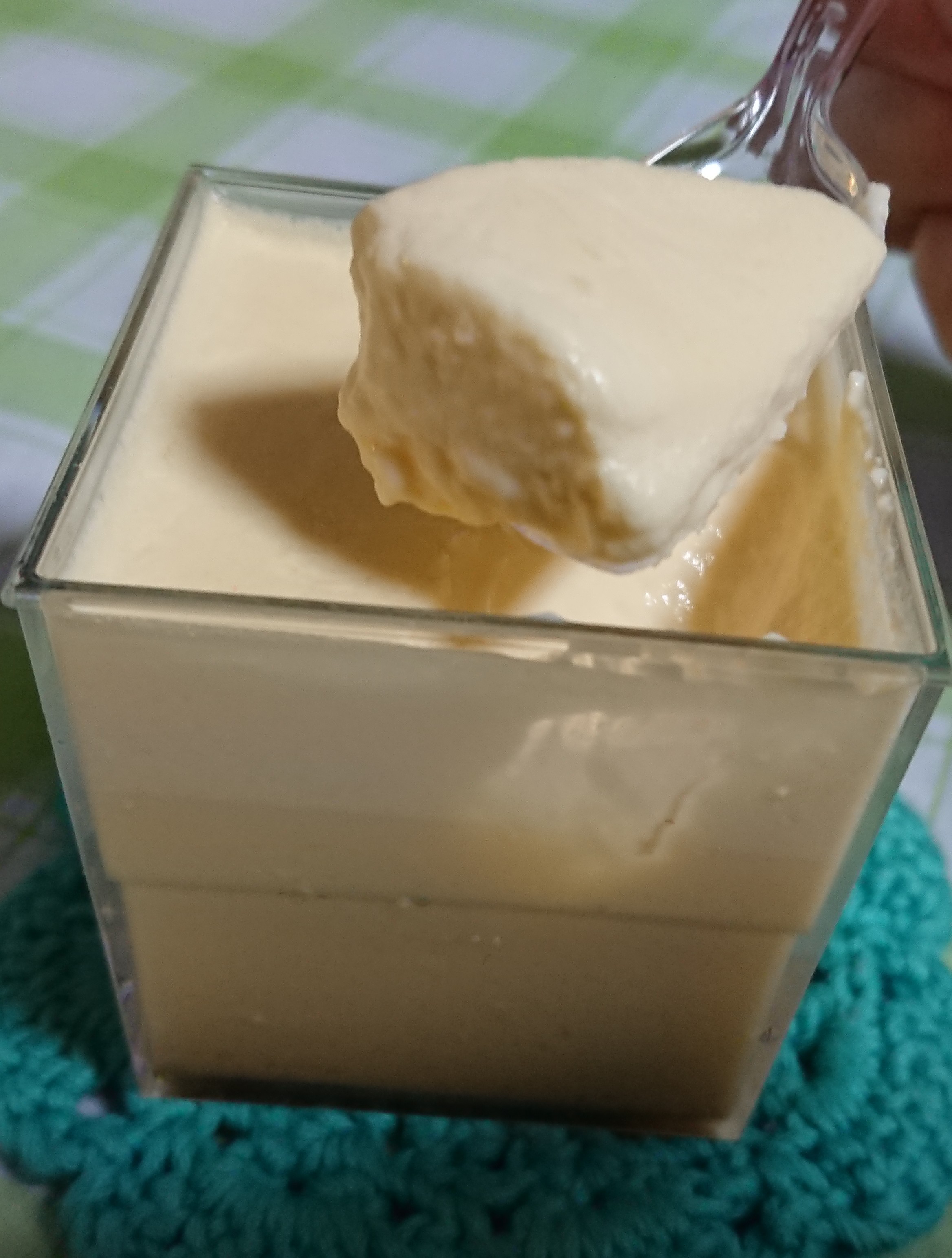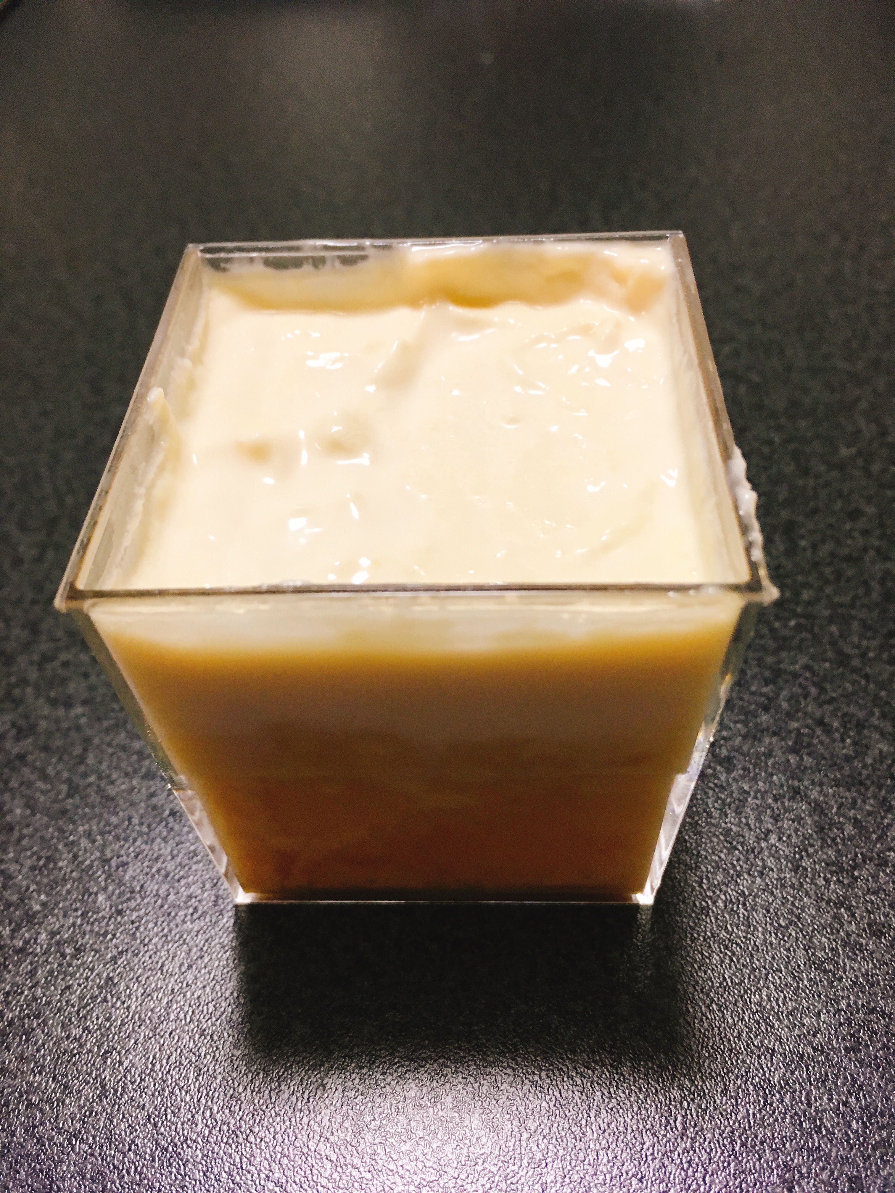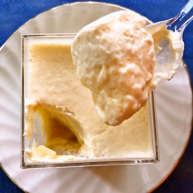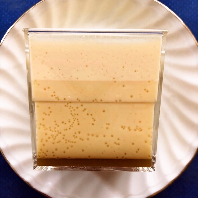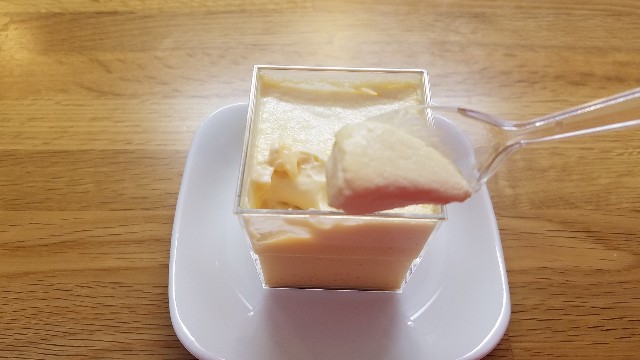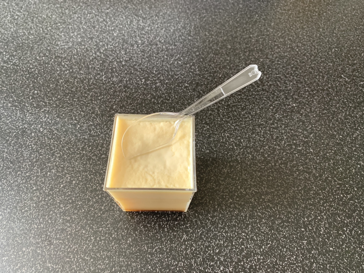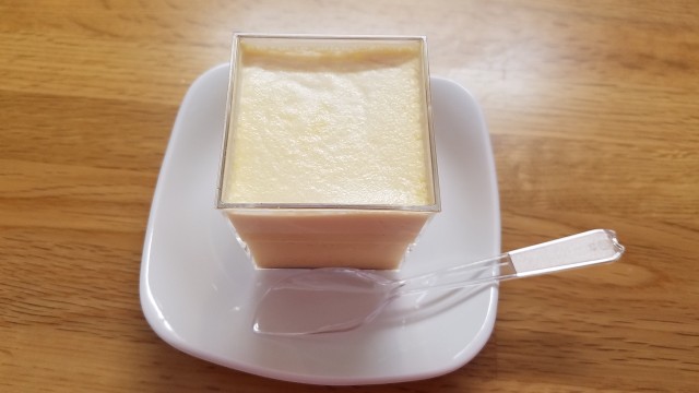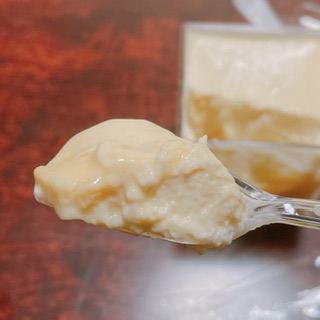 では早速食べてみましょう。プリンの上層部は濃厚でコク深く滑らかなトロリとした生クリームの風合いを楽しめます。下層部は卵の風味を強く感じるぷりんぷりんの蒸しプリンの食感です。そしてサラッとしたカラメルのほんのりとした苦味がアクセントとなり、全体を一つに取り纏めています。