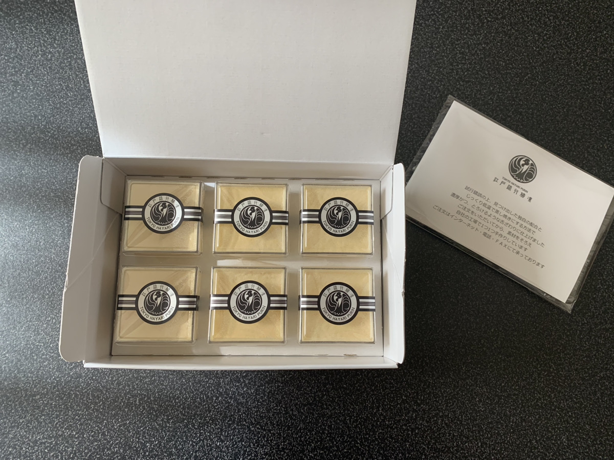 早速開封してみましょう。外装は白いとてもシンプルな箱入りです。しかし銀色文字で江戸流行婦凛とロゴが入っている所がこ洒落ています。さすが洗練された都会感のあるしつらえです。