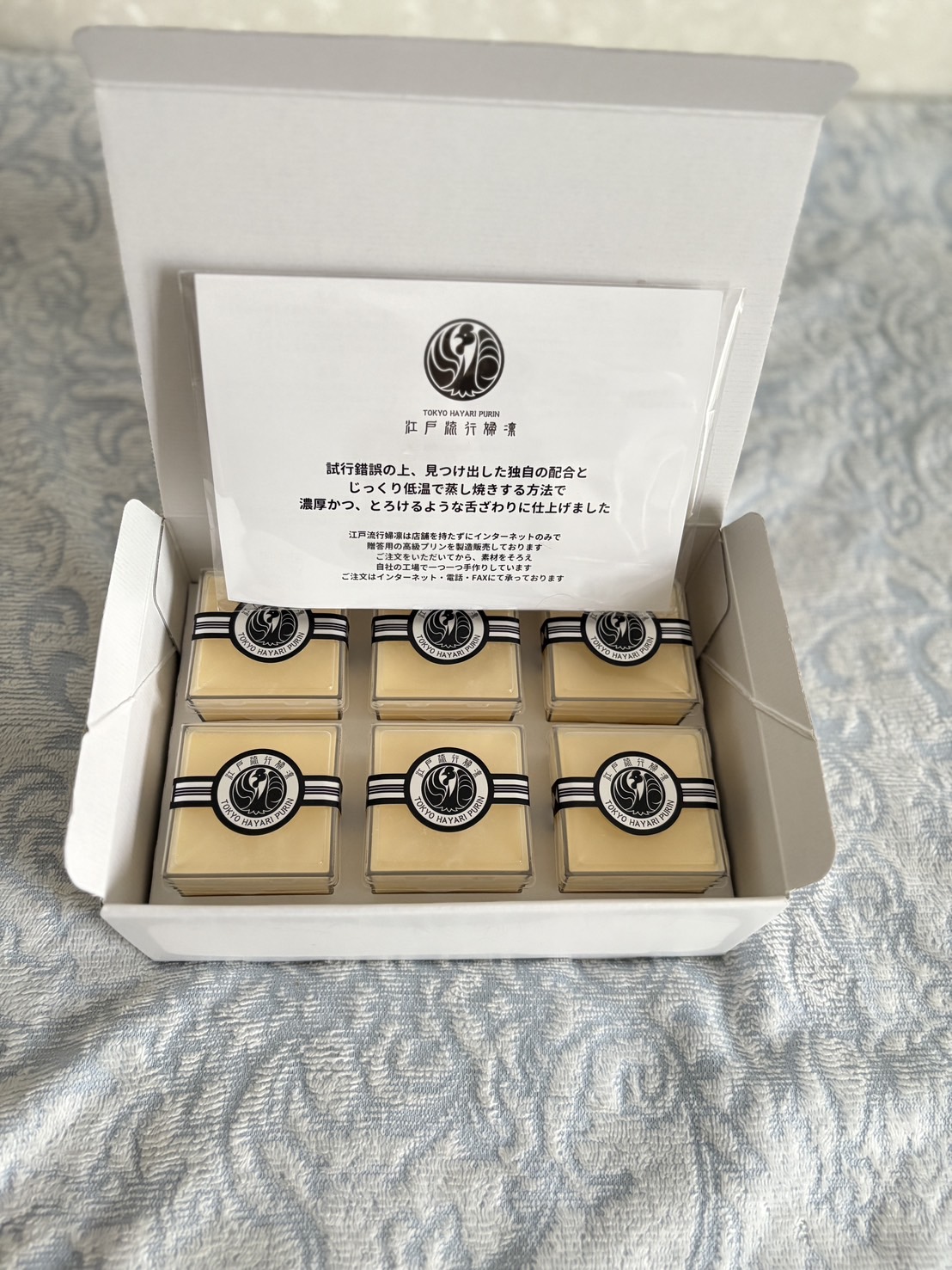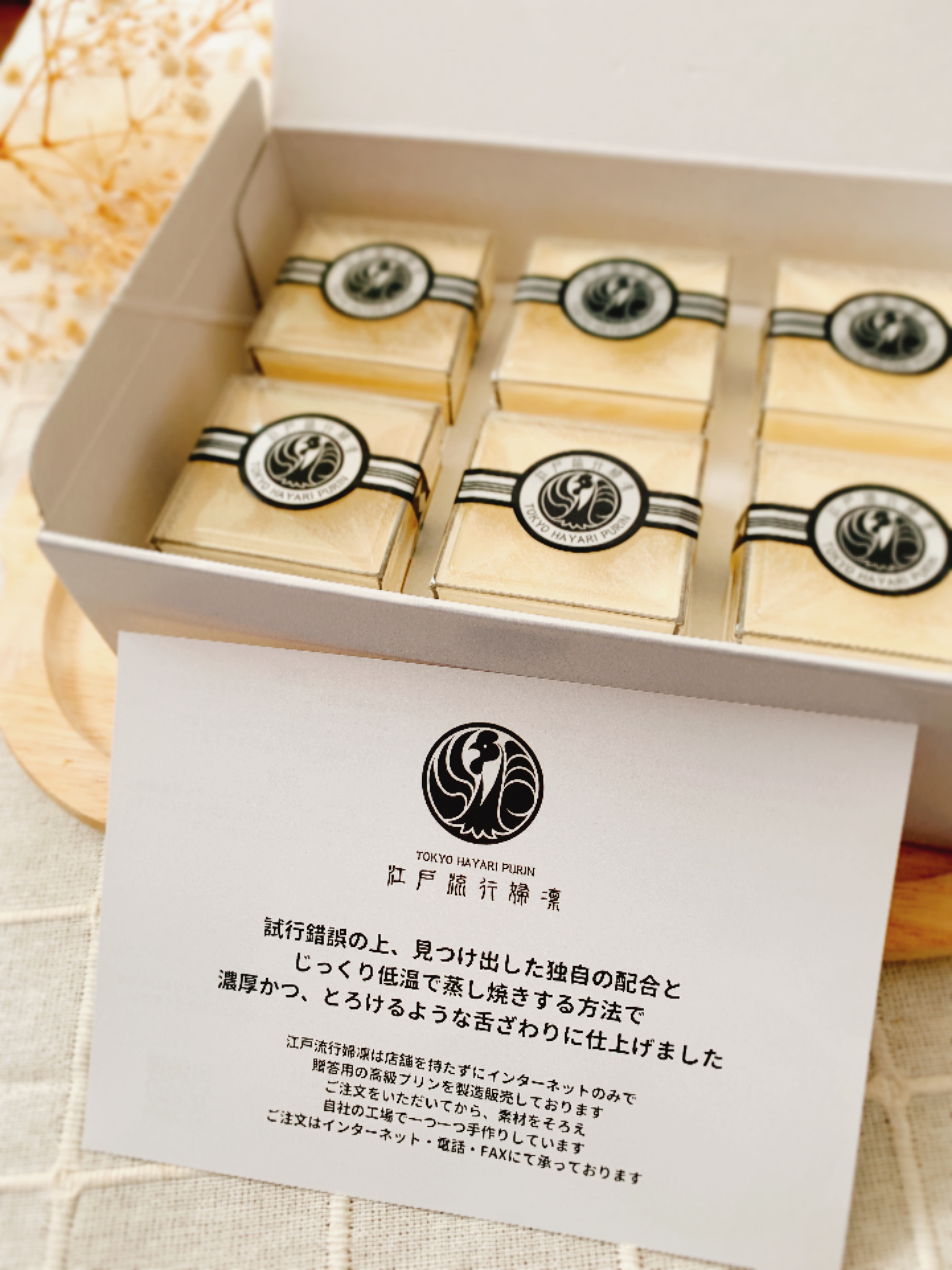 大切な人への手土産は勿論、自分や家族へのご褒美にも絶対に喜ばれる、とても特別感のある江戸流行婦凛です。まだ江戸流行婦凛を知らない人や食べた事のない人達にも是非食べてほしいと思う絶品のプリンでした。とても美味しく頂きました、ご馳走様でした。