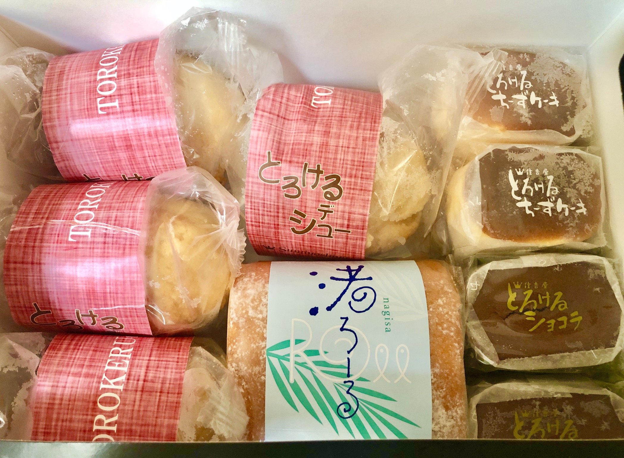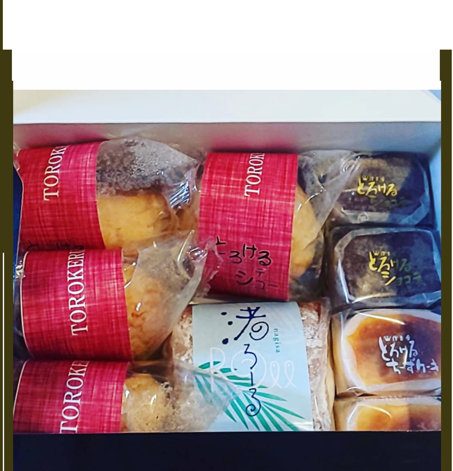 「とろけるショコラ」は、低温で丁寧に蒸し焼きされているため、ぎゅっと濃縮された深い風味が楽しめます。とろりとした食感ながら重すぎず、甘さとビター感のバランスが良く、チョコレートが好きな方には特に喜ばれる味わいだと思います。「渚ろーる」はふわふわのスポンジに、丹那ミルクの純生クリームをたっぷり巻いたやさしい味わいで、幅広い世代に好まれるロールケーキです。