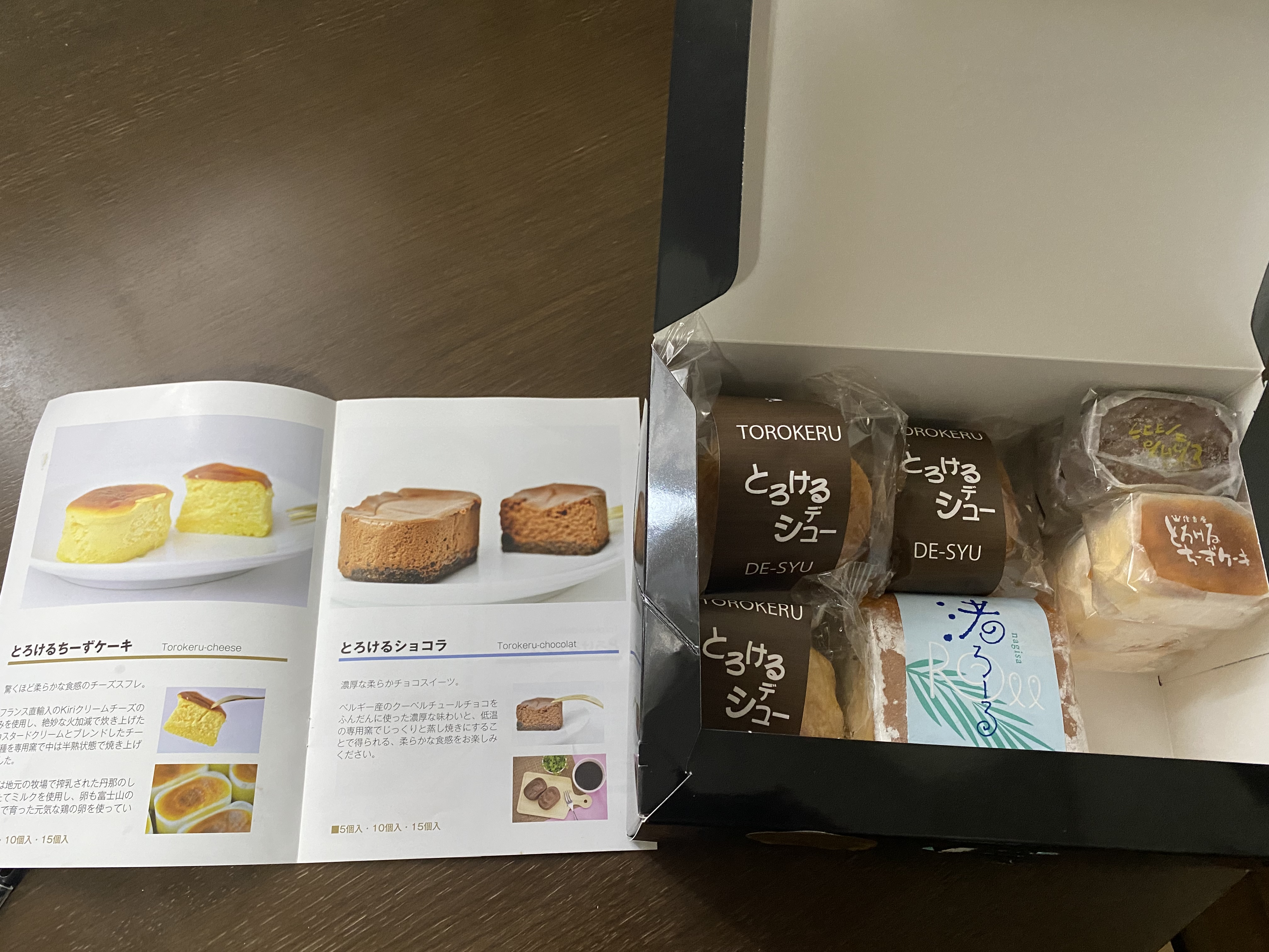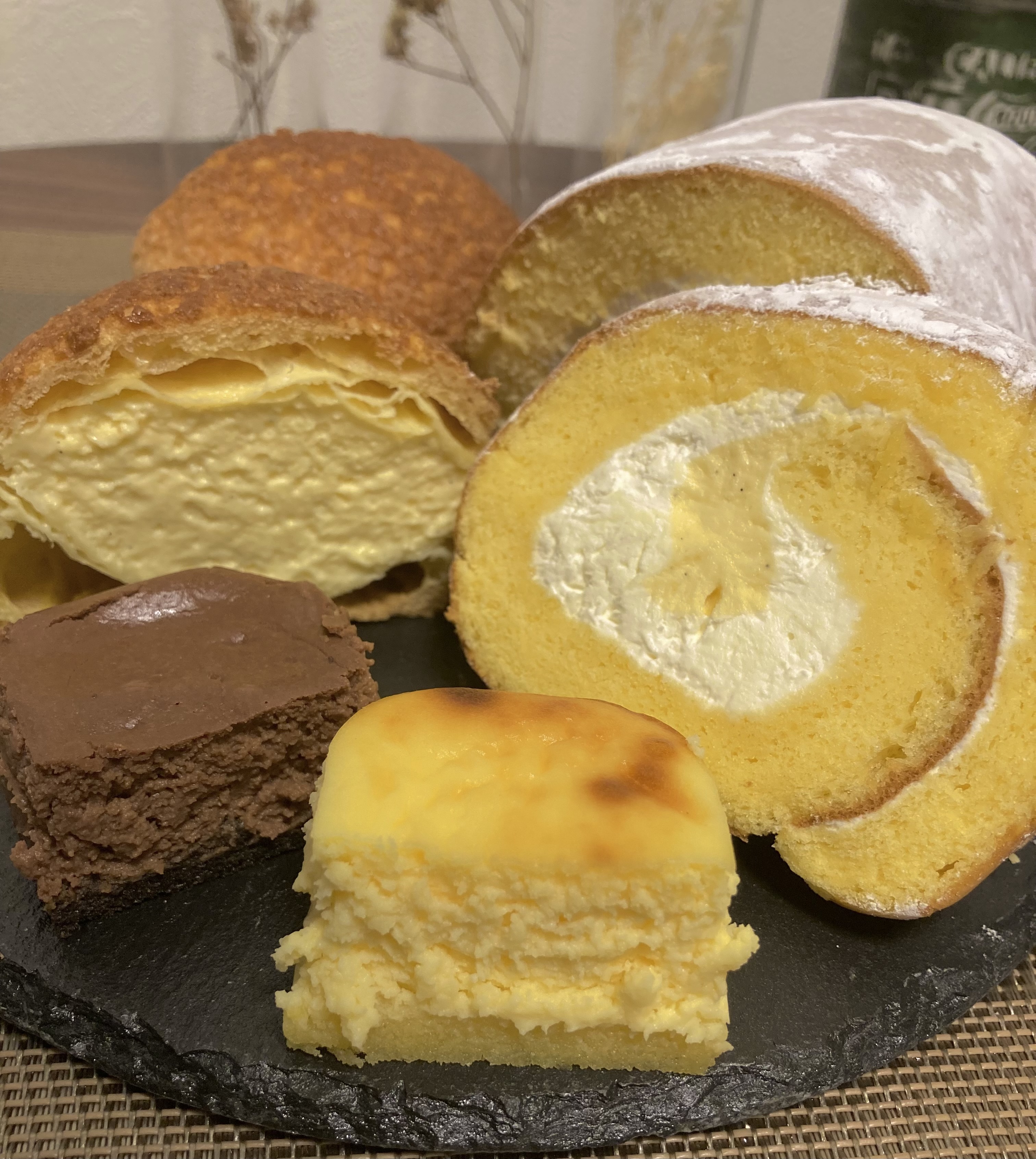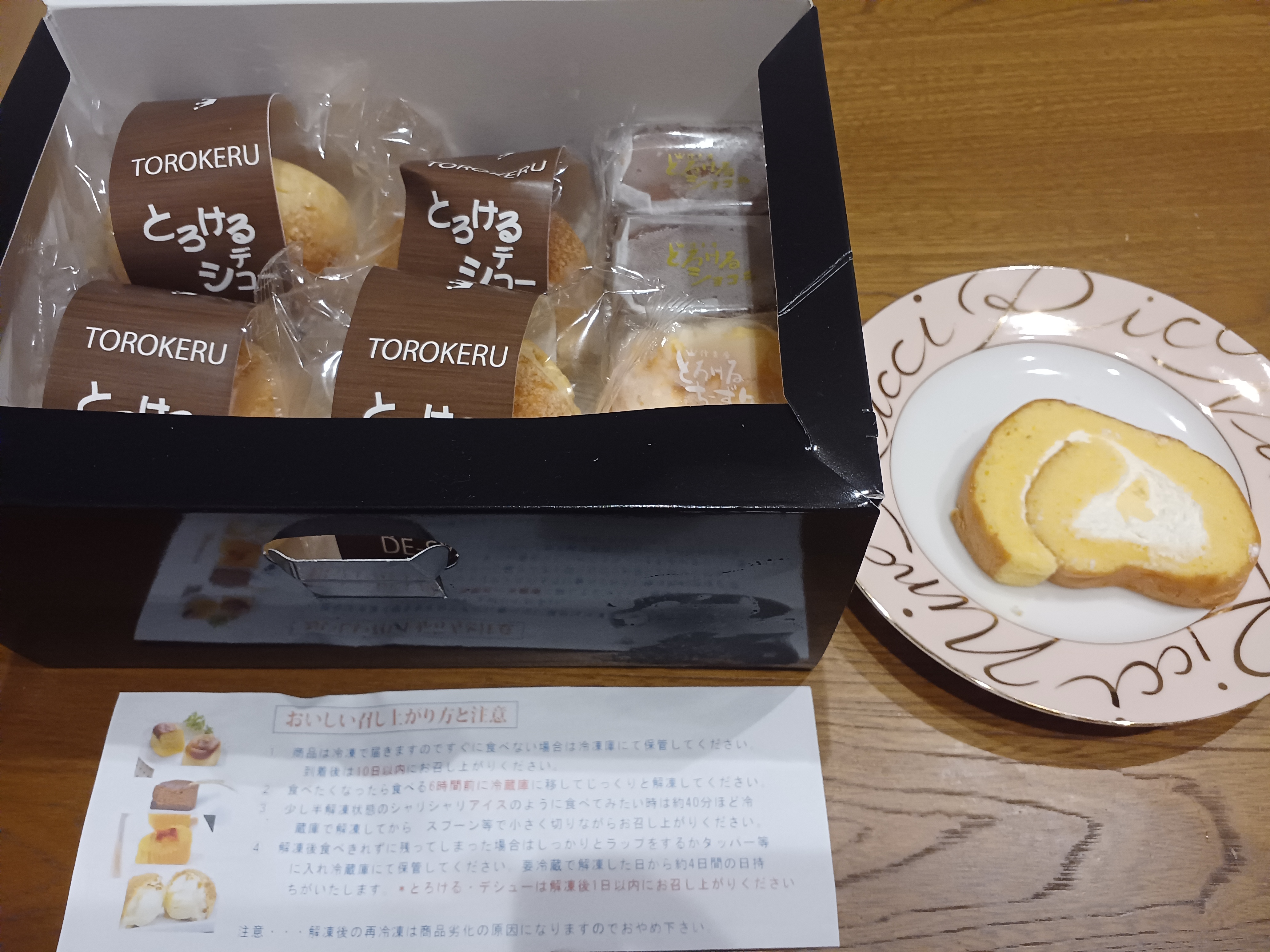 看板商品の「とろけるチーズケーキ」は、ふんわり軽やかな口当たりと濃厚なコクのバランスが絶妙で、甘さ控えめの上品な味わい。素材の良さが引き立ち、最後まで飽きずに楽しめました。「とろける・デ・シュー」はサクサクのシュー生地にたっぷりのクリームが詰まっており、クリームのなめらかさと香ばしい生地の相性が抜群。ボリューム満点で、満足感の高い一品です。