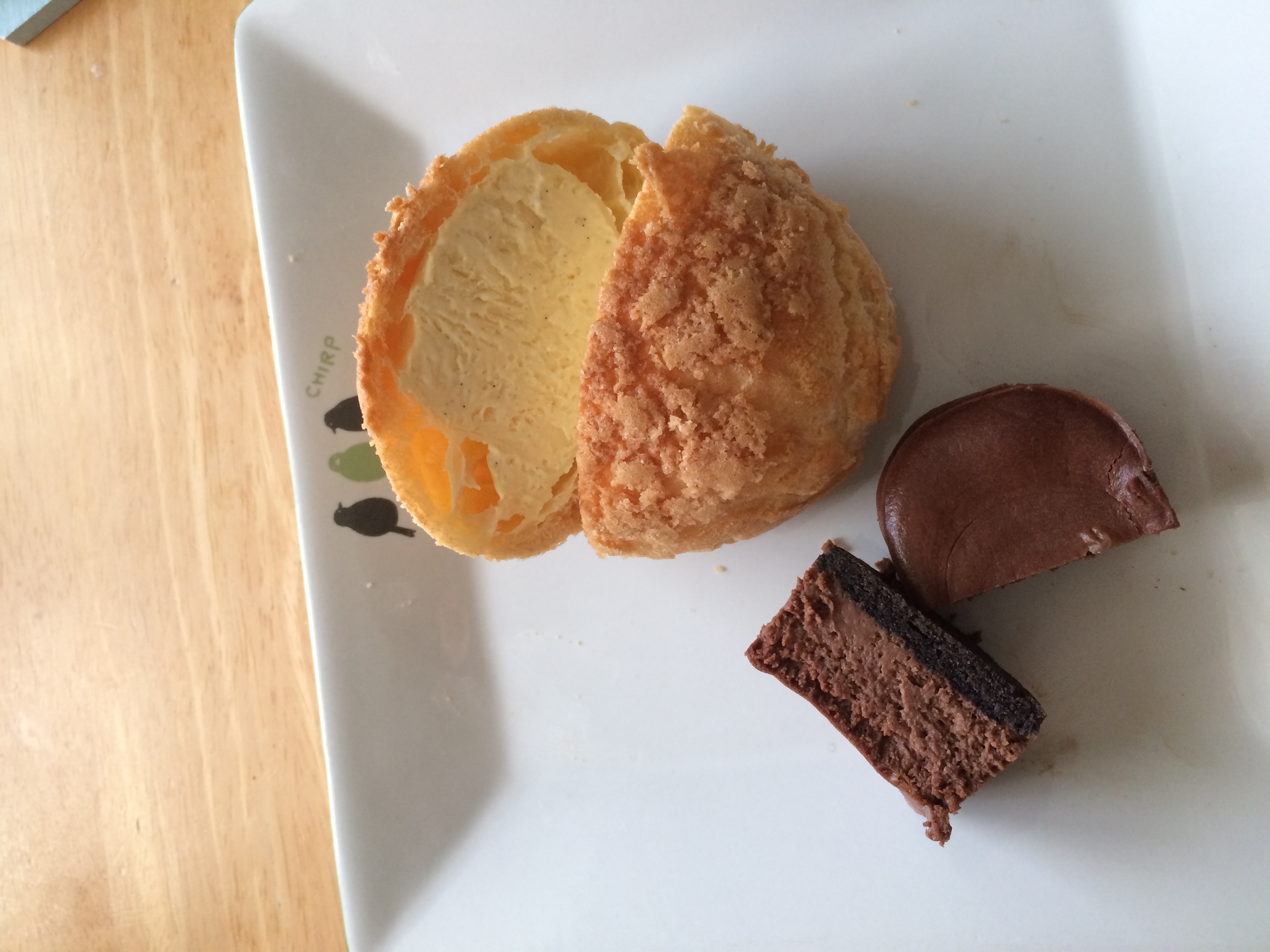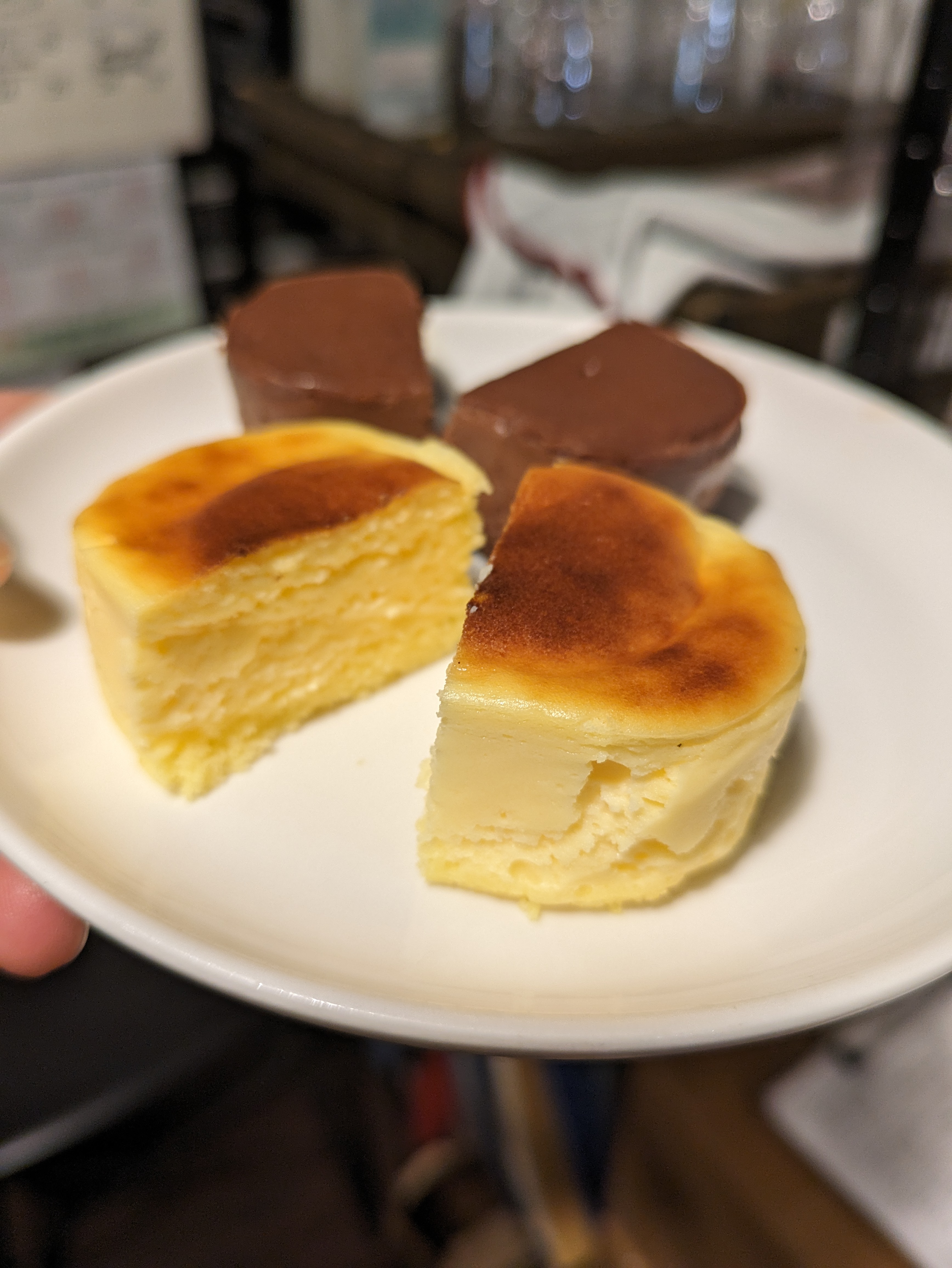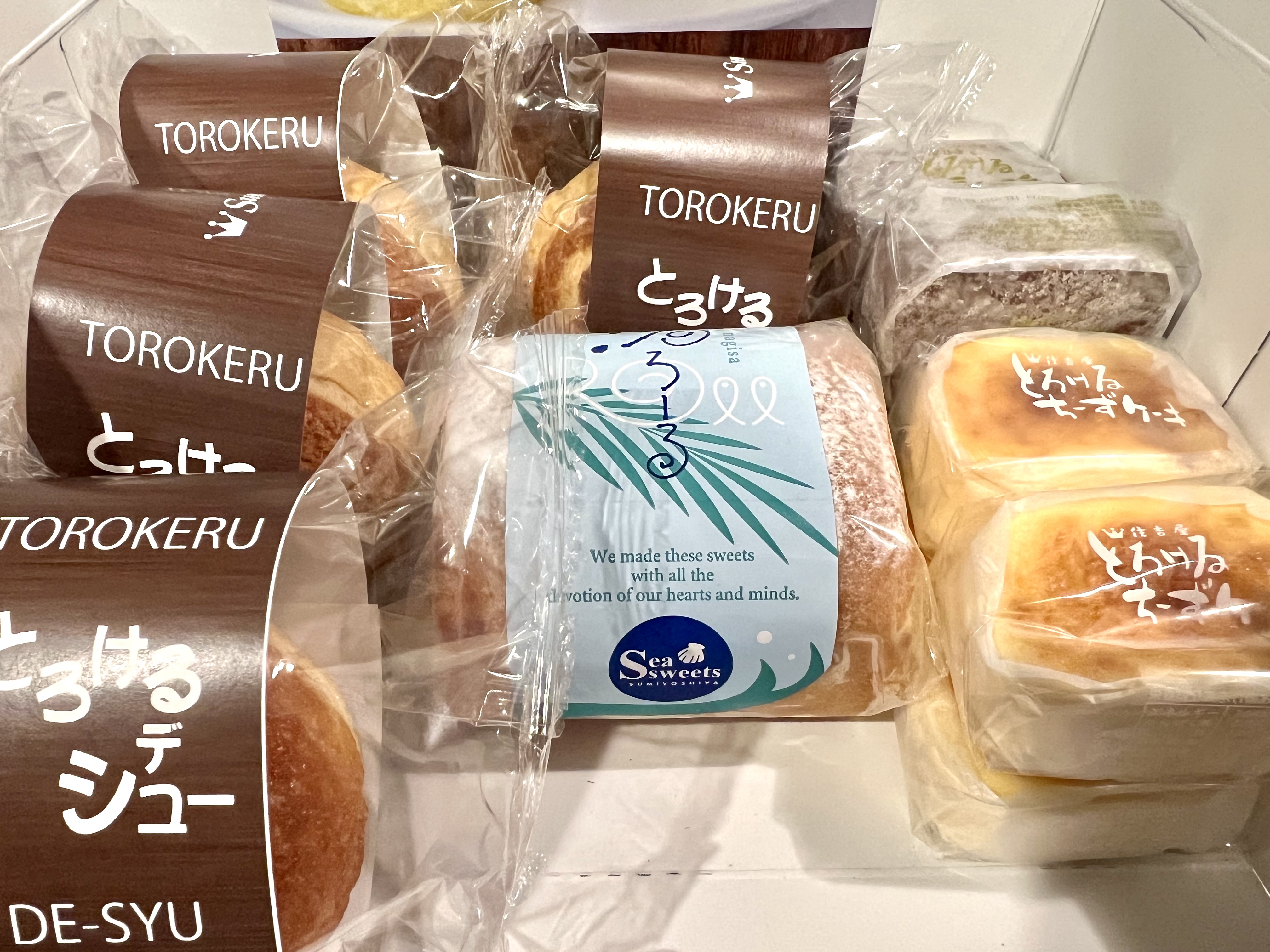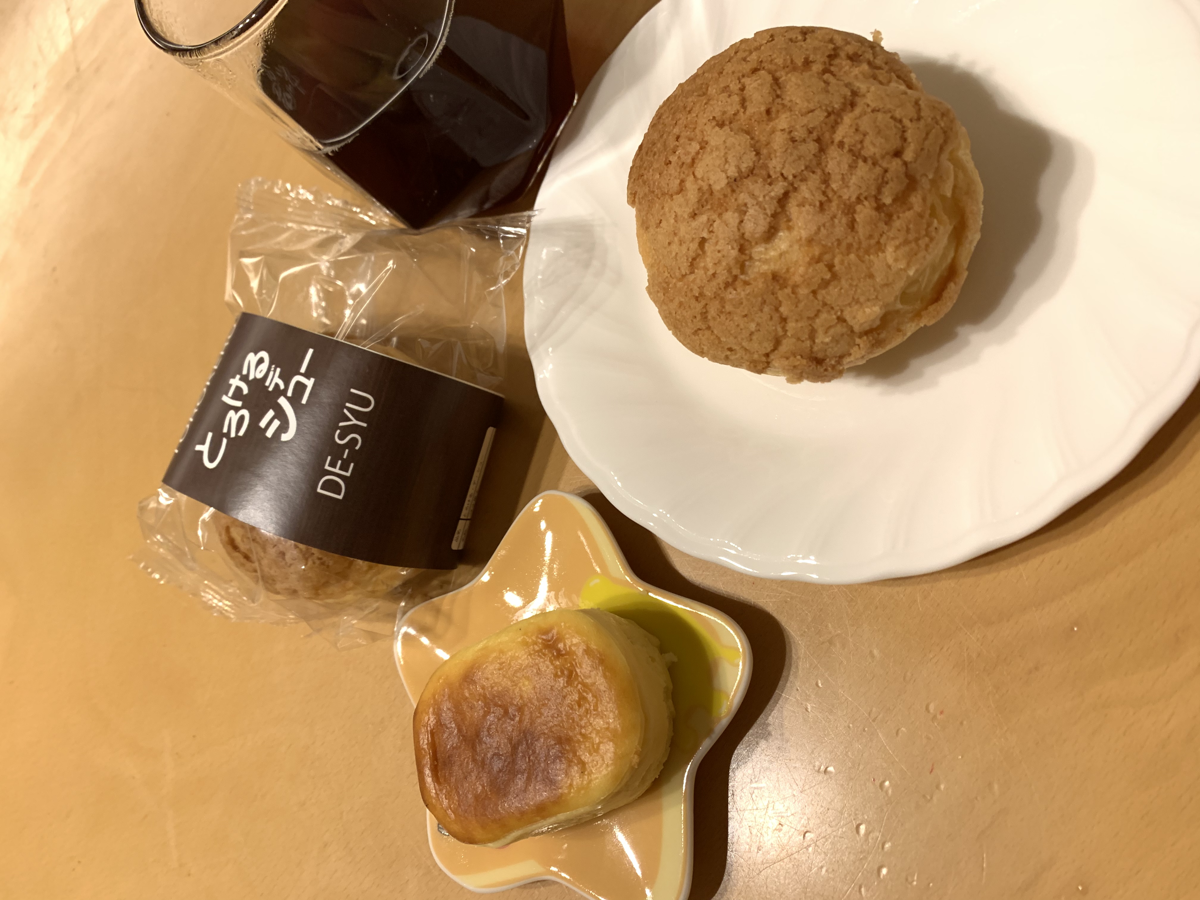 看板商品の「とろけるチーズケーキ」は、ふんわり軽やかな口当たりと濃厚なコクのバランスが絶妙で、甘さ控えめの上品な味わい。素材の良さが引き立ち、最後まで飽きずに楽しめました。「とろける・デ・シュー」はサクサクのシュー生地にたっぷりのクリームが詰まっており、クリームのなめらかさと香ばしい生地の相性が抜群。ボリューム満点で、満足感の高い一品です。