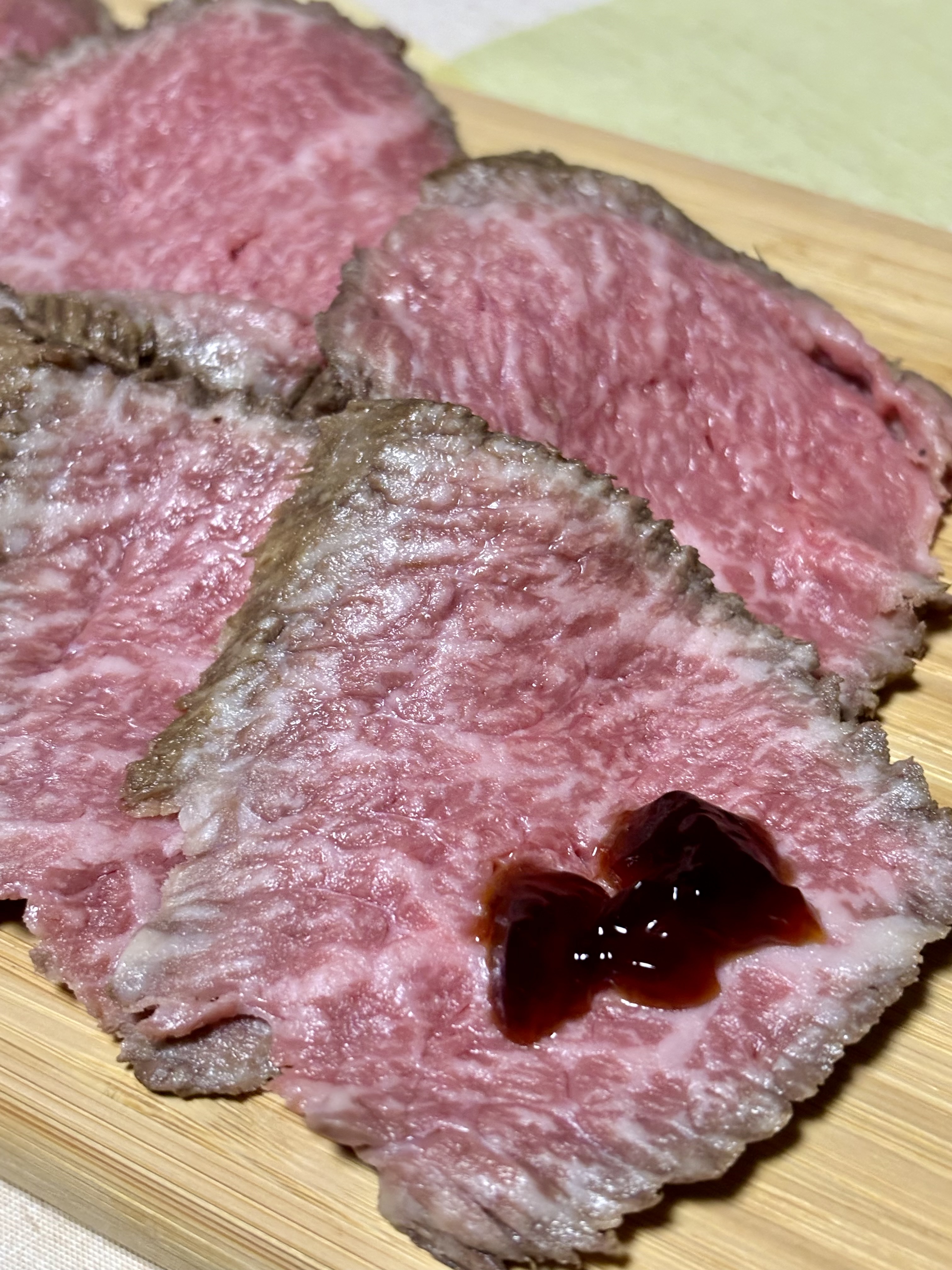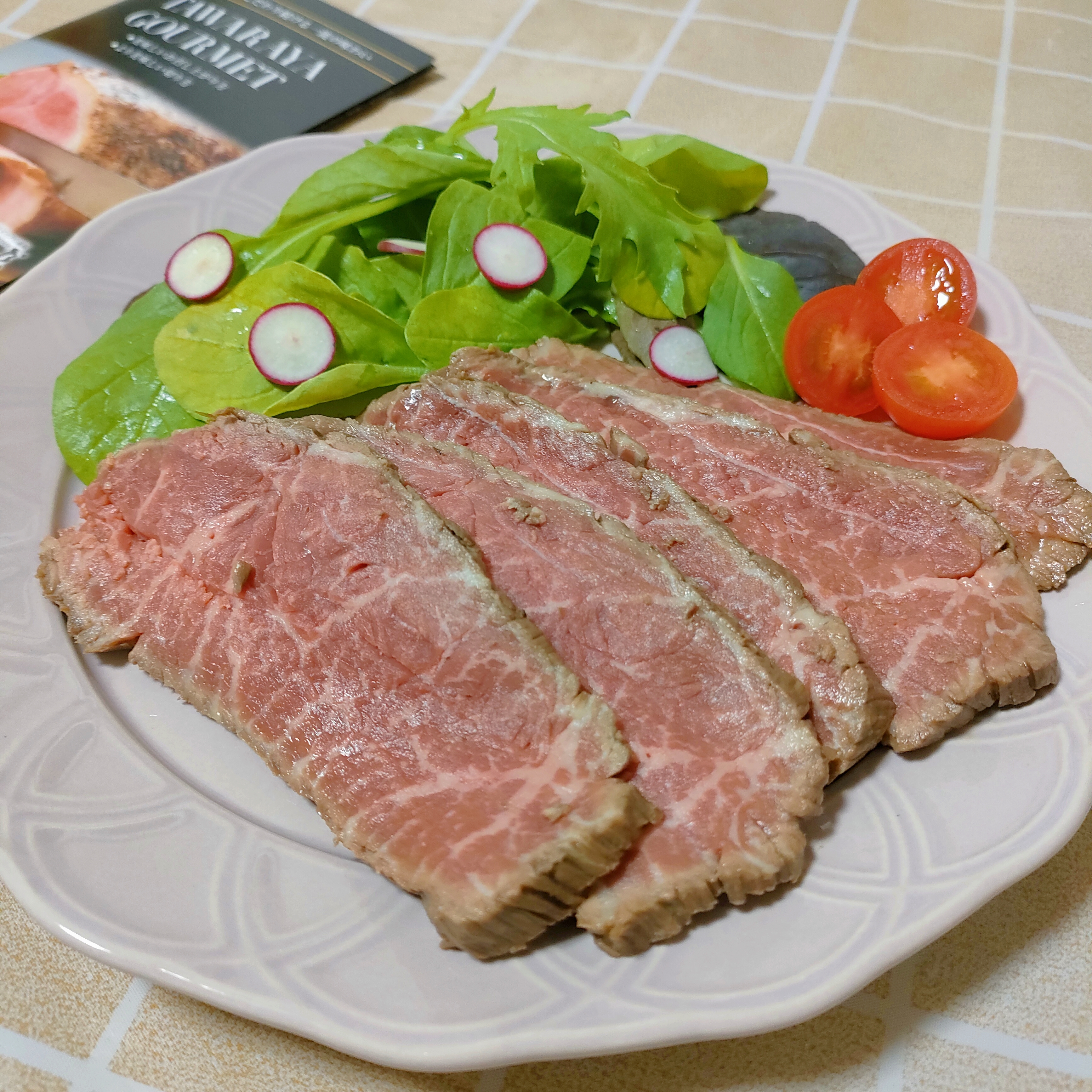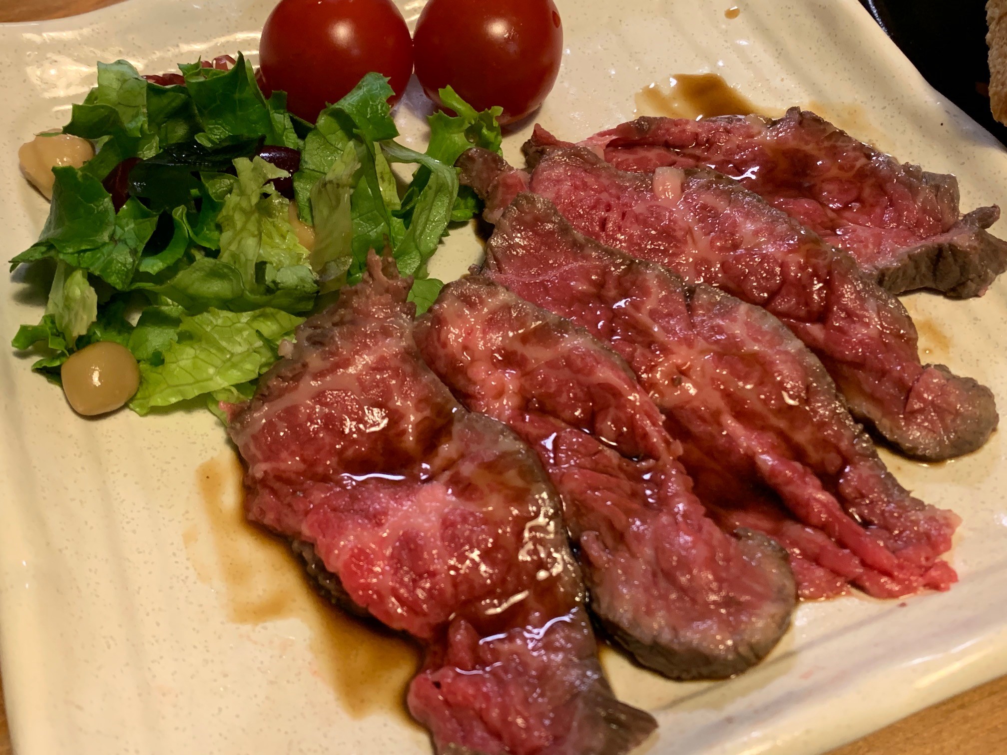 濃厚で深みのあるこれぞローストビーフと言った味わいです。希少部位イチボを使ったローストビーフということですが脂肪はそれほど多くなくあっさりしていてしっかりした歯ごたえ、幸福感が充満してきます。