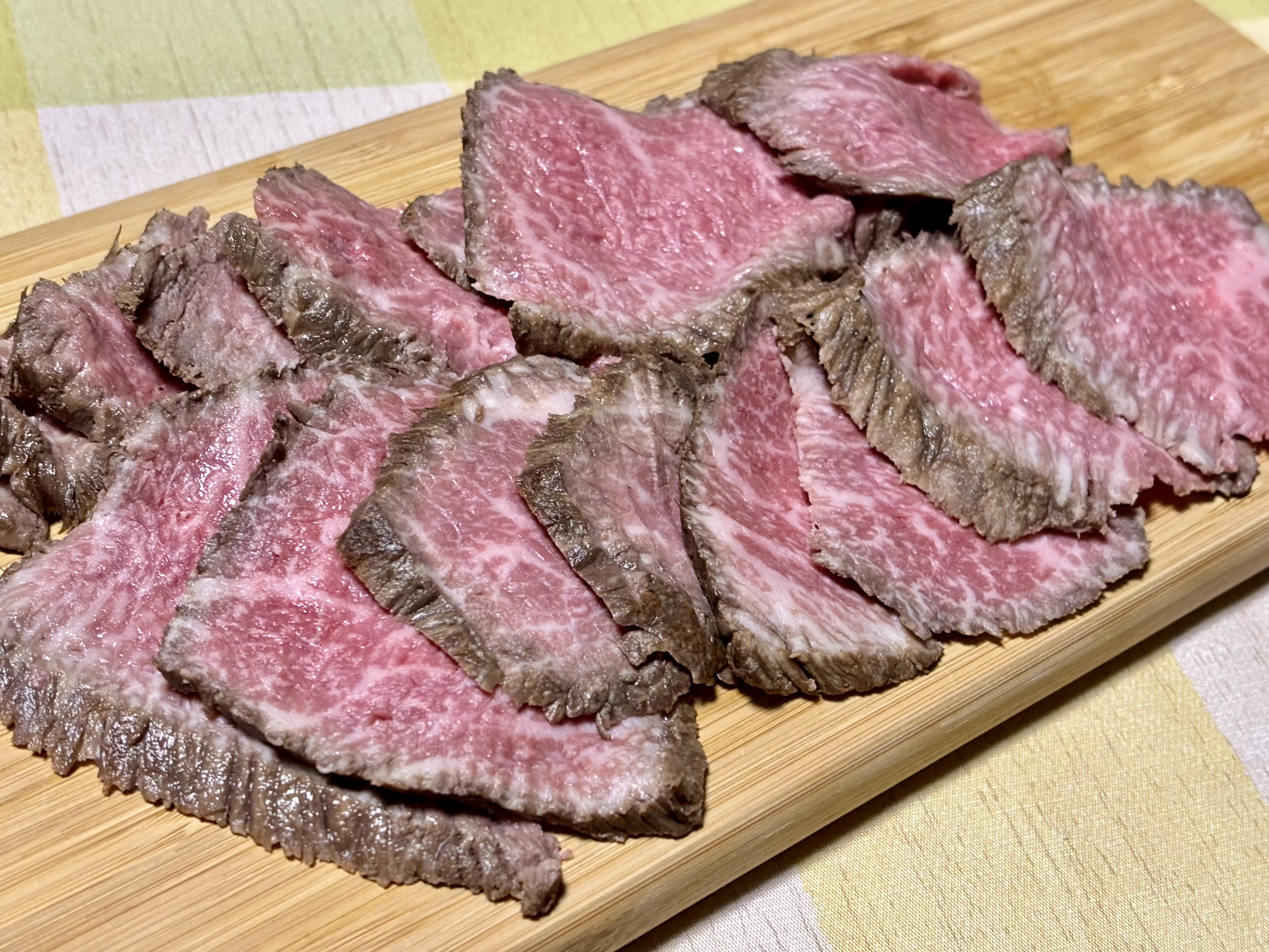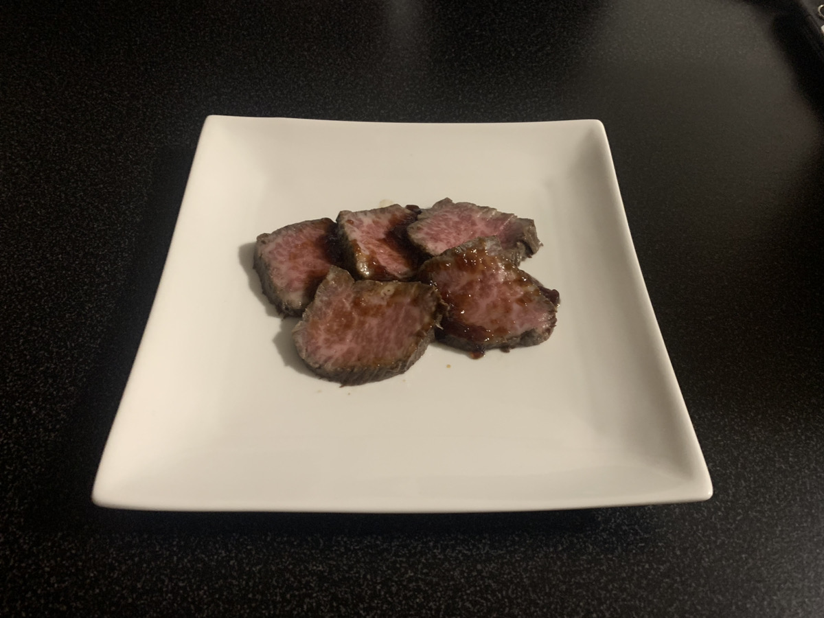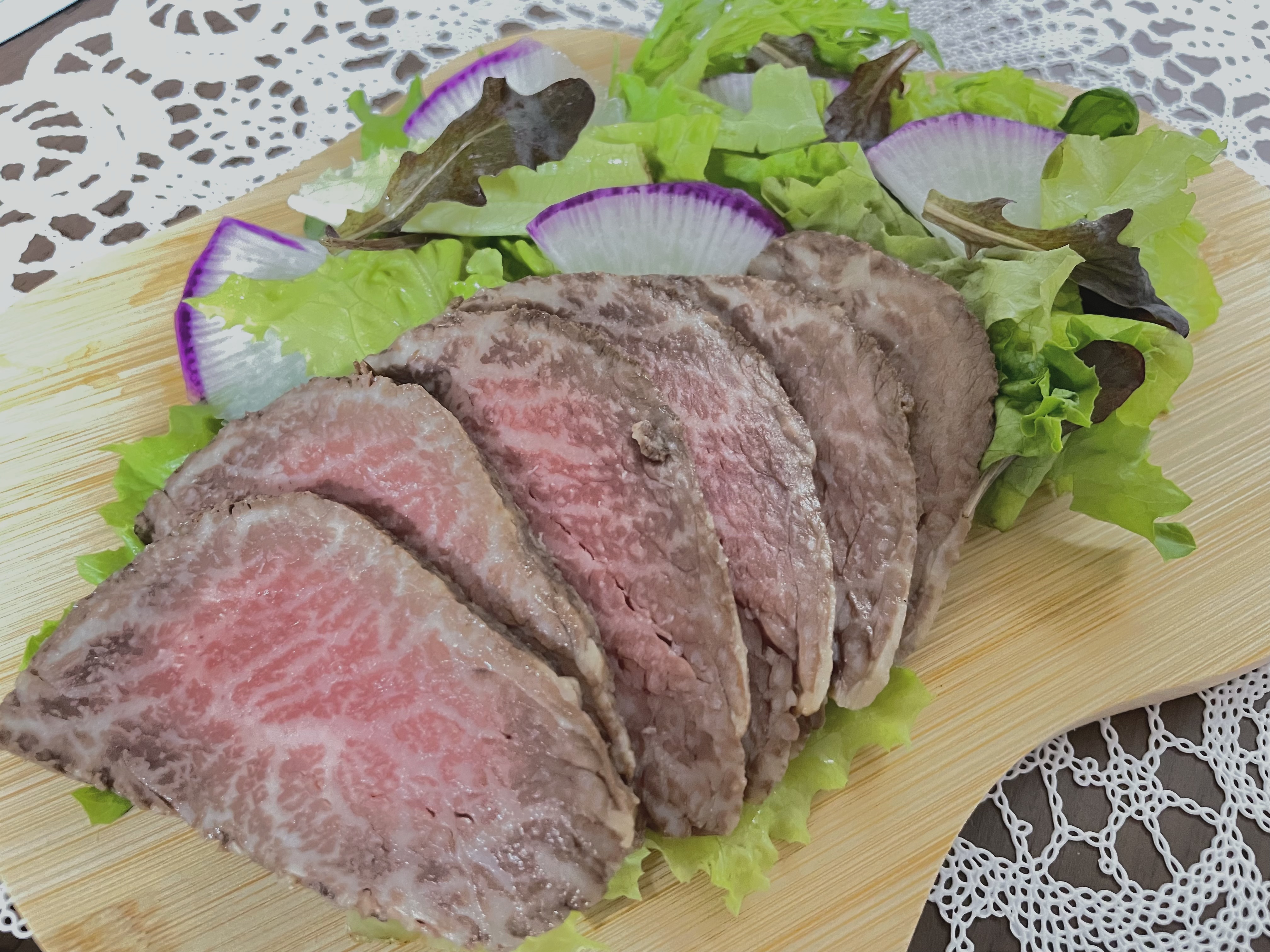 濃厚で深みのあるこれぞローストビーフと言った味わいです。希少部位イチボを使ったローストビーフということですが脂肪はそれほど多くなくあっさりしていてしっかりした歯ごたえ、幸福感が充満してきます。