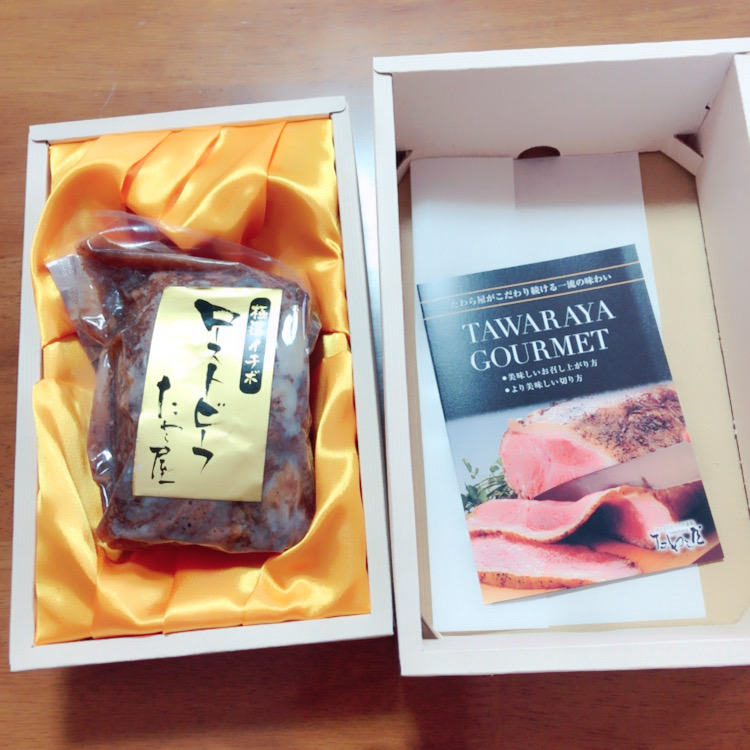 ローストビーフがおいしいのはもちろんですが包装が豪華で贈り物にとても喜ばれそうと思いました。
