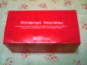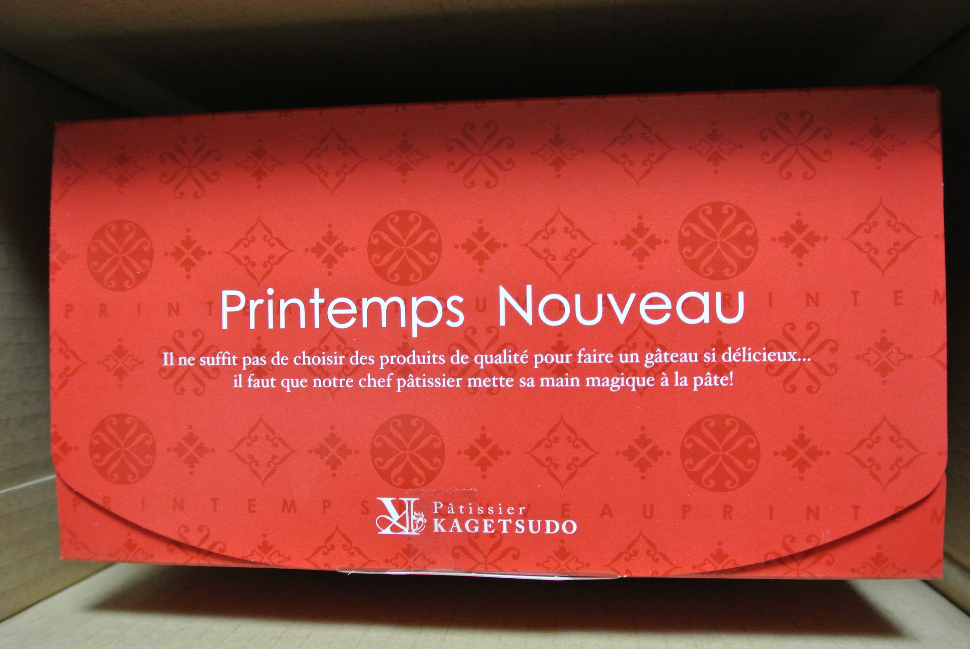 真っ赤なインパクトのある箱に入れられたロールケーキ。