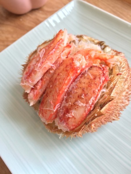 職人が、丁寧に手作業で毛ガニを一尾丸ごと捌いて甲羅に盛り付けられているそう。