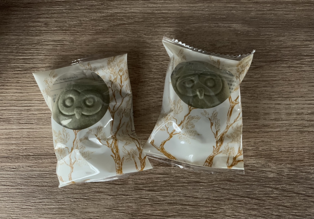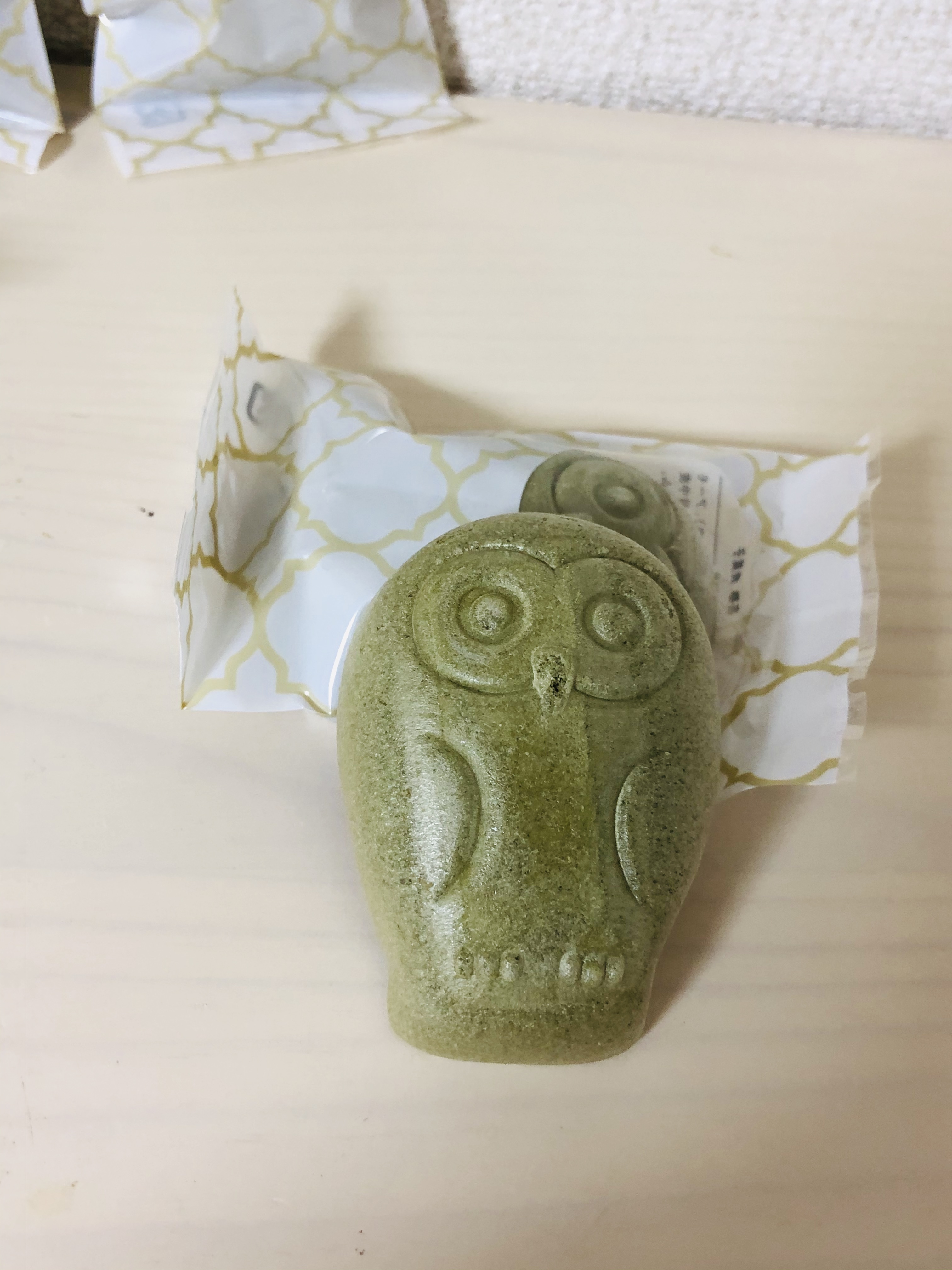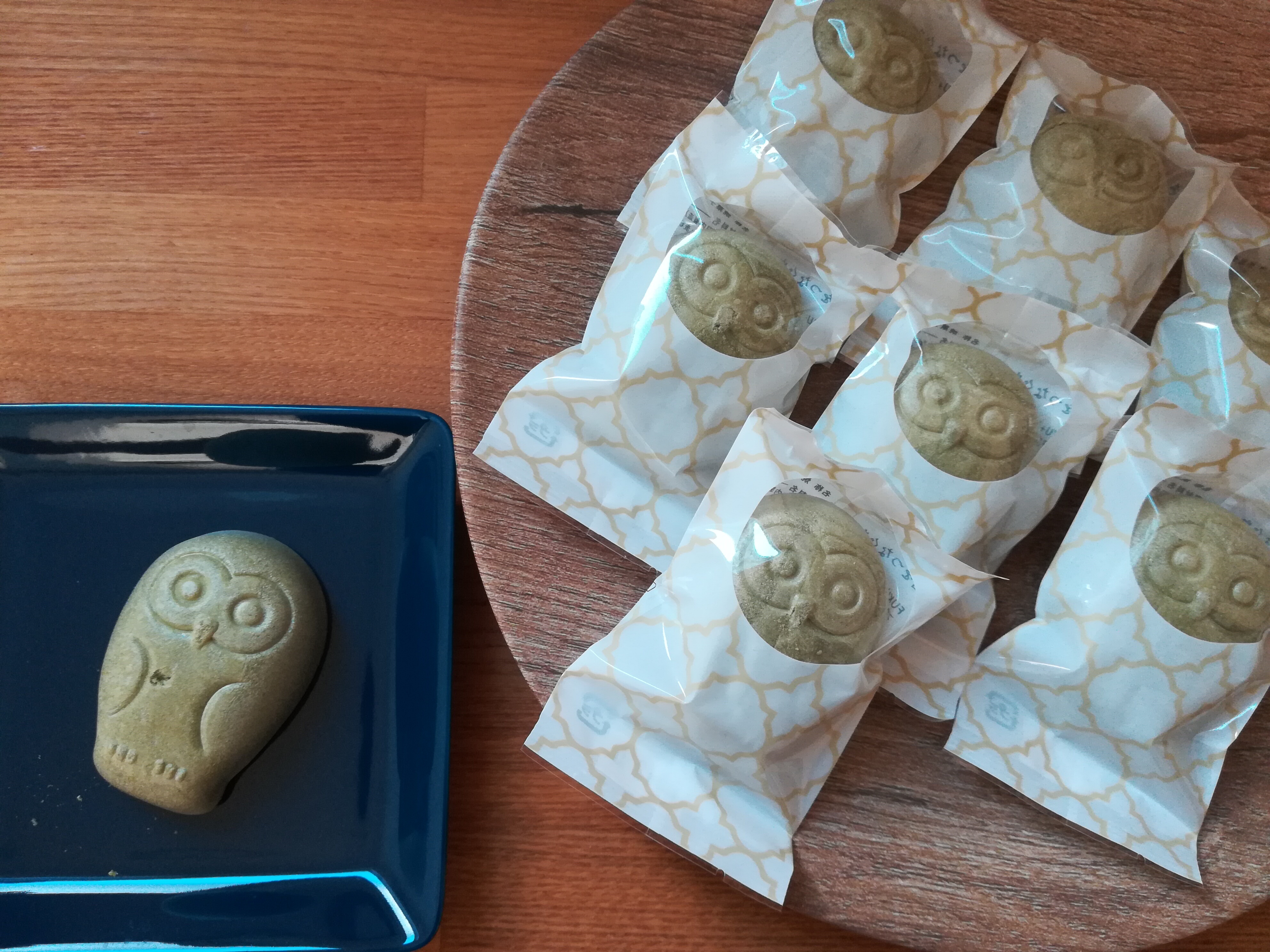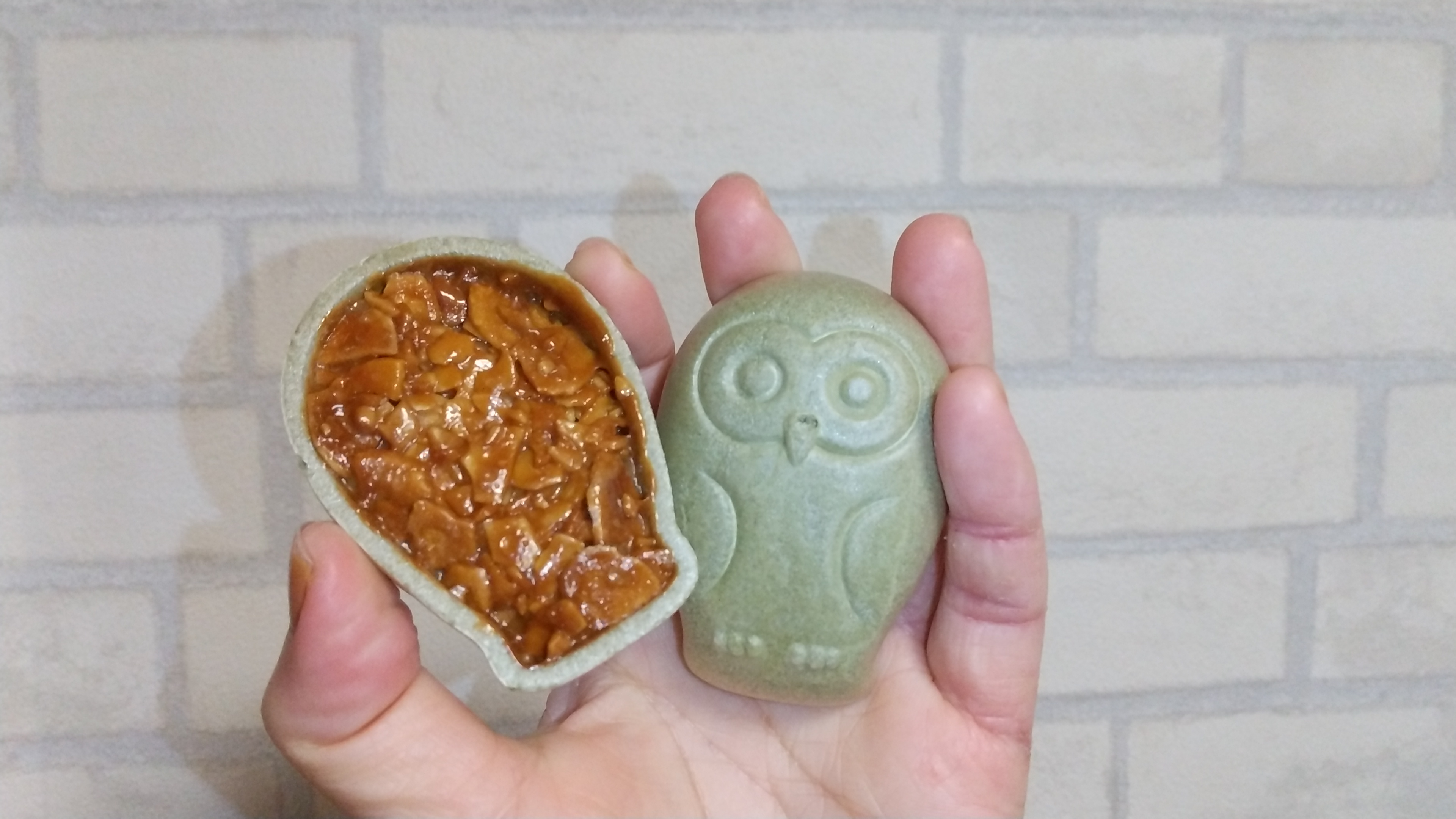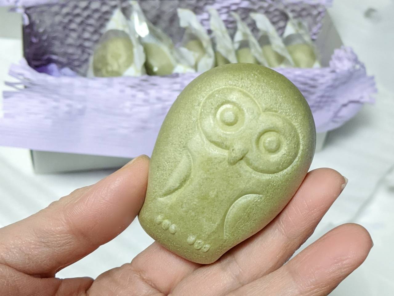 フクロウに象られた皮はよもぎ風味の最中皮なのですが、ヨモギの香りがうっすらと感じられ、洋菓子×和菓子がうまく融合されたハイブリッドスイーツです。