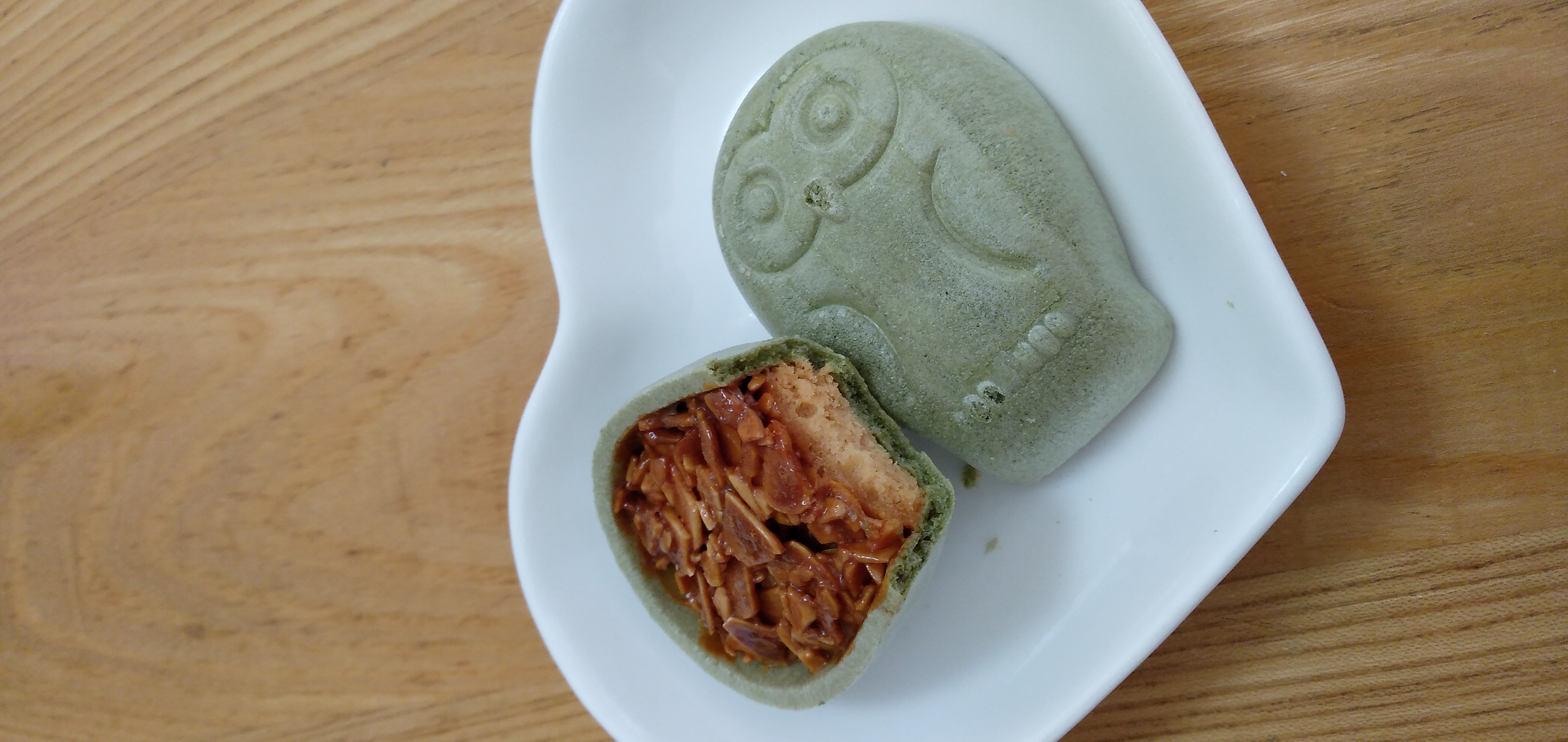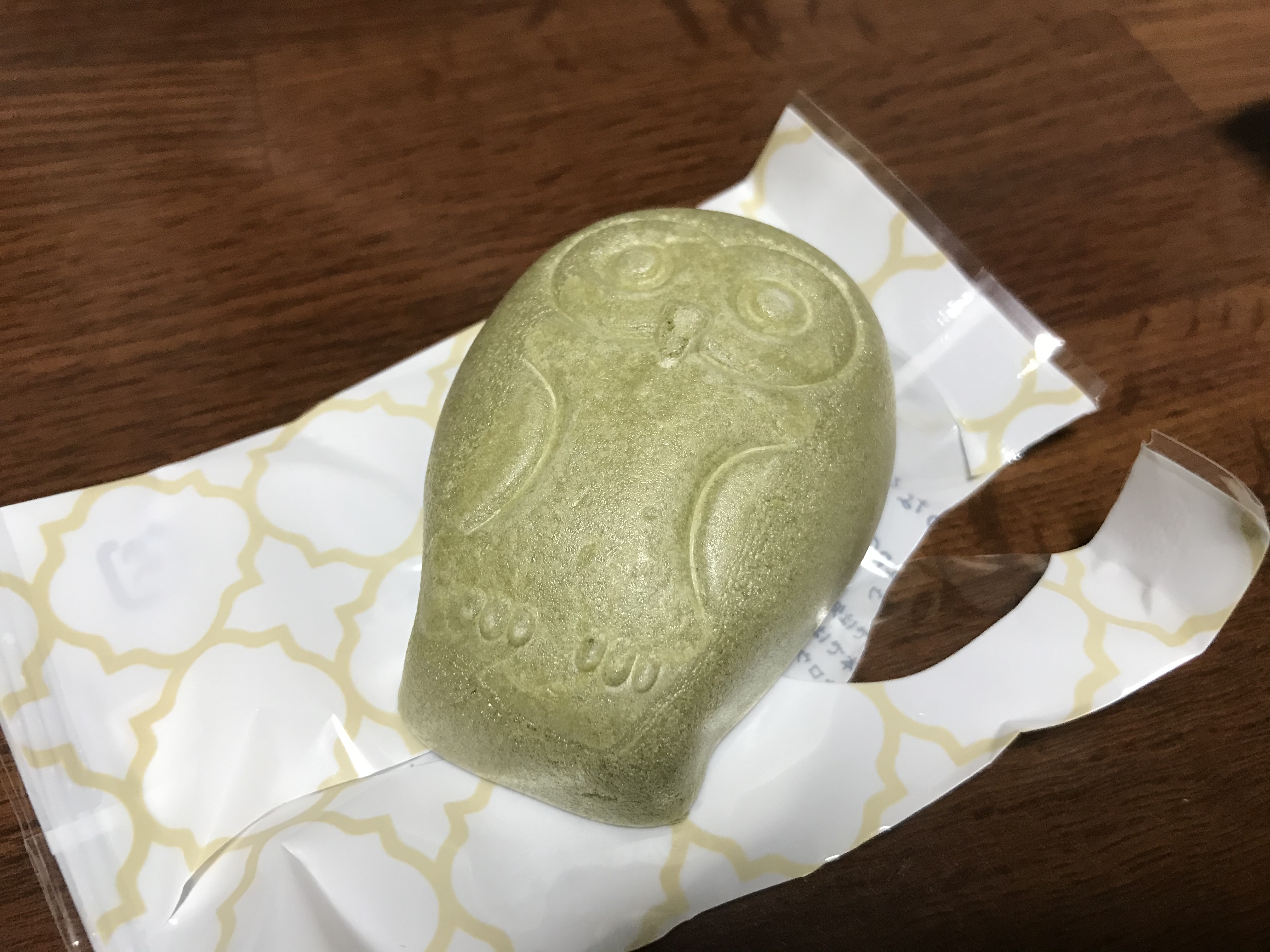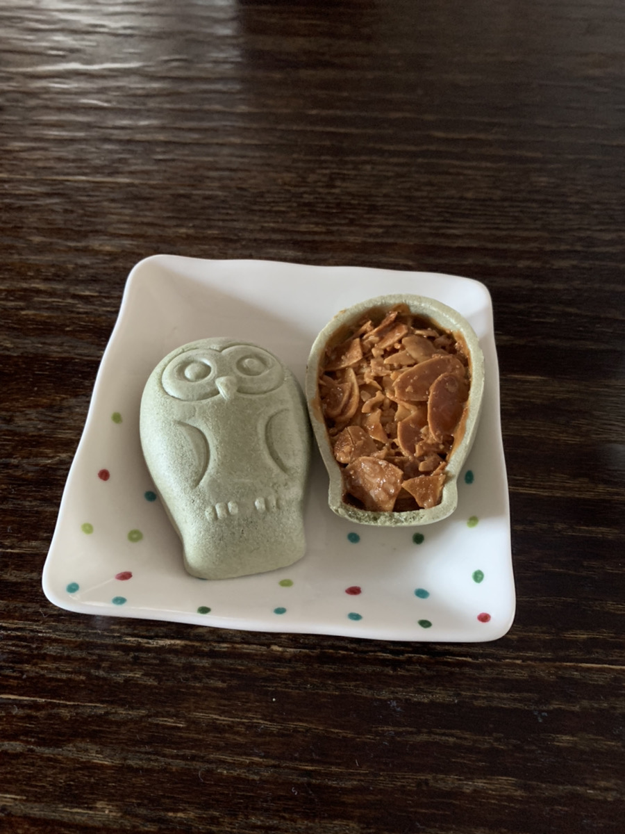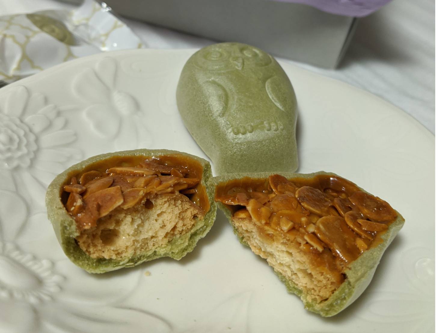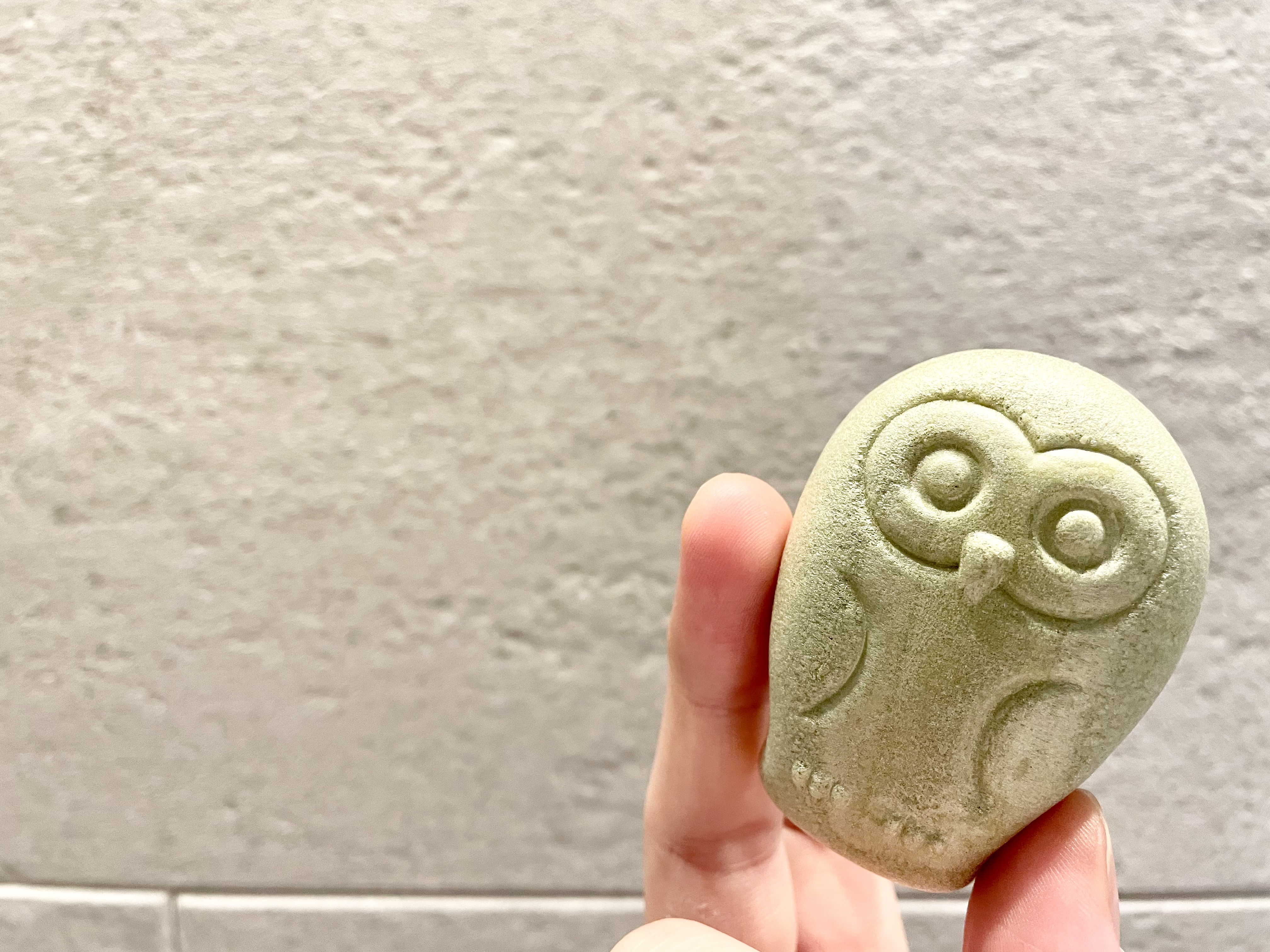フクロウに象られた皮はよもぎ風味の最中皮なのですが、ヨモギの香りがうっすらと感じられ、洋菓子×和菓子がうまく融合されたハイブリッドスイーツです。