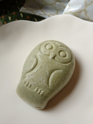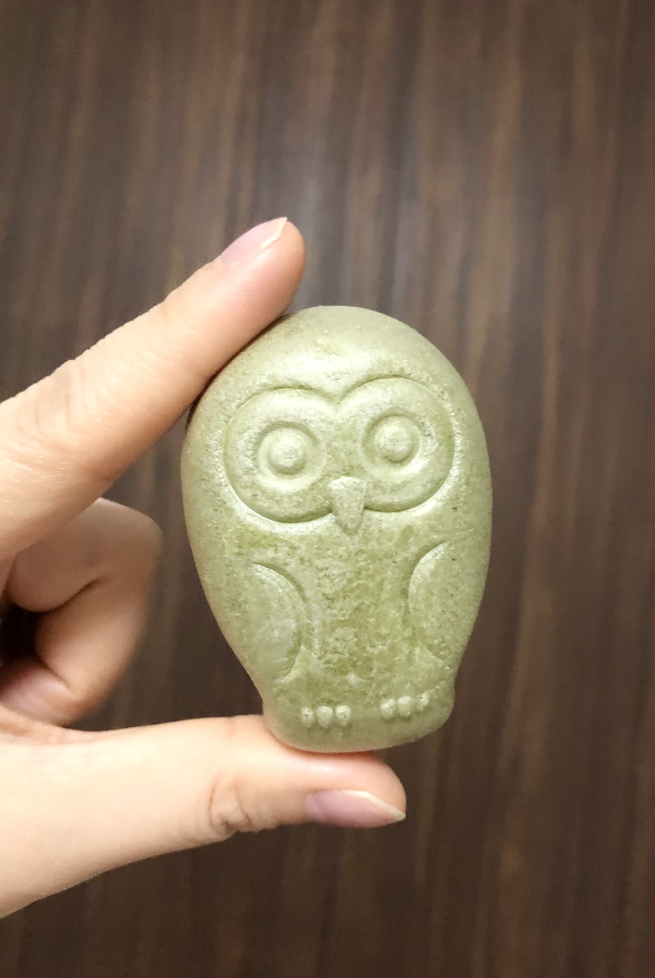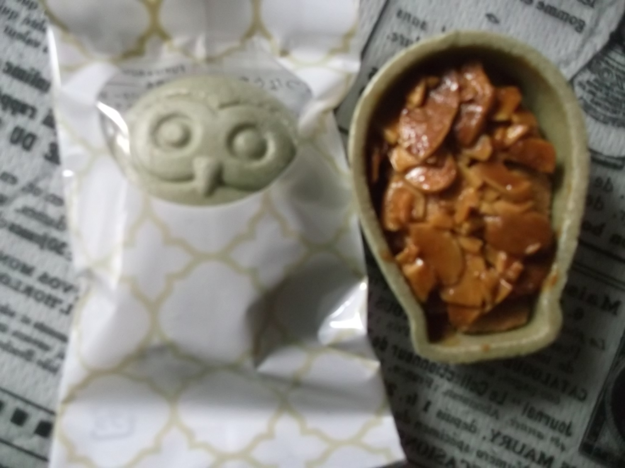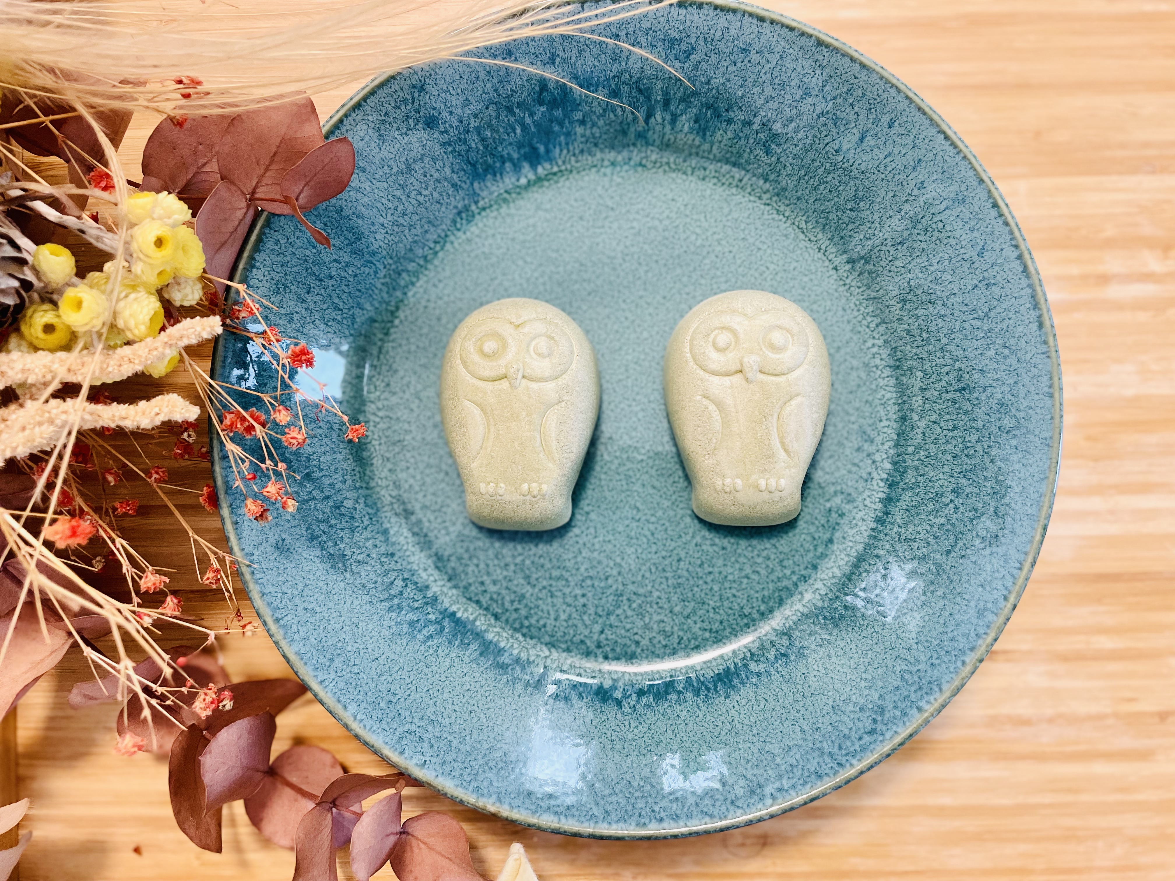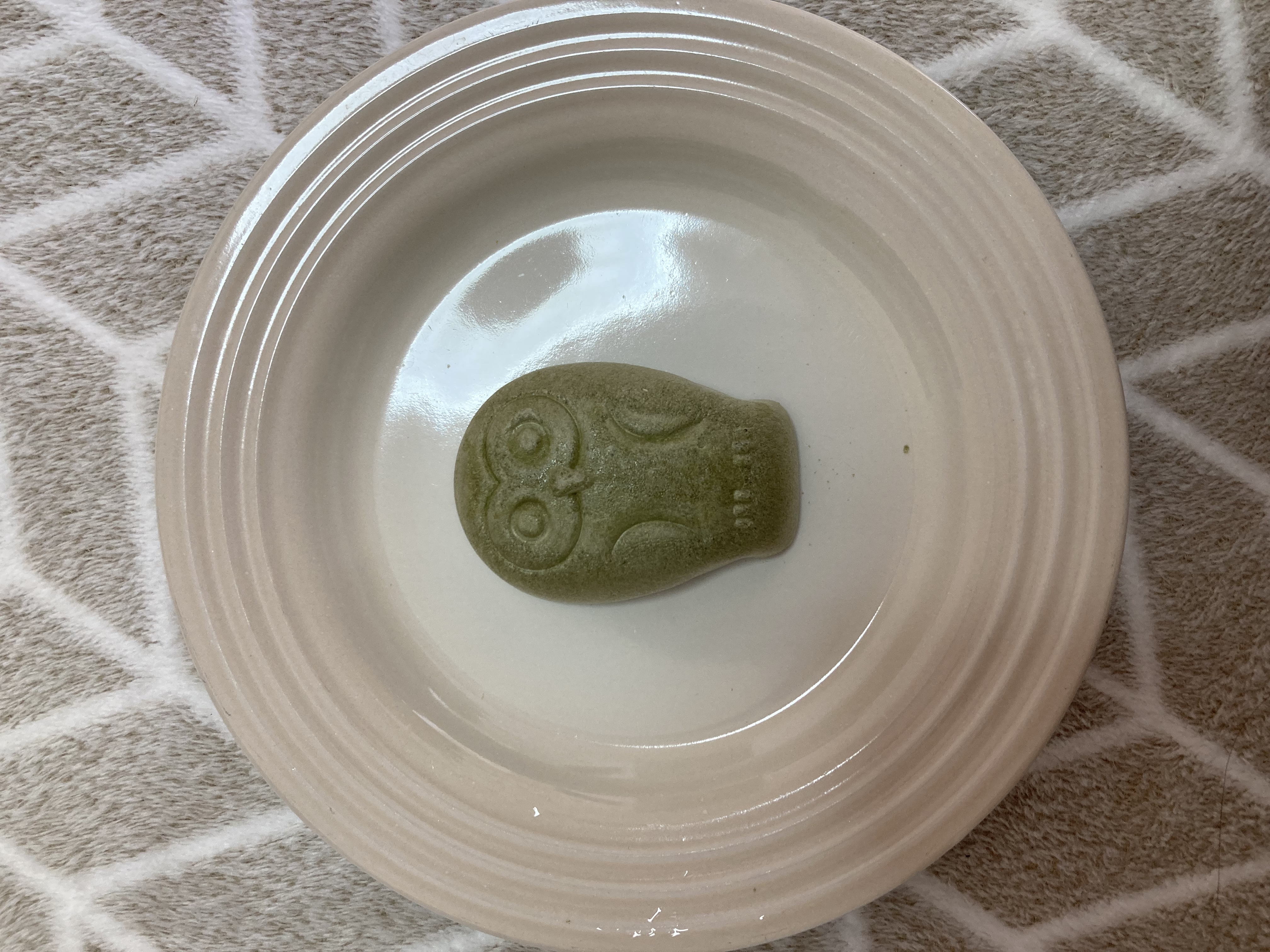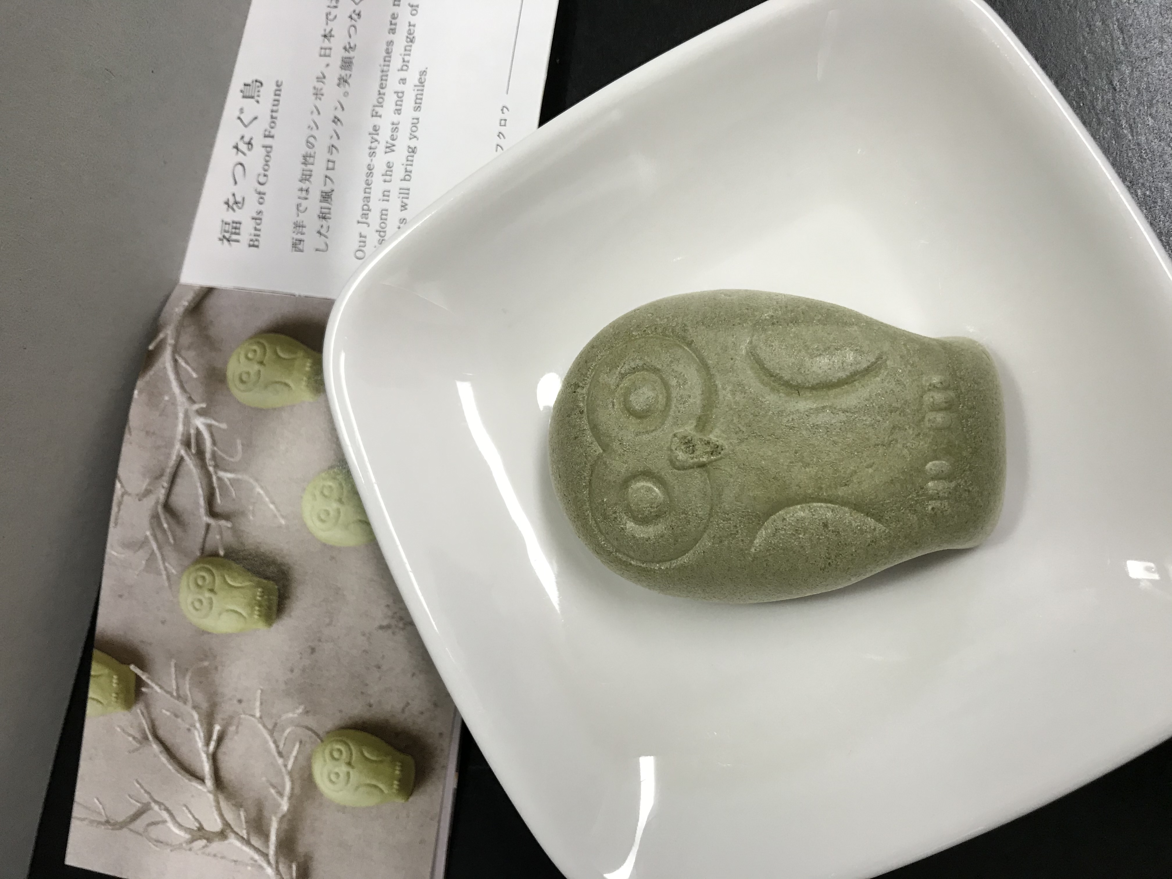 フクロウに象られた皮はよもぎ風味の最中皮なのですが、ヨモギの香りがうっすらと感じられ、洋菓子×和菓子がうまく融合されたハイブリッドスイーツです。