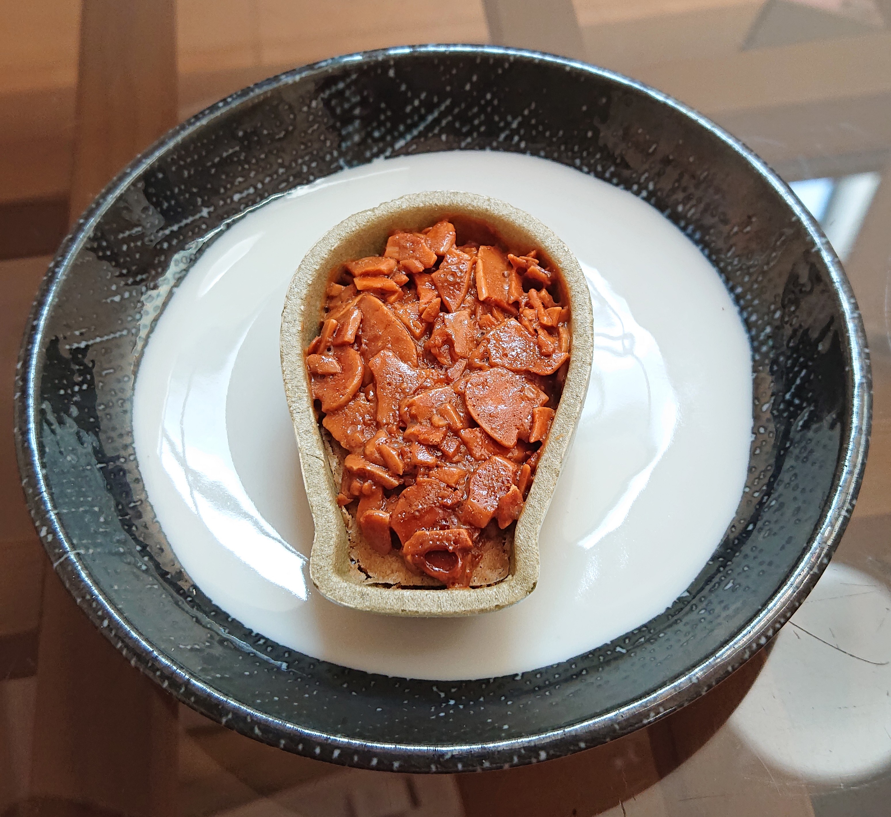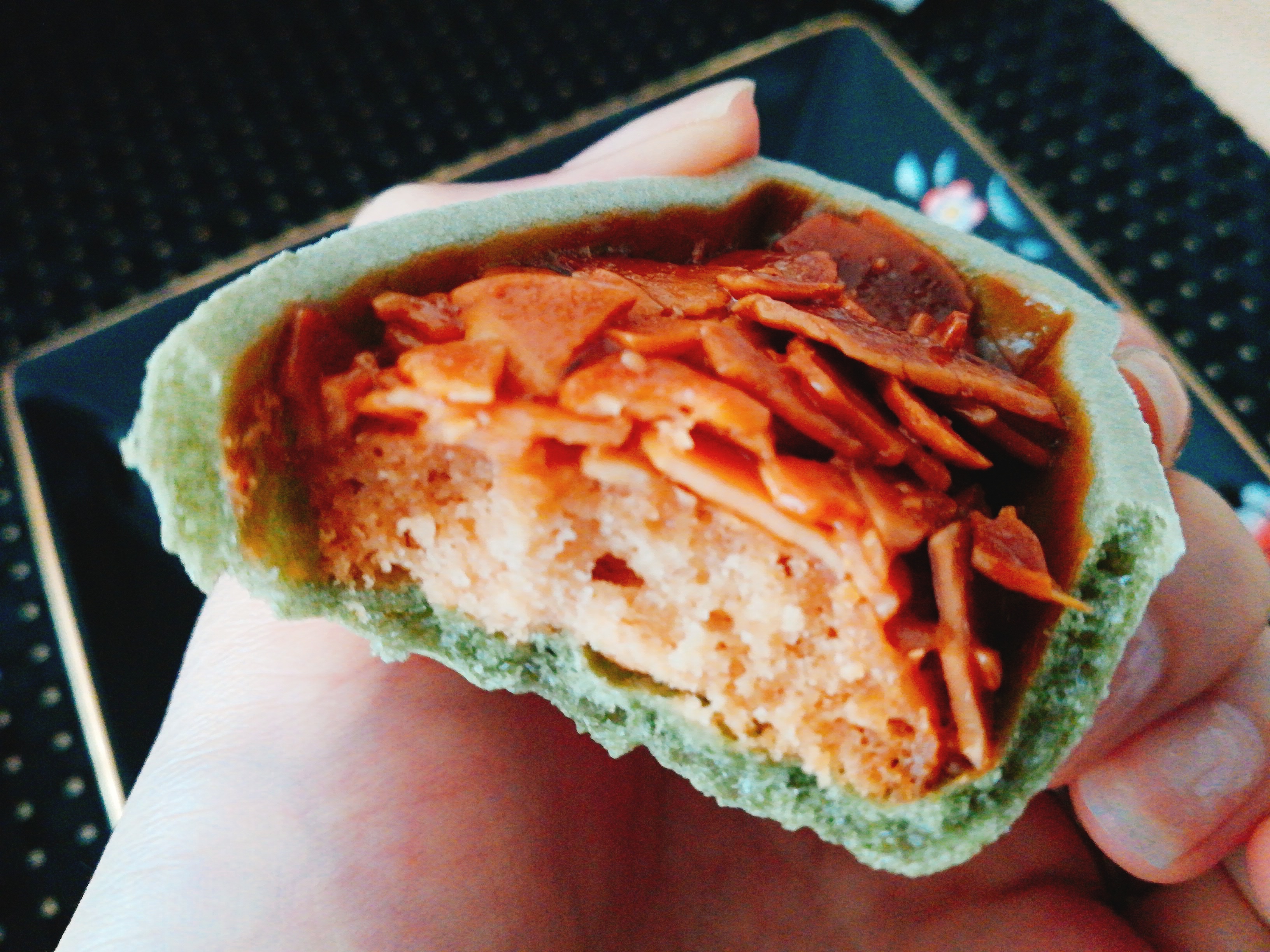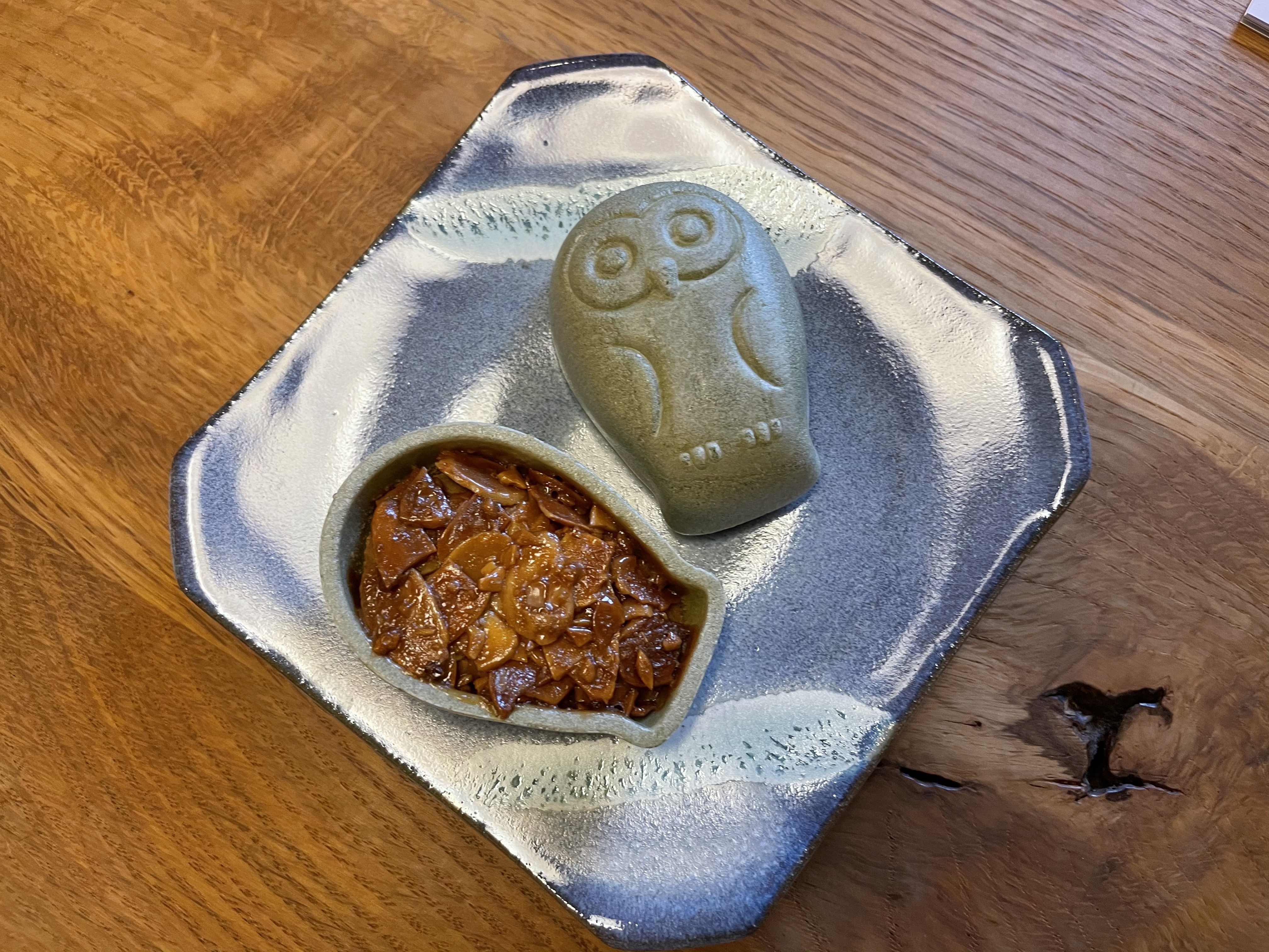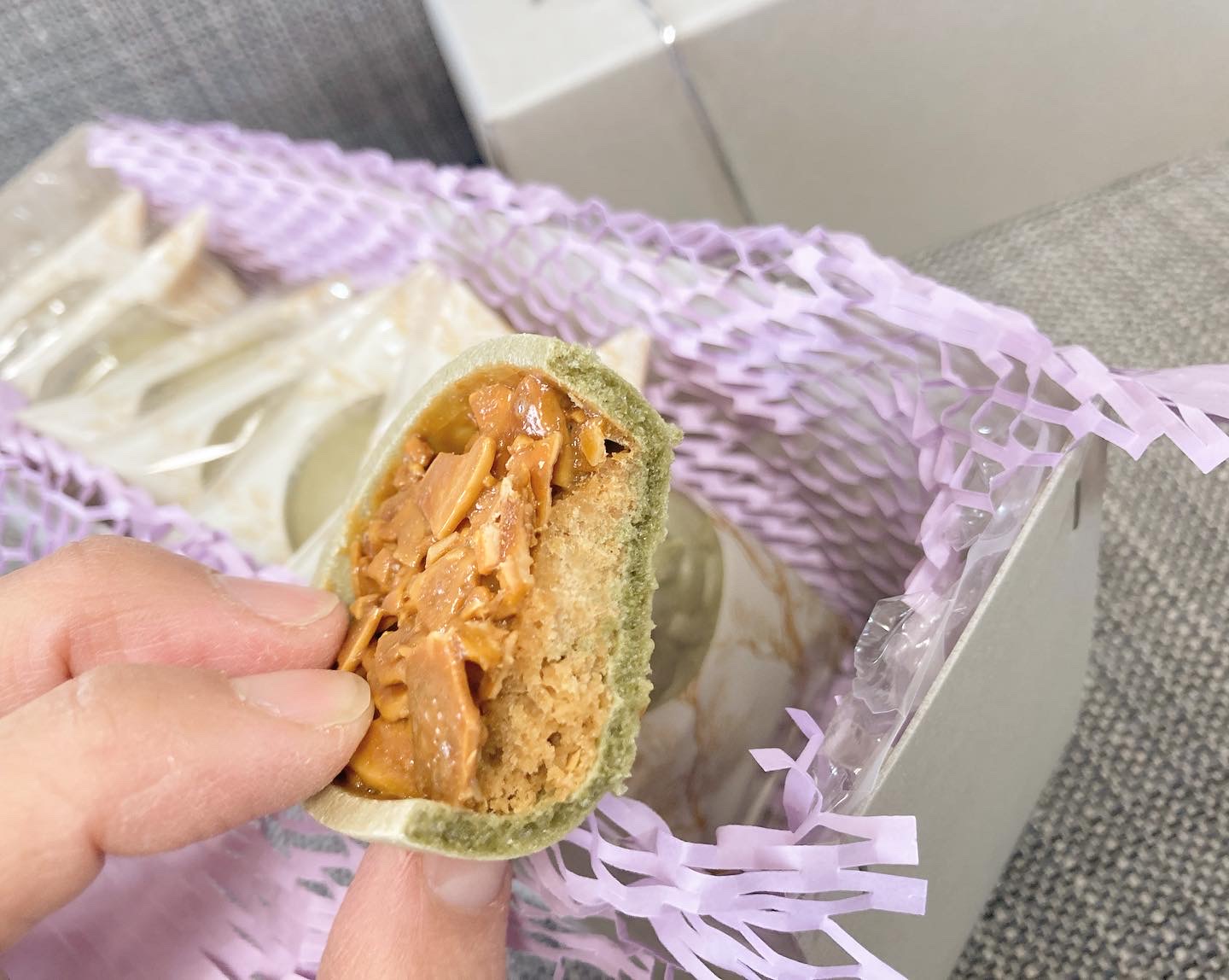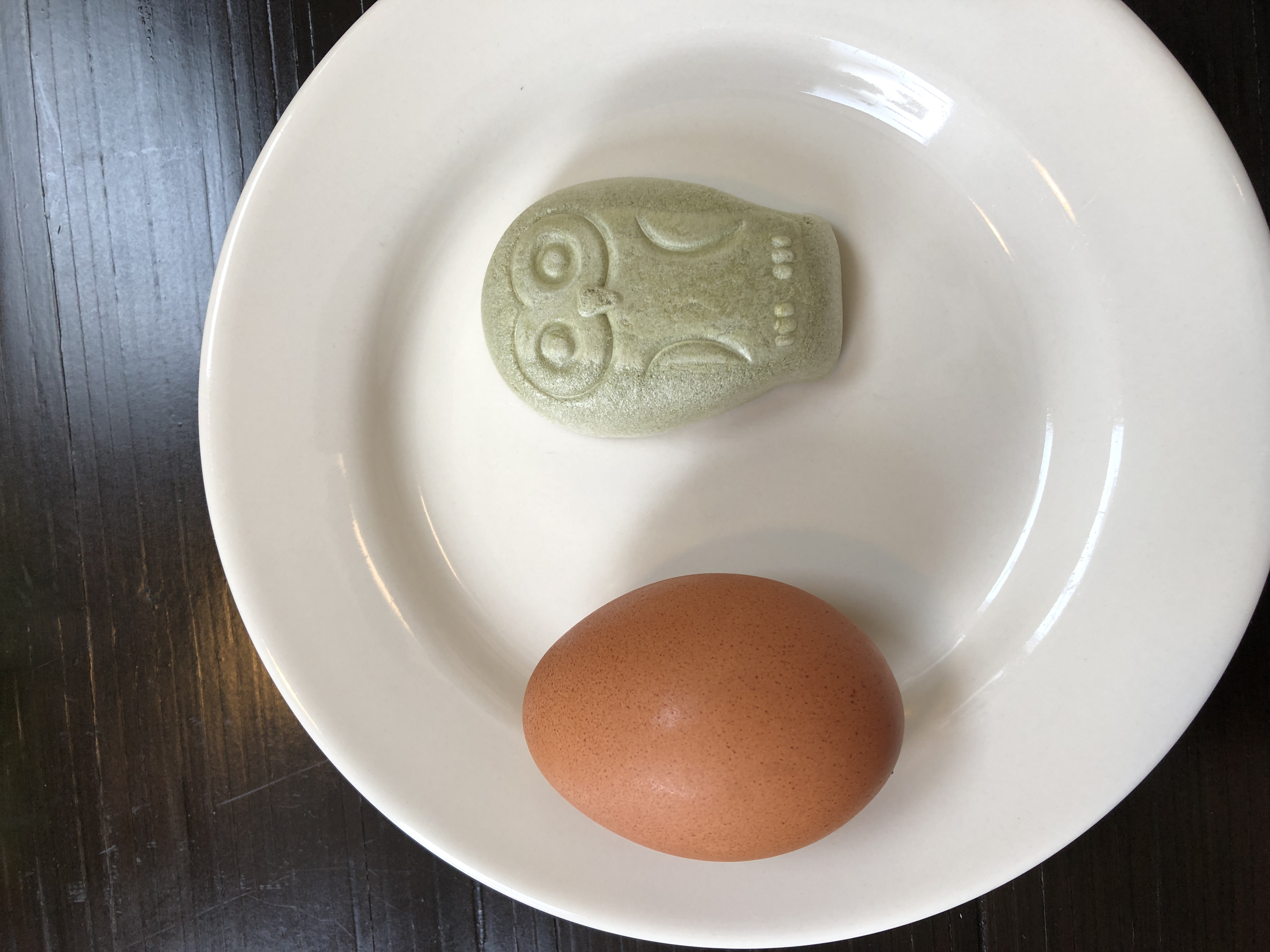 フクロウに象られた皮はよもぎ風味の最中皮なのですが、ヨモギの香りがうっすらと感じられ、洋菓子×和菓子がうまく融合されたハイブリッドスイーツです。