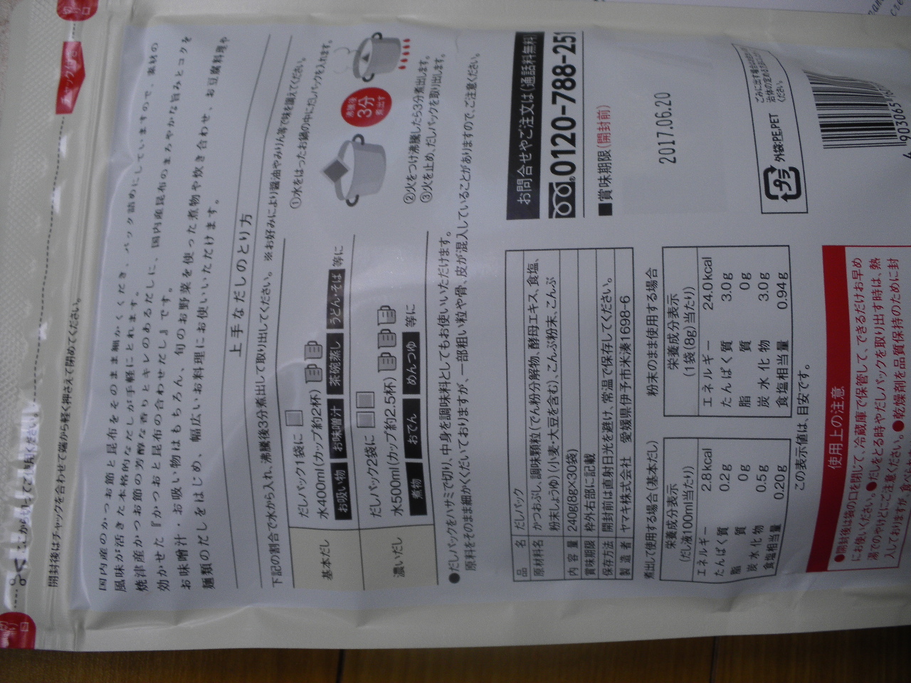 新しく買ったおだしの中身を見るのが醍醐味だと思っていますので中身を出しました。