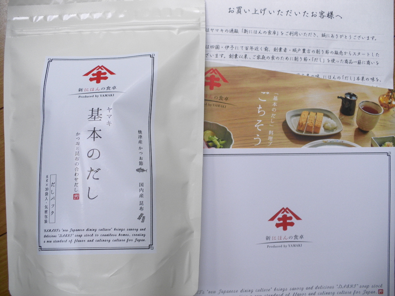 同封された「ヤマキの料理ブック」には①基本だし(お味噌、茶碗蒸しなど)②濃いだし(煮物、麺つゆ)の作り方(どちらもお湯に入れるだけ)も簡単に記載されており、どんな用途にぴったりかもわかりやすいので料理初心者にも手軽に使えそうです。