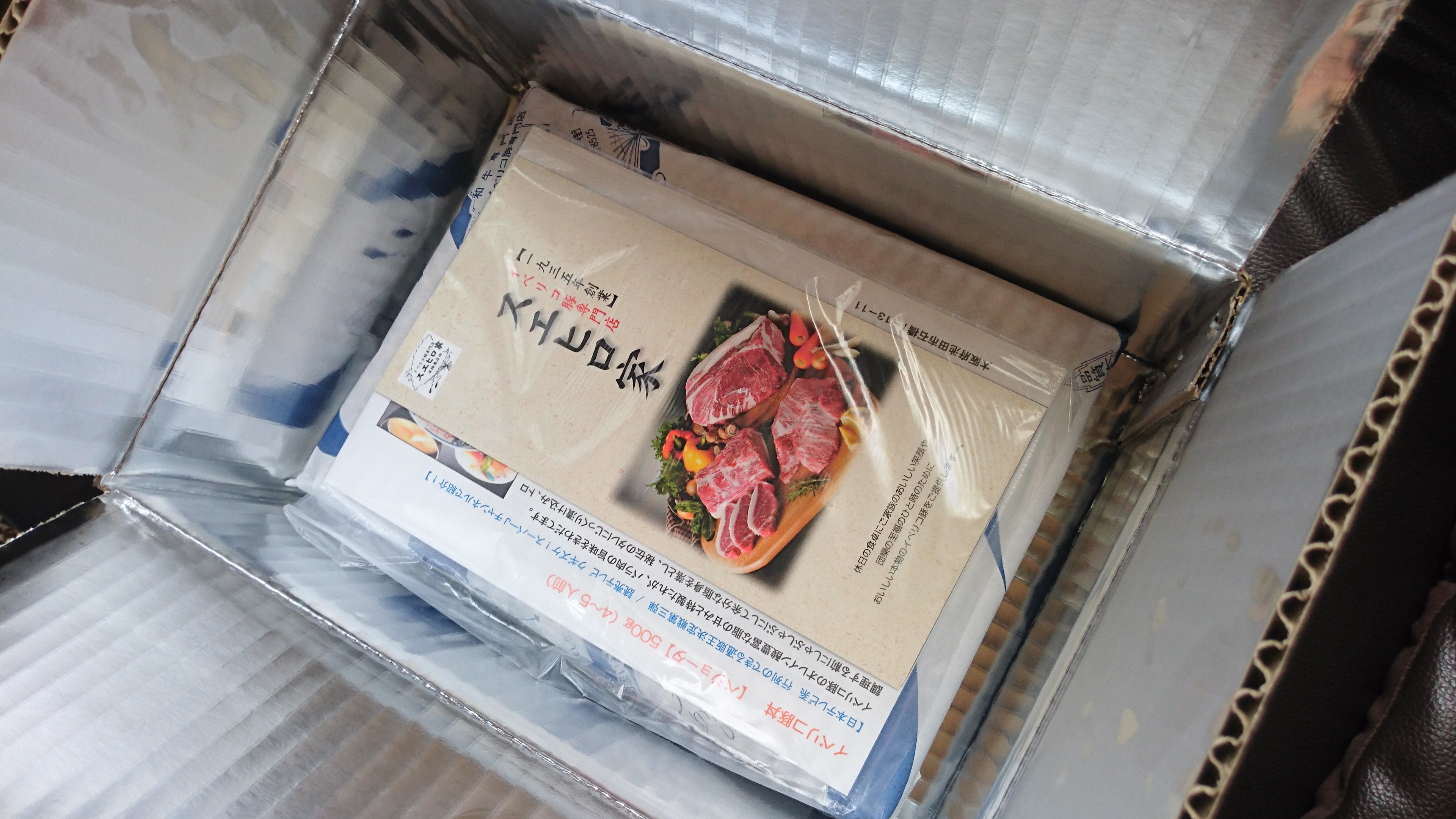 早速開封してみると、重厚感ある保冷段ボールに説明書と竹の皮(お肉はやはり竹の皮でなくちゃ)。