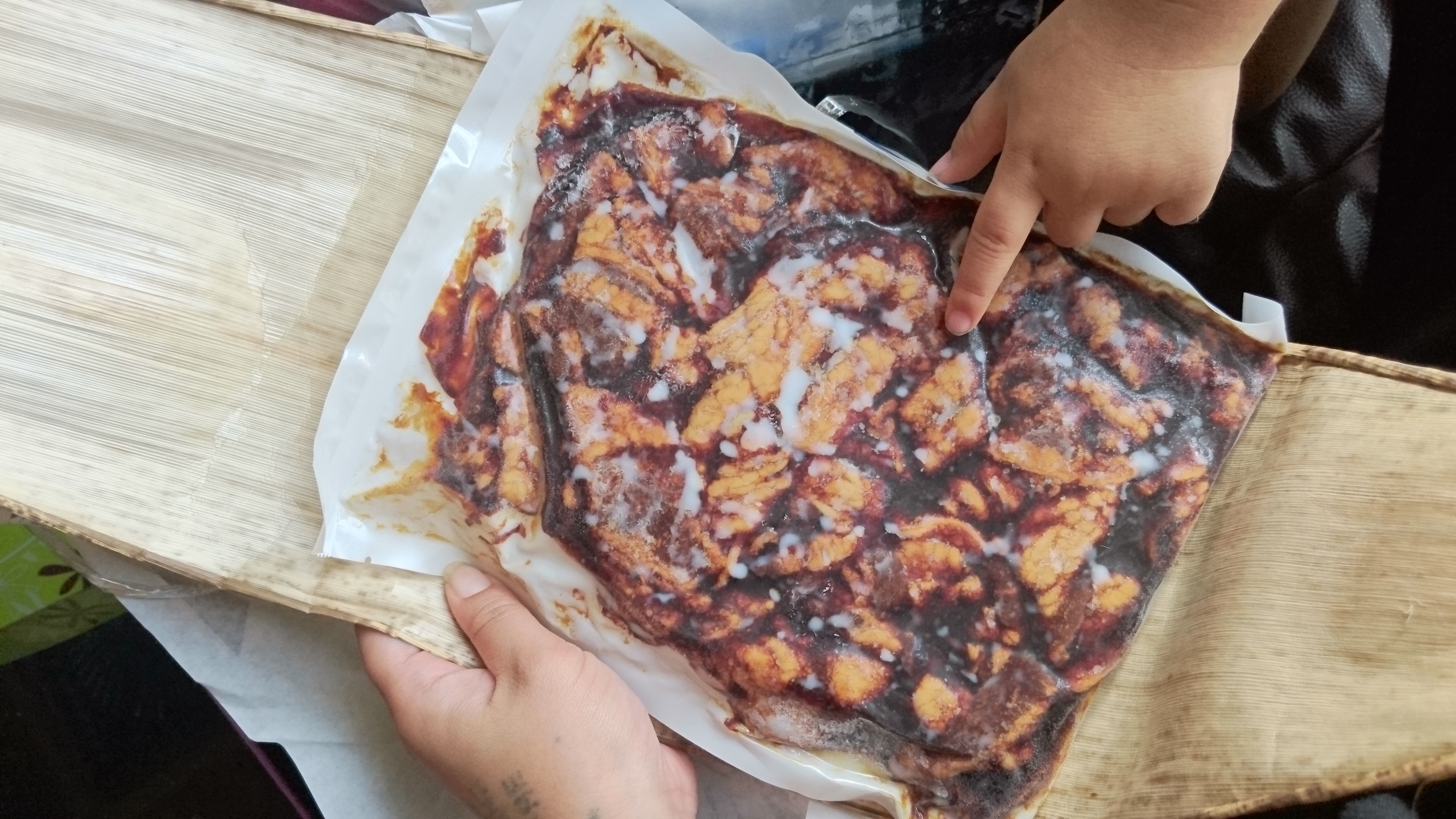 ちなみに加熱をしたら脂が多い部位なので、袋の中にタレと分離した状態で脂の層ができます。