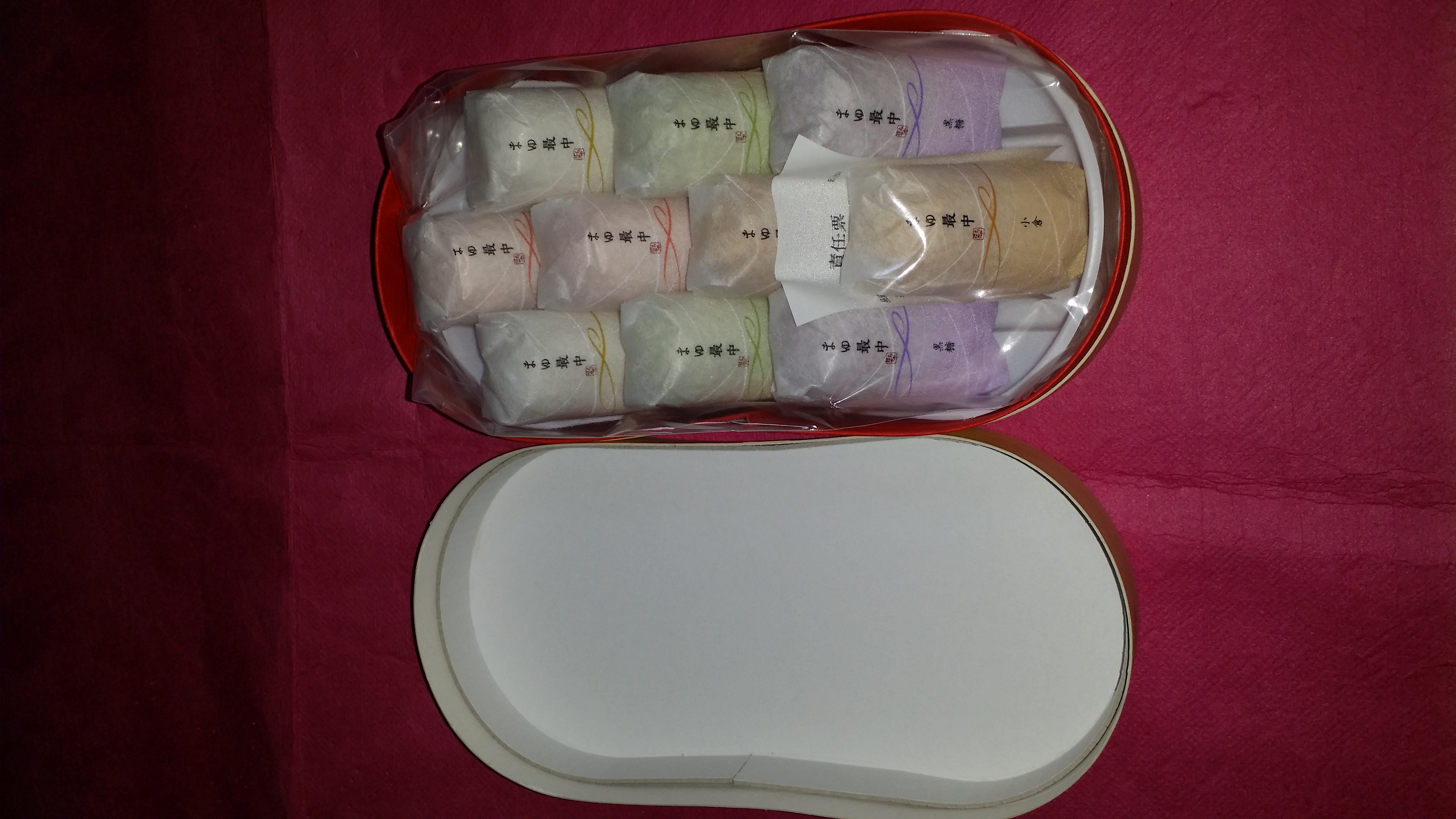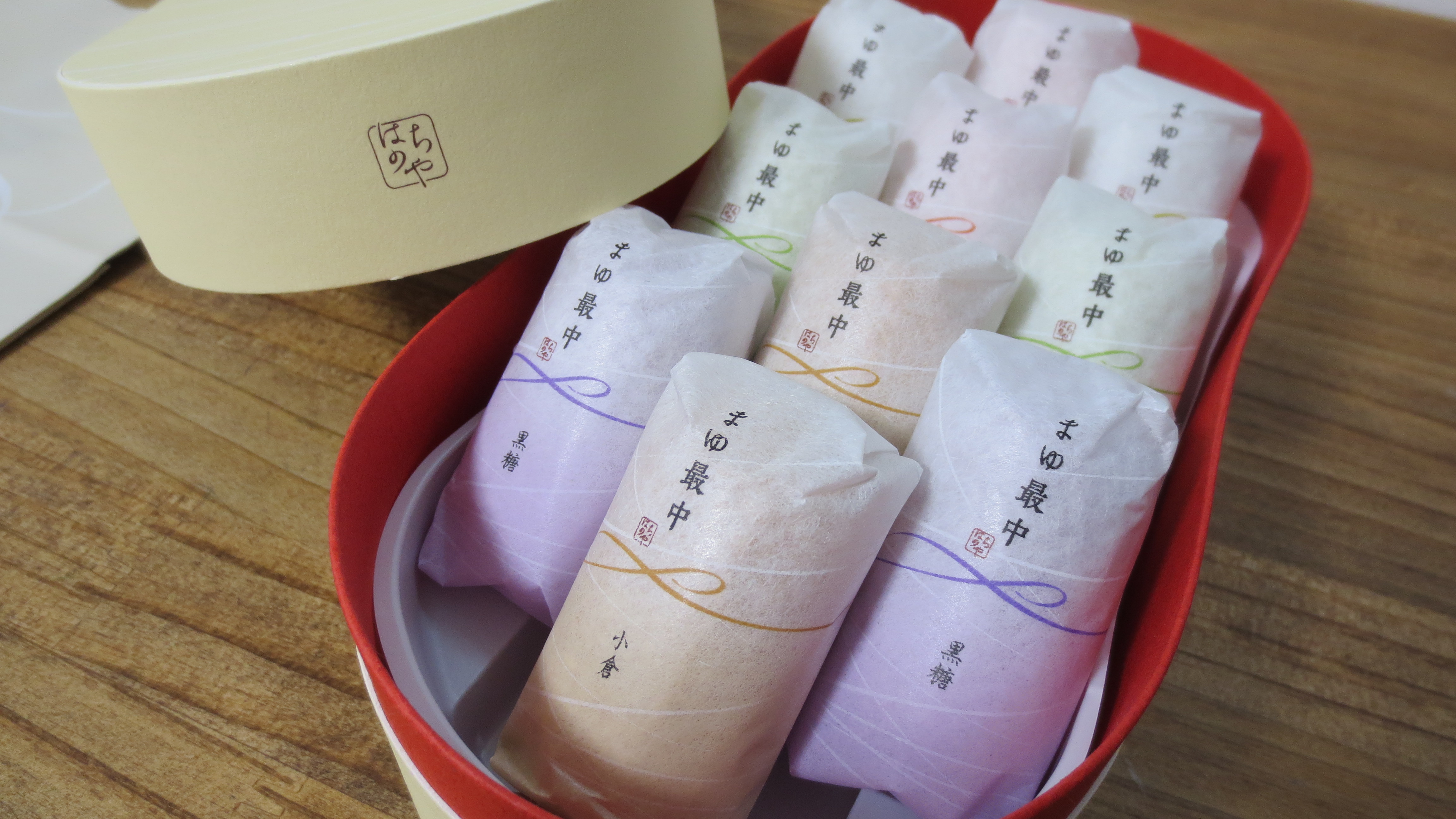 ギフトボックスがまゆの形になっていて、厚みがあるので、それだけで上品に見えます。手土産ギフトにもちょうど良い大きさ。