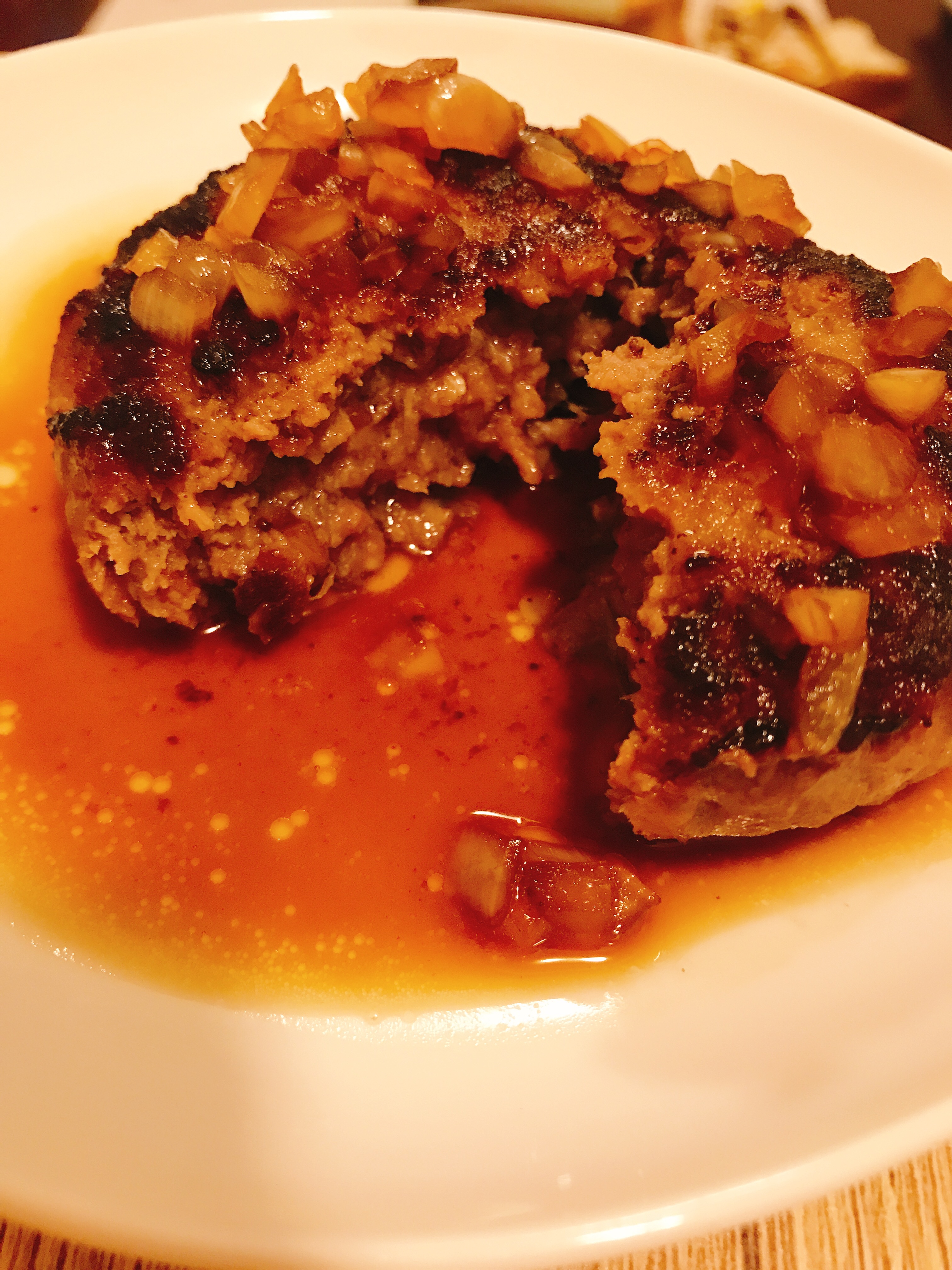 推奨されておられる通りにソースなしで頂きましたが、あんなに肉汁が出たのにもかかわらずまだまだ肉汁がお肉の中にキープされていて柔らかく本当にジューシーでした。