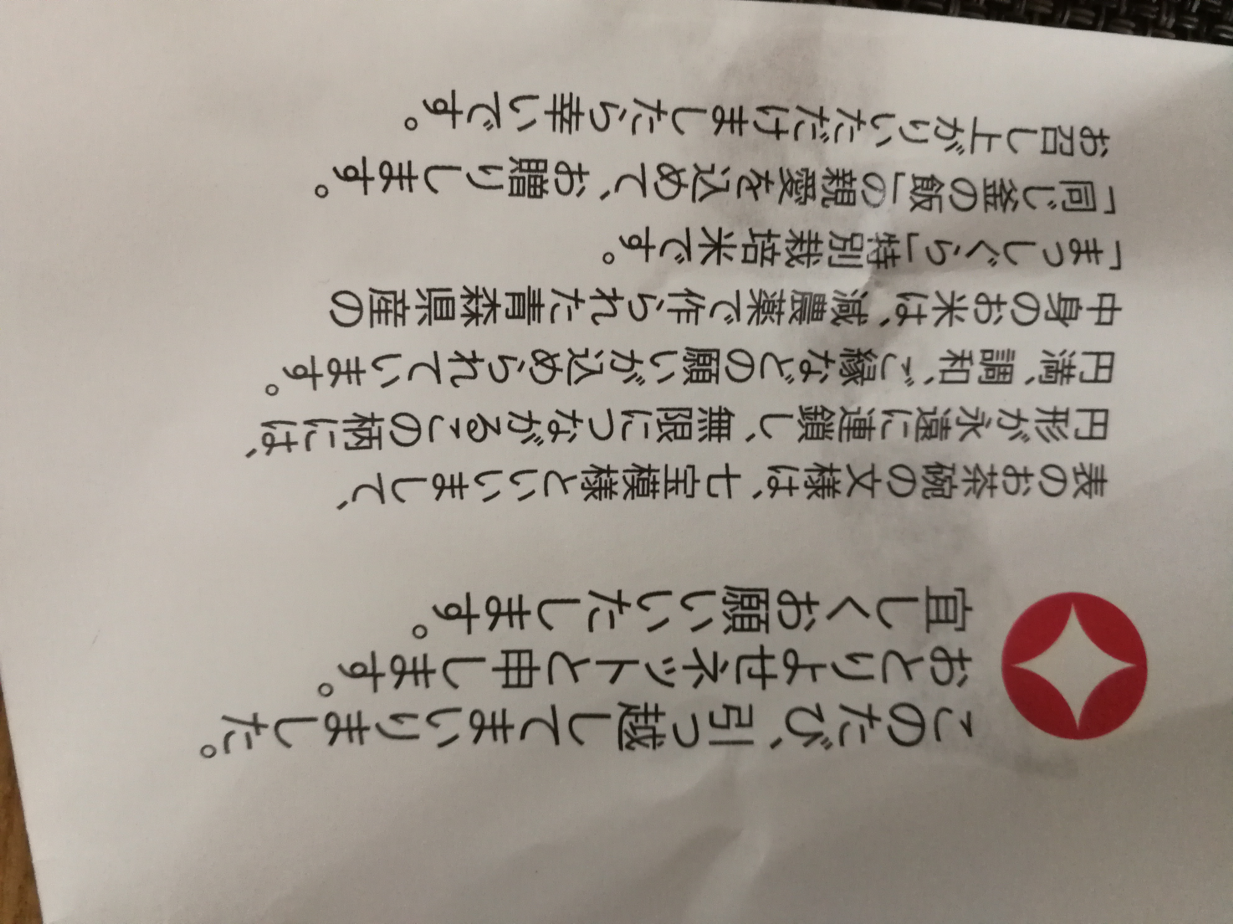 挨拶状はよく見ると一粒のお米で囲われたデザインで、とても洗練された印象を持ちました。