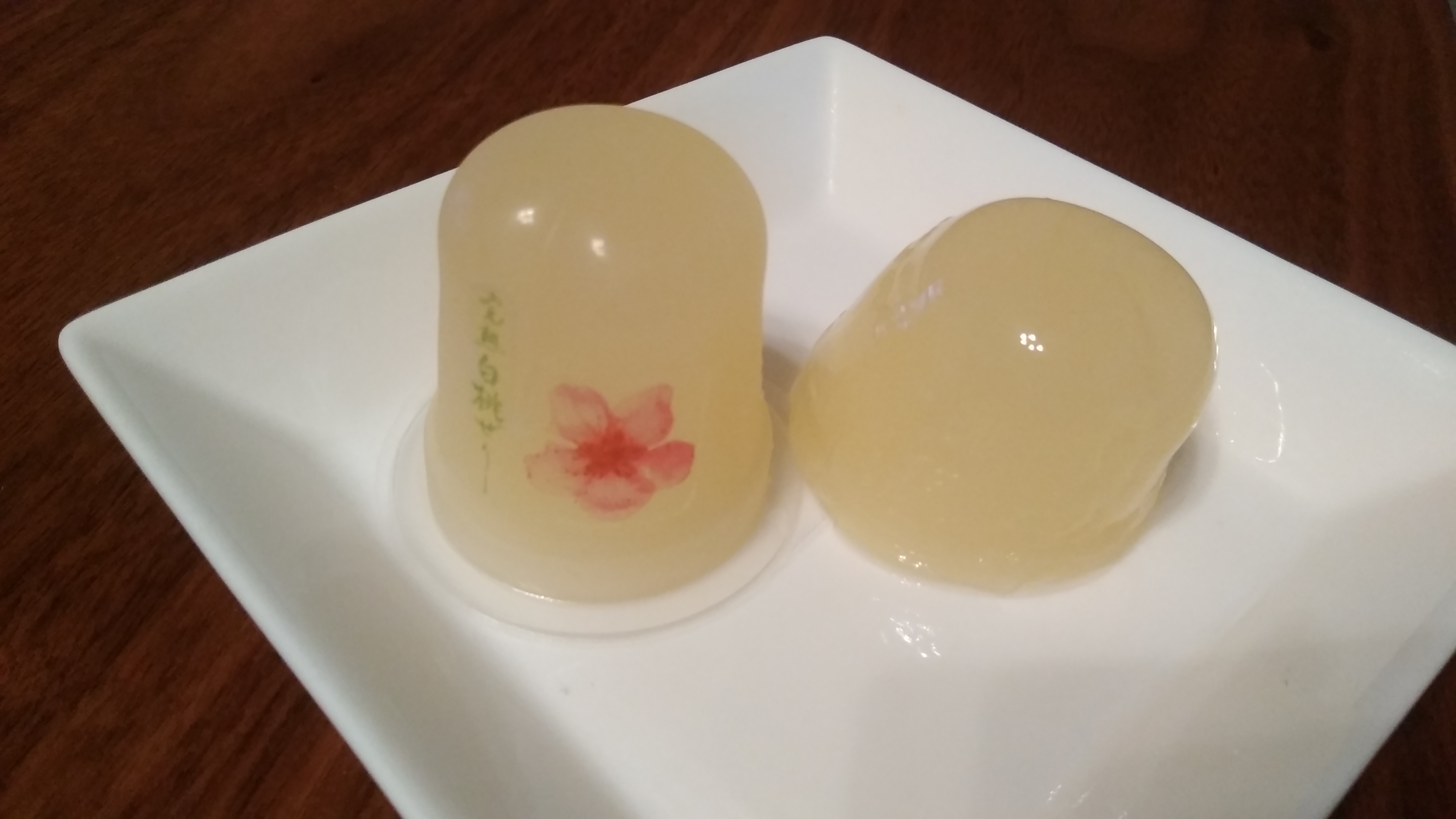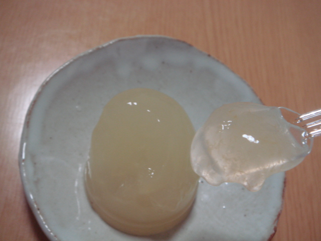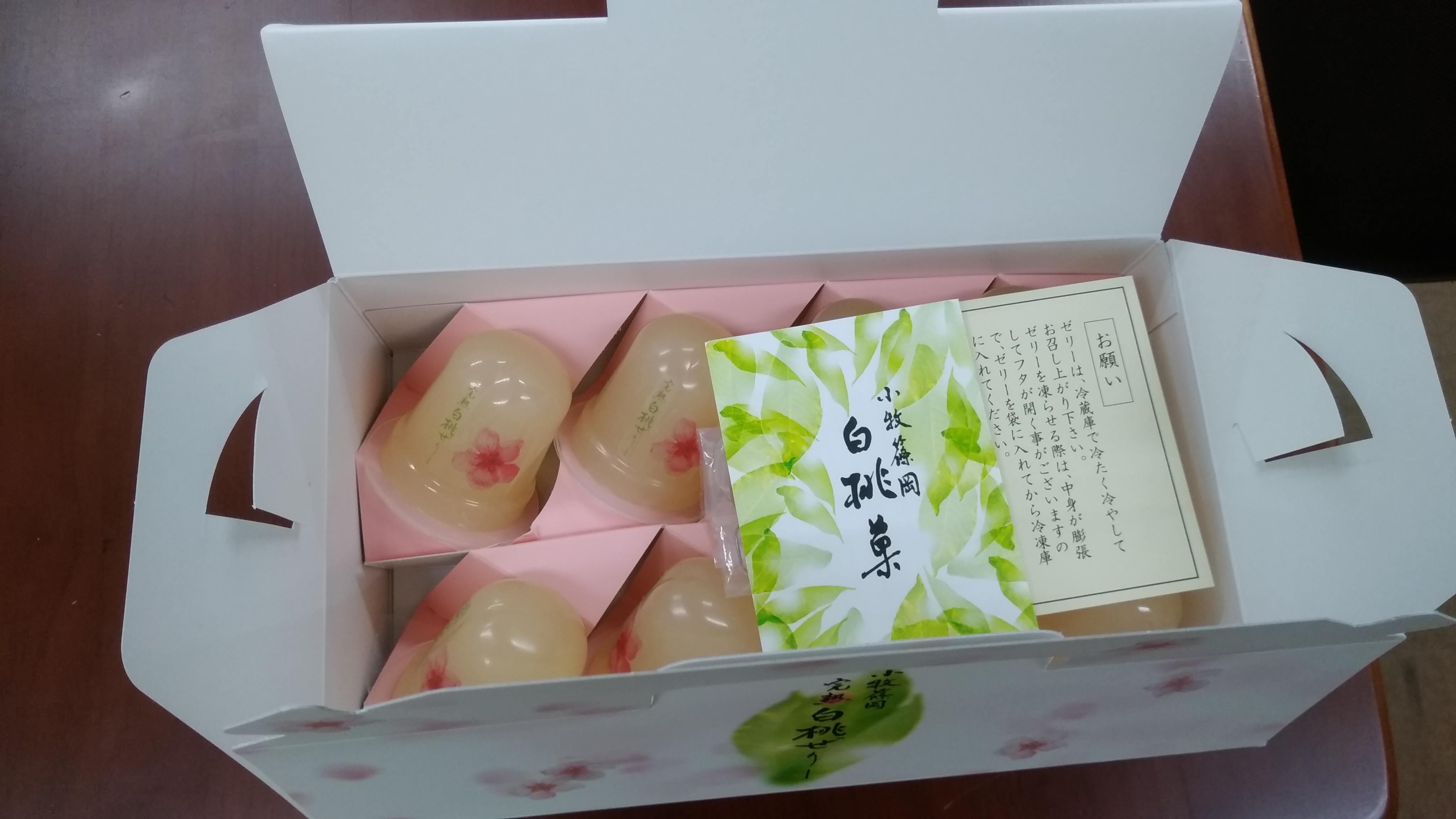 さて賞味させて頂くと、一番驚いたのは、完熟桃の果汁が一滴も漏れないのです。ゼリーは果汁たっぷり!というものが多いですが、こちらの「プチ完熟白桃ぜりー」は一切の嘘がない実感!つるんと出て来るわけではなく、トロッと備え付けのスプーンで上品に食べることが出来ます。芳醇な桃の香りが口の中いっぱいにひろがっていきます。桃がそのまま入っているような感じで歯ごたえもあります。常温保存ですが、冷やして召し上がることをお勧め致します。