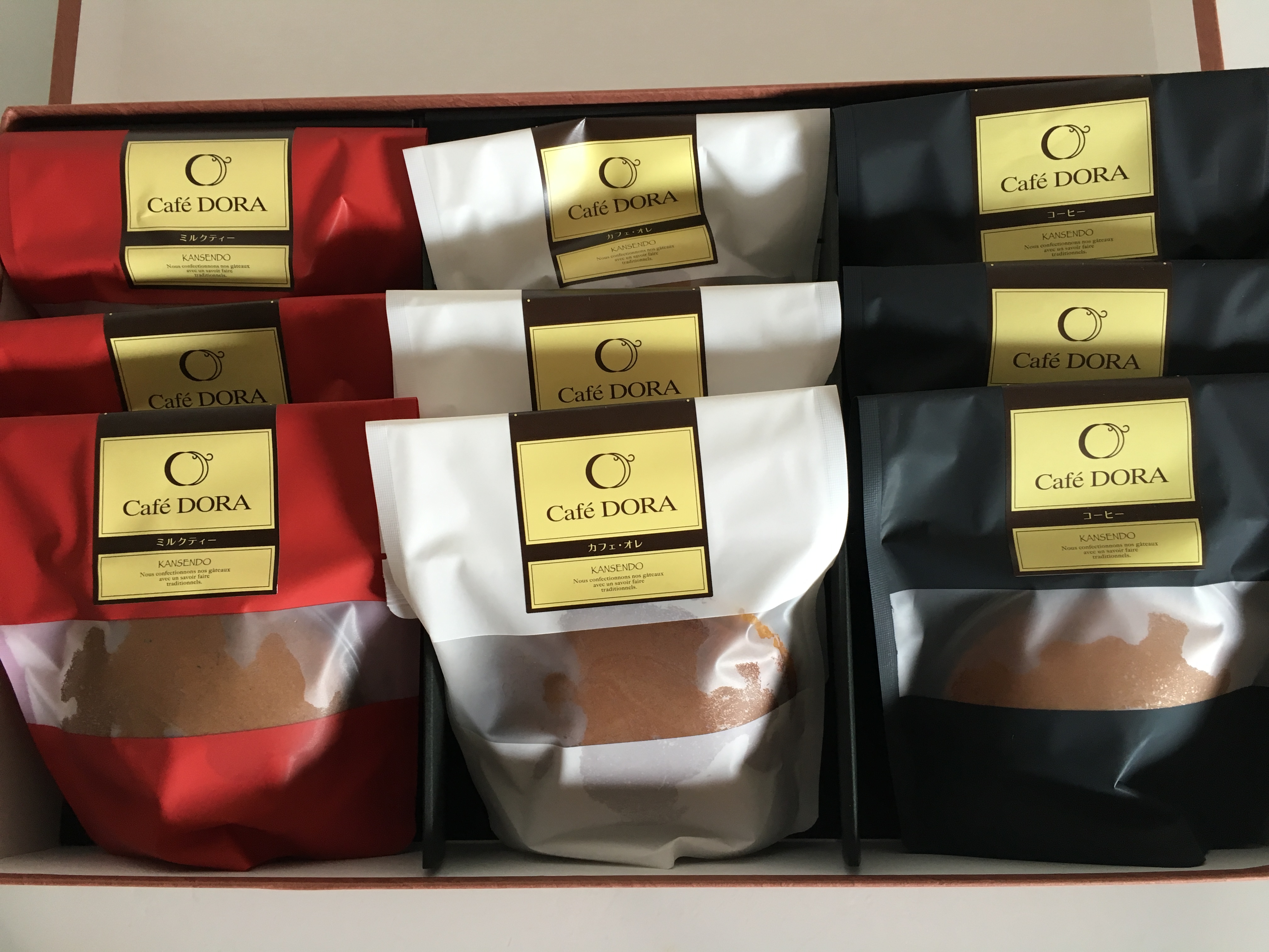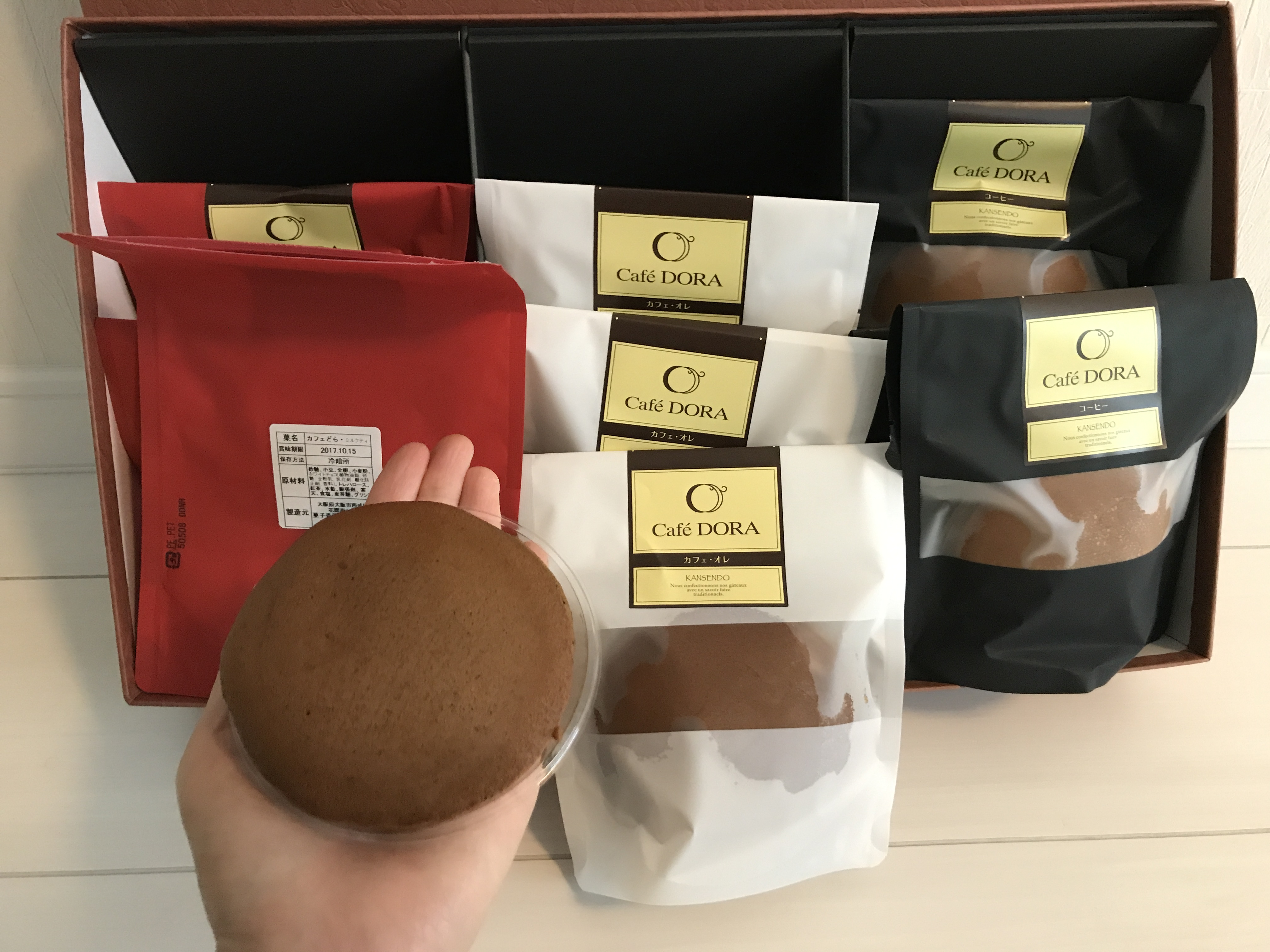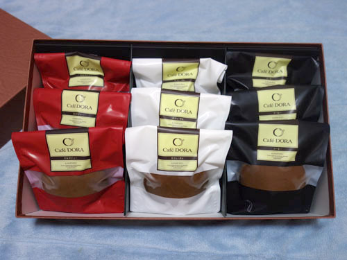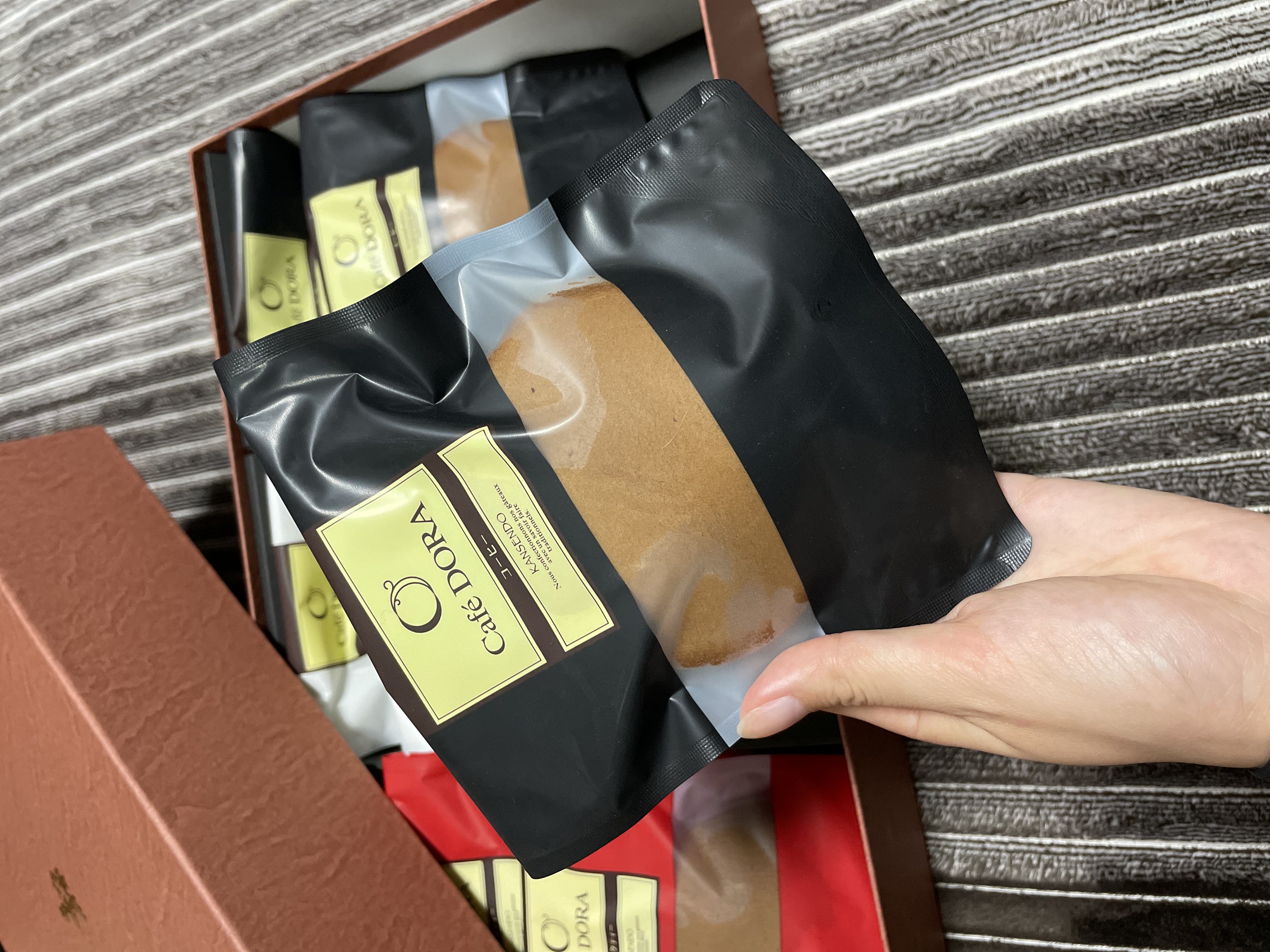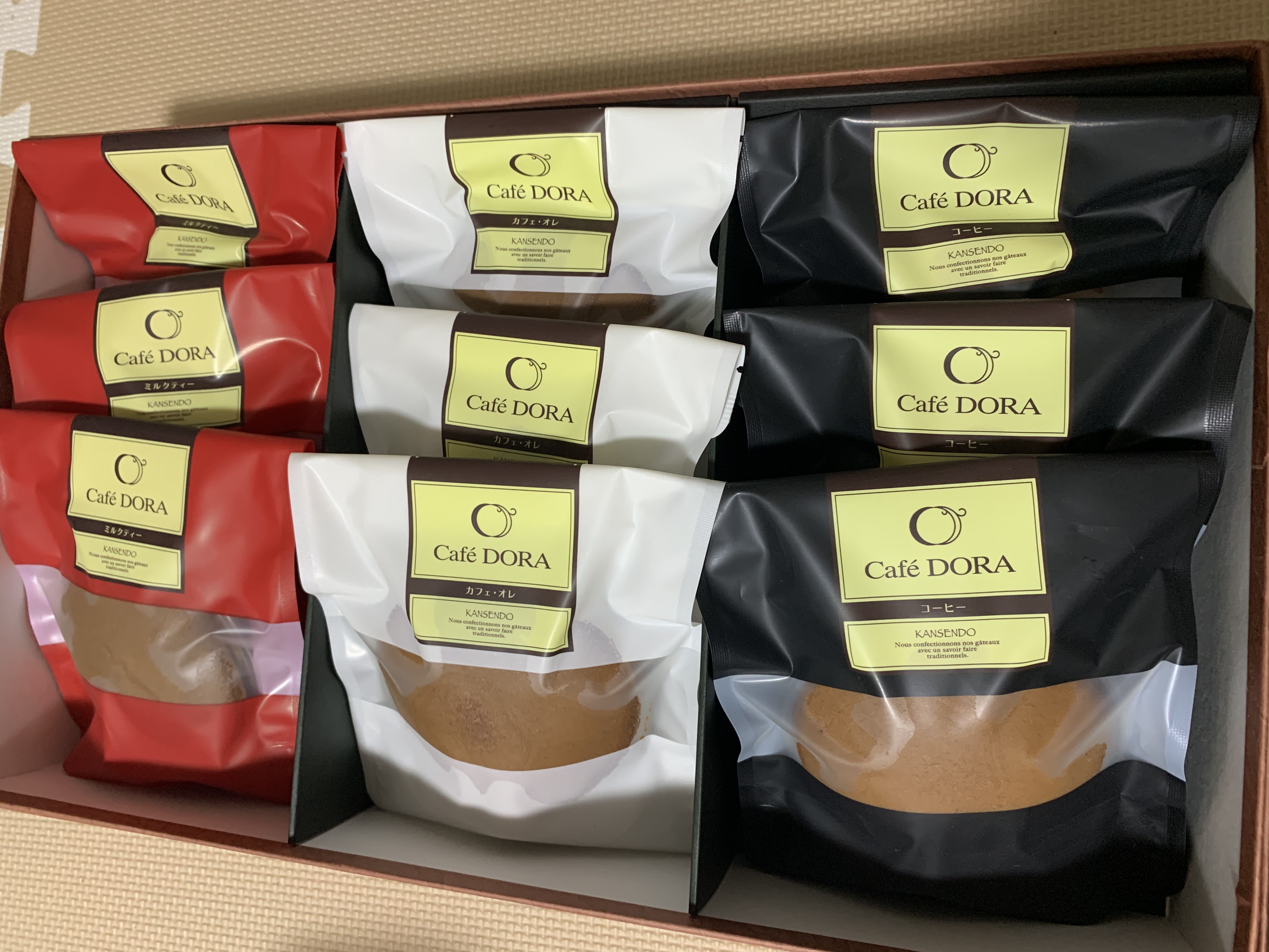 開けてみると、コーヒー味・カフェオレ味・ミルクティ味の3種類のどら焼きが入っています。