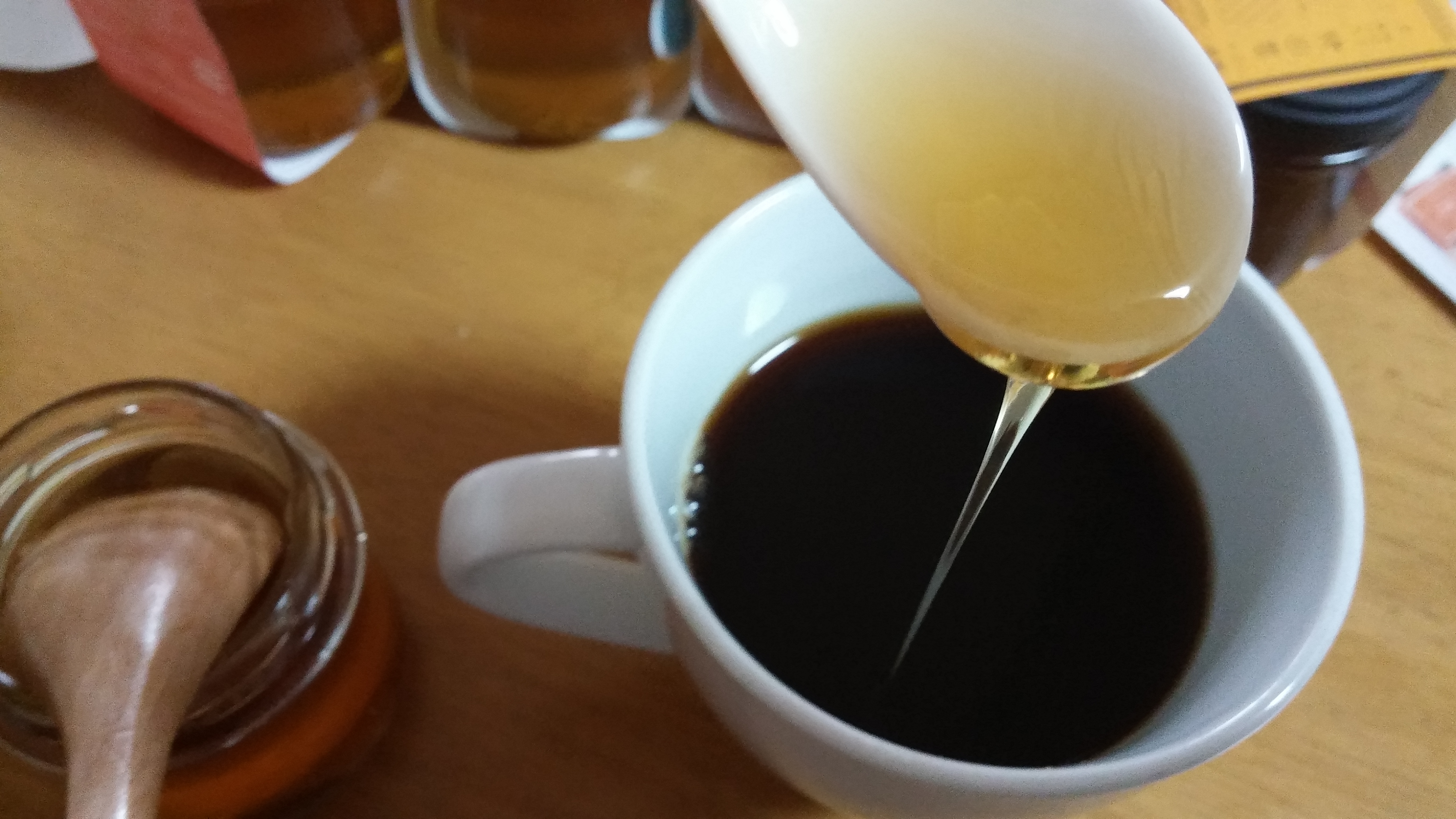 ブラックコーヒーにスプーンひとさじでコクのあるコーヒーになりました。もうひとさじ入れてみたら甘くて芳醇な香りに包まれて美味しかったです。