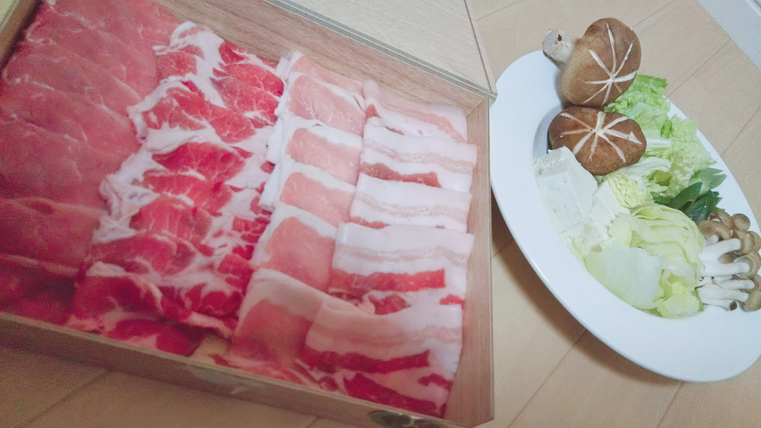シートを広げると、しゃぶしゃぶ肉にしては少し厚みのある豚肉という印象でした。