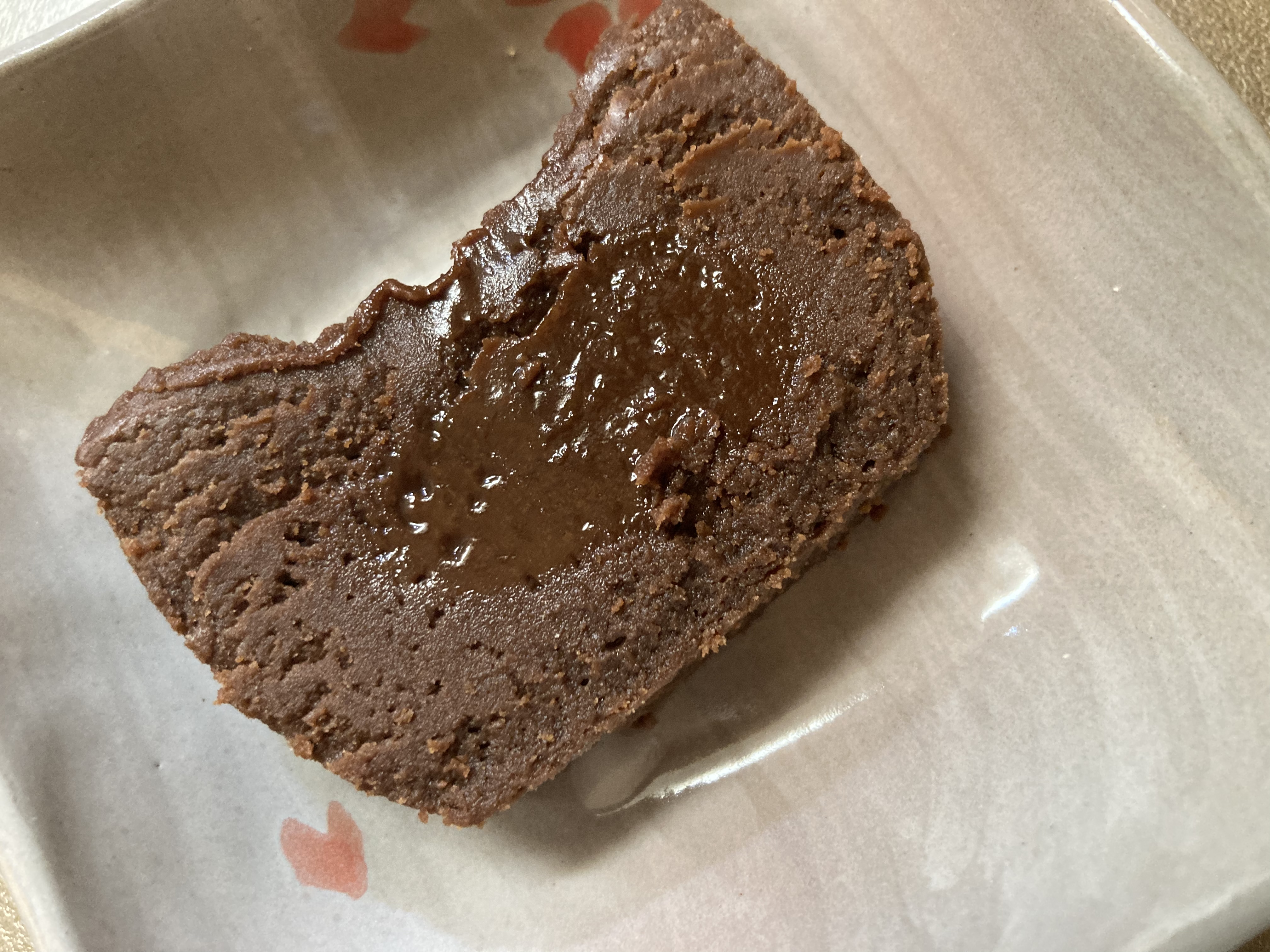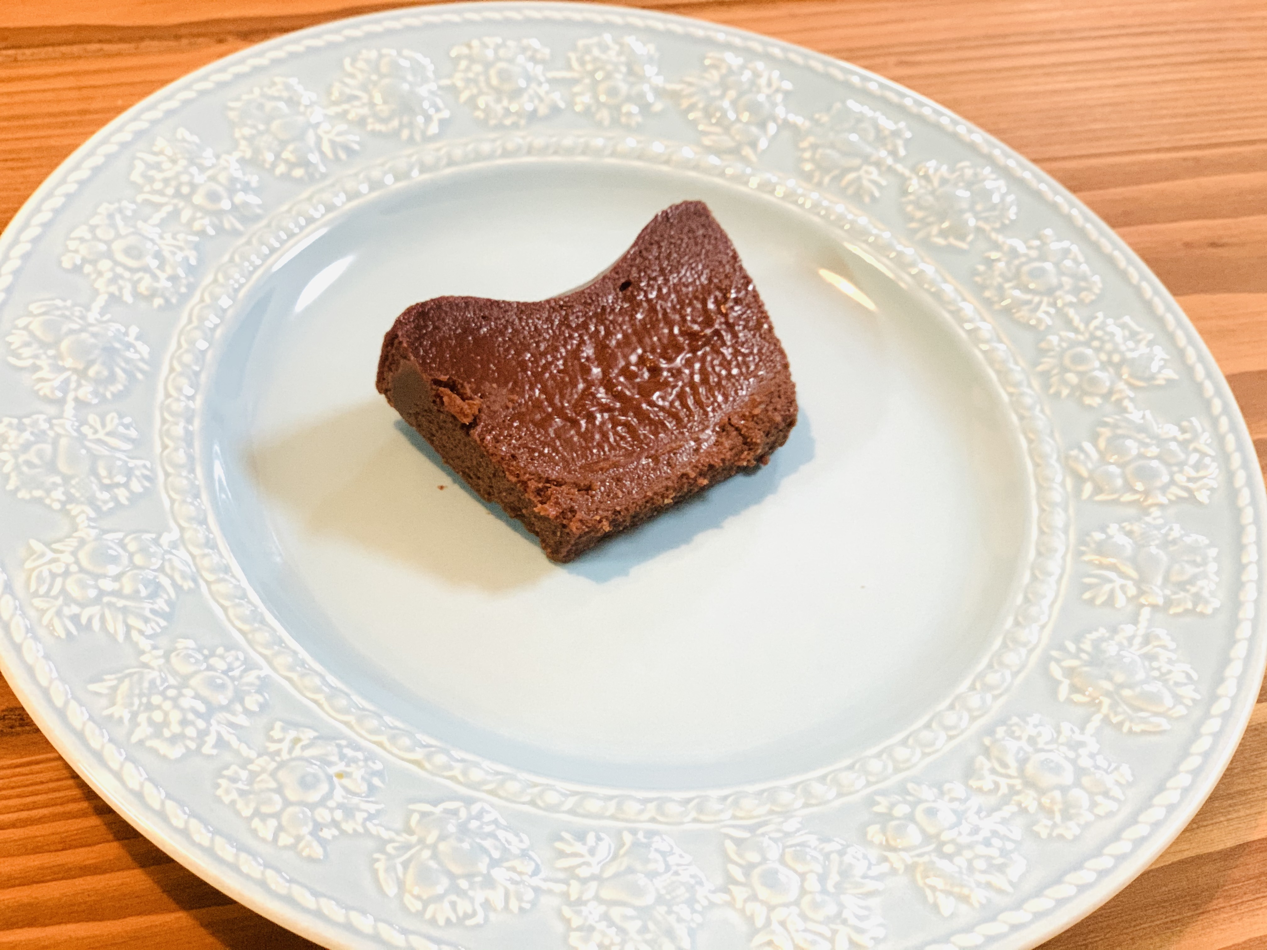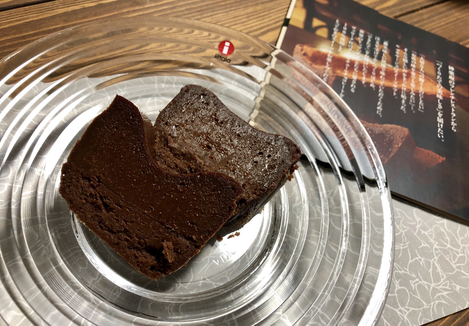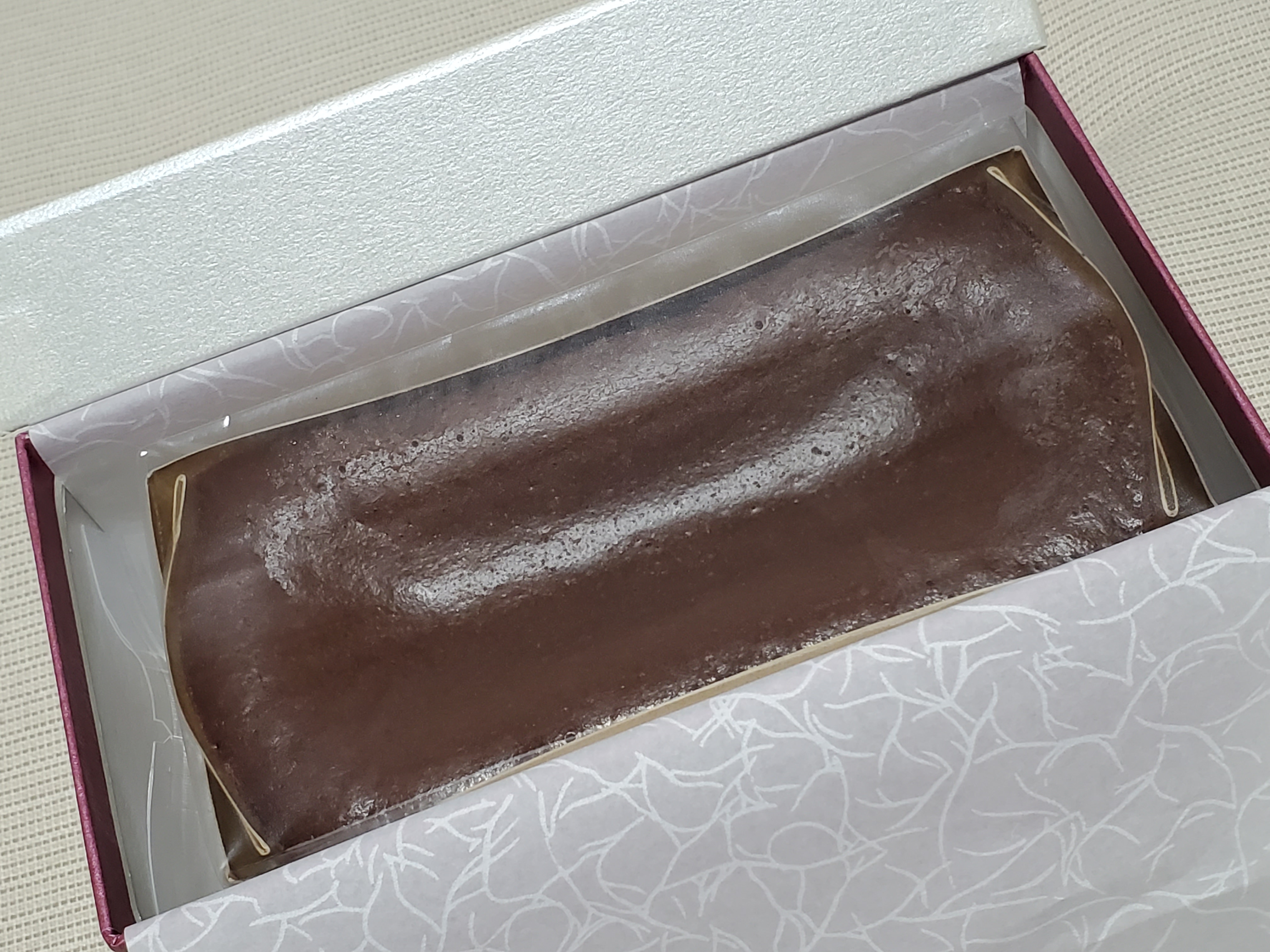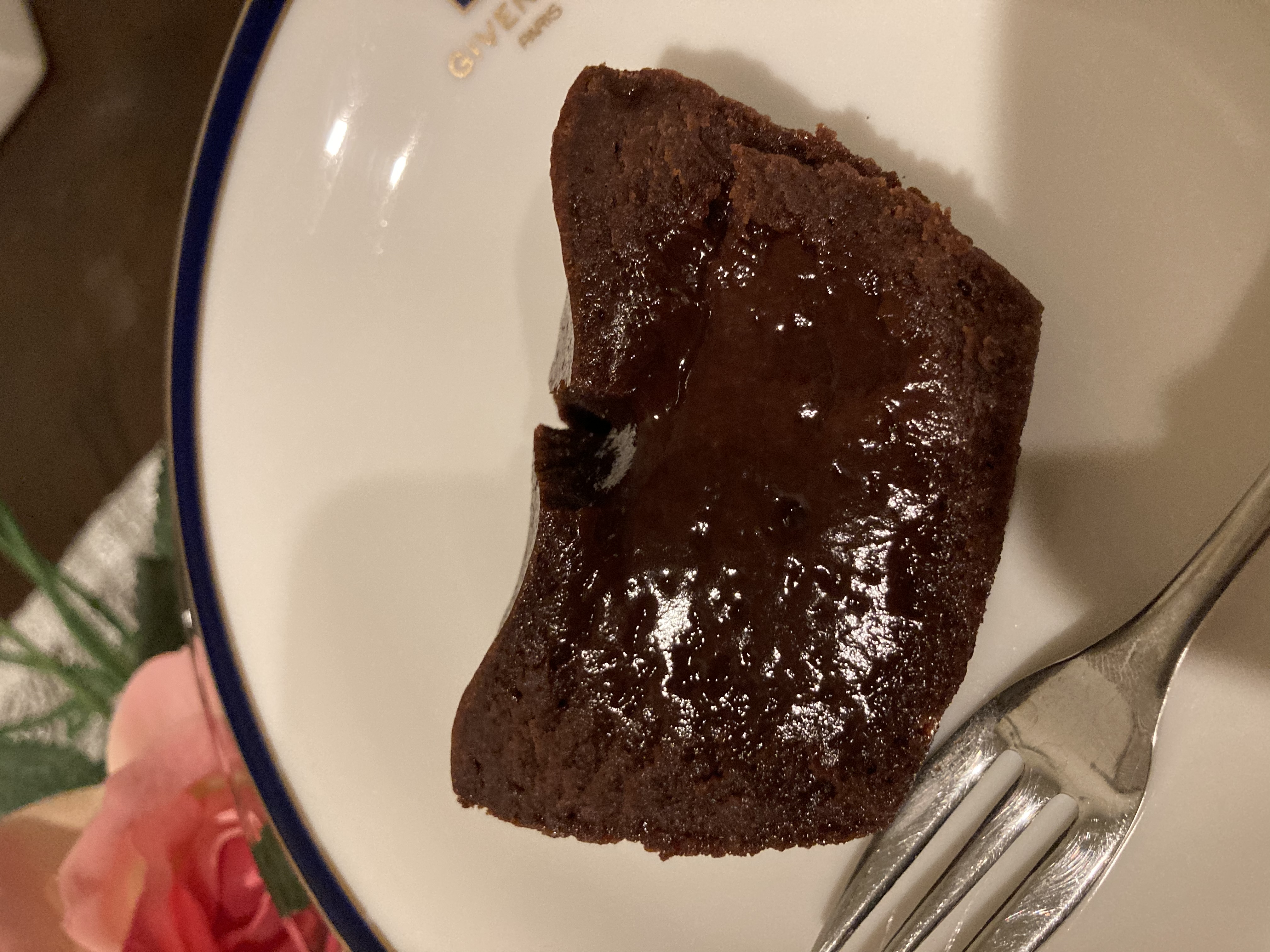 中身はずっしり濃厚で、カットした後に レンジで温めると 真ん中からチョコがとろけてきて!ツヤッツヤのチョコレートに自分が映りそうなくらい 表面がとっても美しいです!